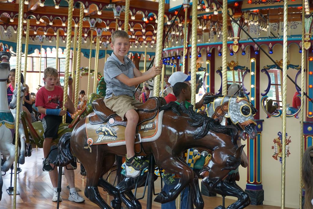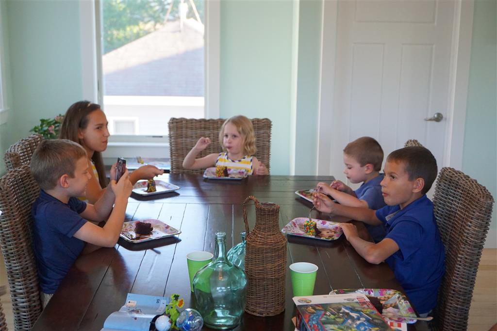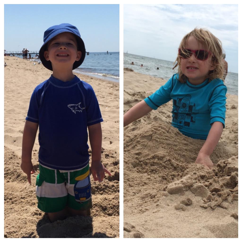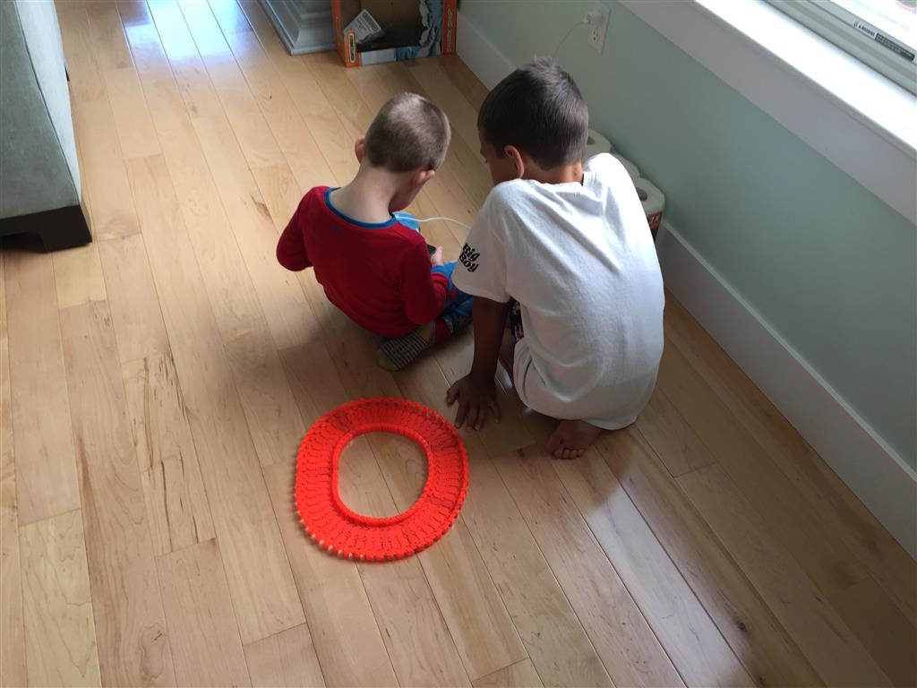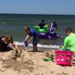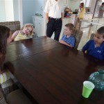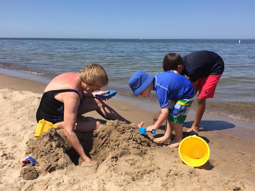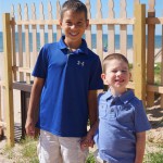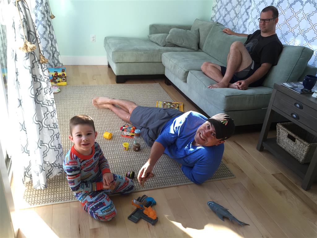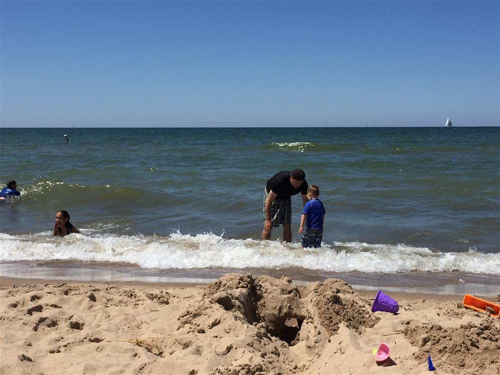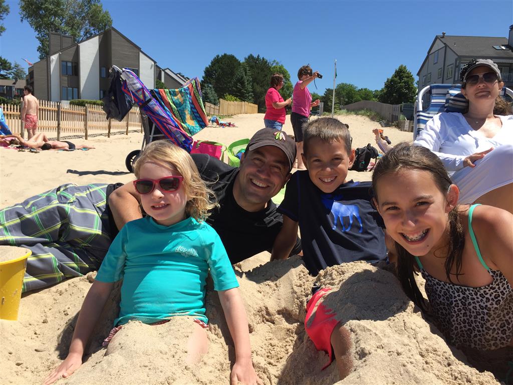 Eleanor and Henry had a fantastic trip to the beach this week with Grandma, Grandpa, Mackenzie, Jack, Ben, Auntie Susan, Uncle Gabe and Uncle B. Both kids ended up having a lot of fun in the water, which was great to see. Eleanor really liked riding on the inflatable dragon with Mackenzie, and also did some swimming by herself with her arm floaties on. Henry didn’t spend as much time on the rafts, but loved running in and out of the waves and on the second to last day got comfortable enough to swim by himself with his floaties on. We also had lots of fun building and burying in the sand, and made a trip to see the carousel. I asked the kids what their favorite part of the trip was, and Eleanor said “Playing dolls with Mackenzie”, and Henry said “Having a sleepover with Jack and Ben”. While Elanor slept with Mackenzie all week, Henry slept with Mom for the first part of the week. We decided to finally give him a shot at sleeping in the same room as Jack and Ben – and it turned out to be quite the crazy event. They had so much fun that Mom and Dad had to keep coming down to remind them to get some sleep. Finally, after a spilled water bottle necessitated a change of sheets, we had to get a threaten an end to the sleepover. Fortunately, they got right to sleep after that – and Auntie Susan heard Henry say as he woke up the next morning, “Jack, we made it! We had a sleepover!”.