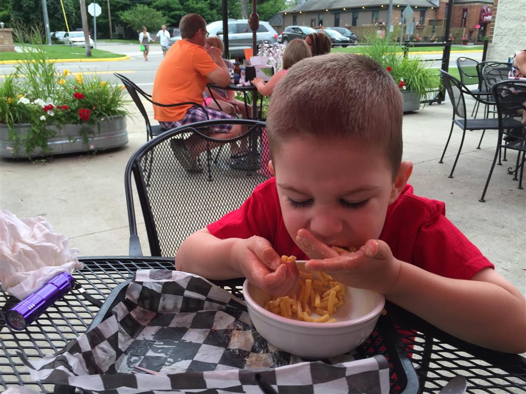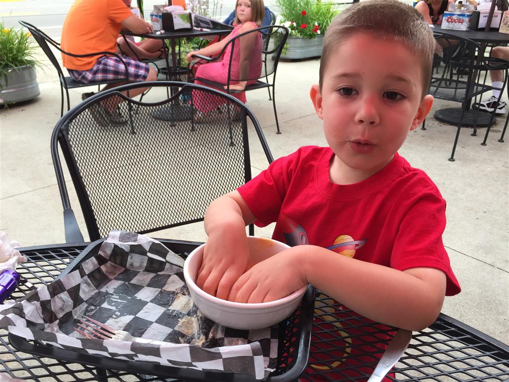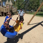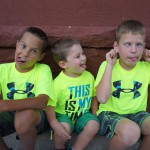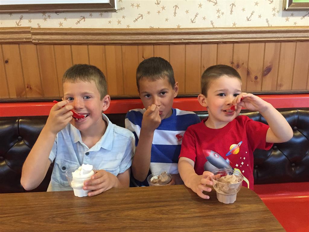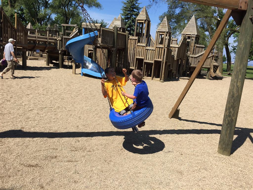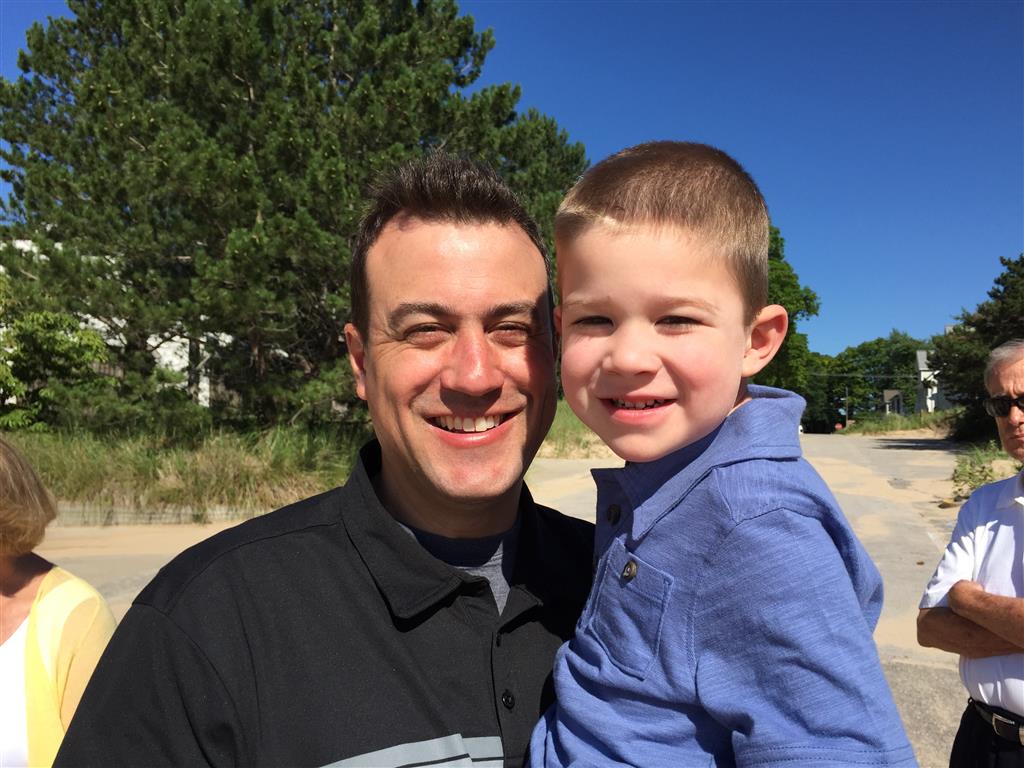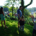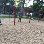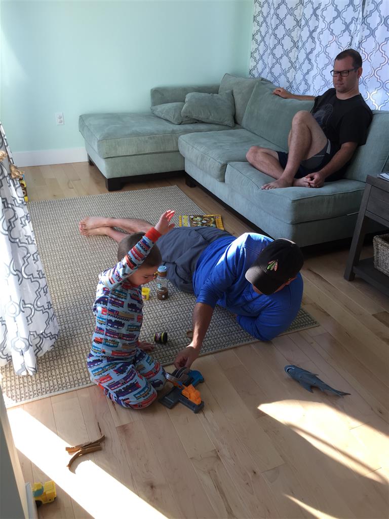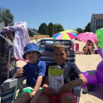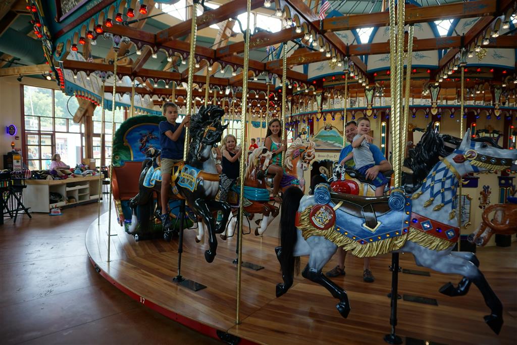 Eleanor and Henry had a fantastic trip to the beach this week with Grandma, Grandpa, Mackenzie, Jack, Ben, Auntie Susan, Uncle Gabe and Uncle B. Both kids ended up having a lot of fun in the water, which was great to see. Eleanor really liked riding on the inflatable dragon with Mackenzie, and also did some swimming by herself with her arm floaties on. Henry didn’t spend as much time on the rafts, but loved running in and out of the waves and on the second to last day got comfortable enough to swim by himself with his floaties on. We also had lots of fun building and burying in the sand, and made a trip to see the carousel. I asked the kids what their favorite part of the trip was, and Eleanor said “Playing dolls with Mackenzie”, and Henry said “Having a sleepover with Jack and Ben”. While Elanor slept with Mackenzie all week, Henry slept with Mom for the first part of the week. We decided to finally give him a shot at sleeping in the same room as Jack and Ben – and it turned out to be quite the crazy event. They had so much fun that Mom and Dad had to keep coming down to remind them to get some sleep. Finally, after a spilled water bottle necessitated a change of sheets, we had to get a threaten an end to the sleepover. Fortunately, they got right to sleep after that – and Auntie Susan heard Henry say as he woke up the next morning, “Jack, we made it! We had a sleepover!”.