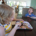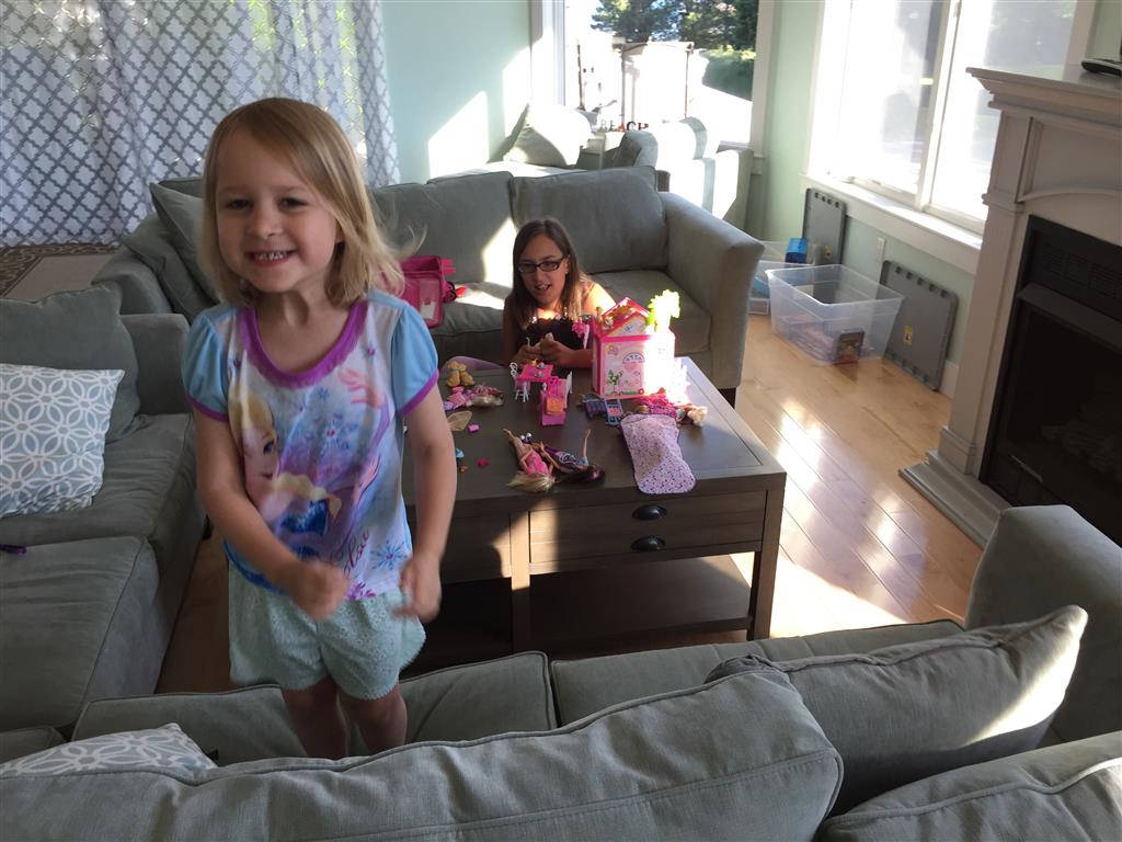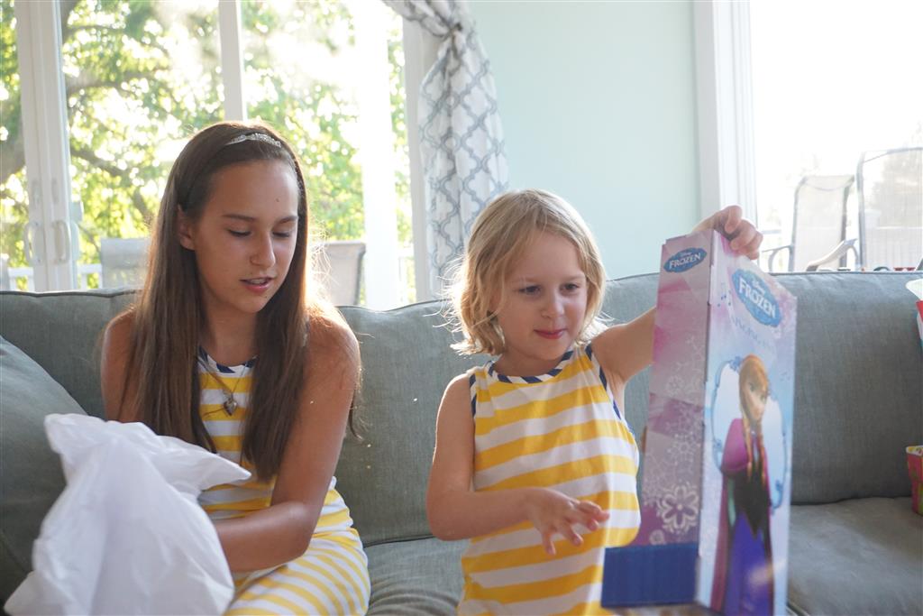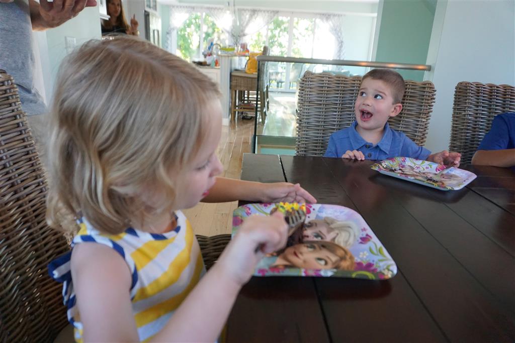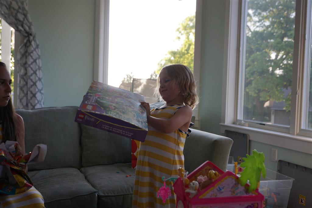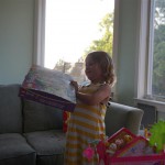 We also had an early birthday celebration for Eleanor, and she was thrilled with her birthday presents. Monkey’s new outfit has been on ever since we got home, and a new Anna doll slept in her own private bed on top of Eleanor’s bed on Sunday night. And first thing Monday morning when Eleanor woke up, she sat looking at her new Lego box just waiting for Mom or Dad to help her build it.