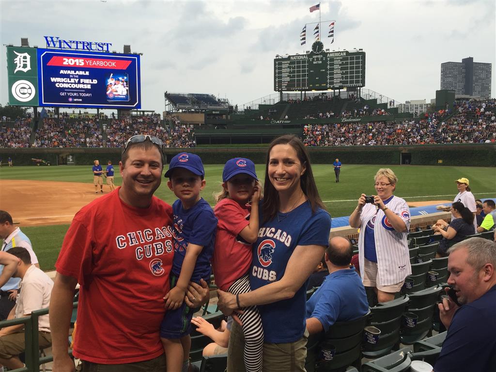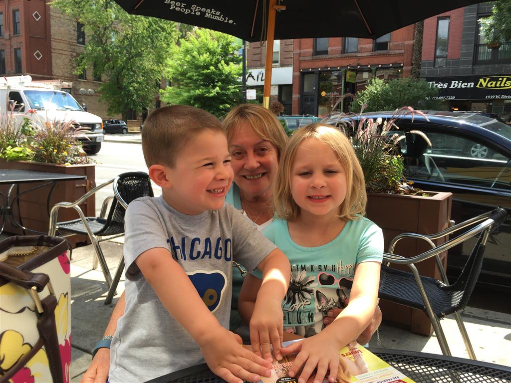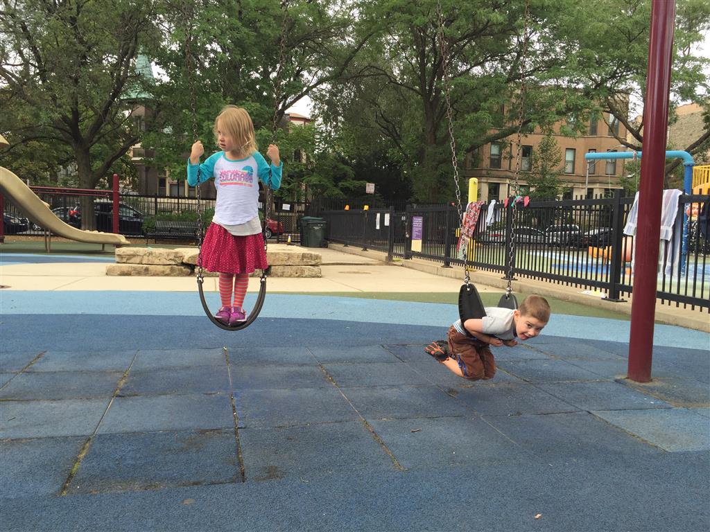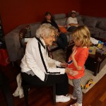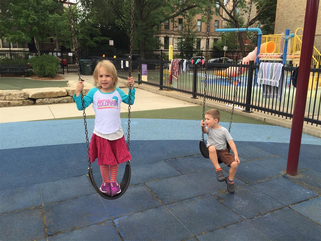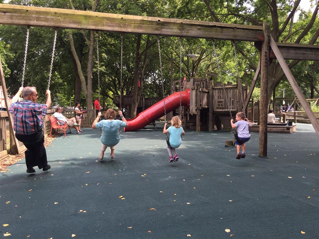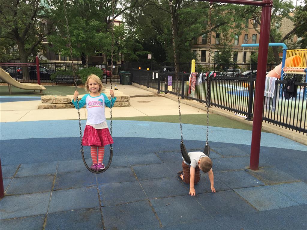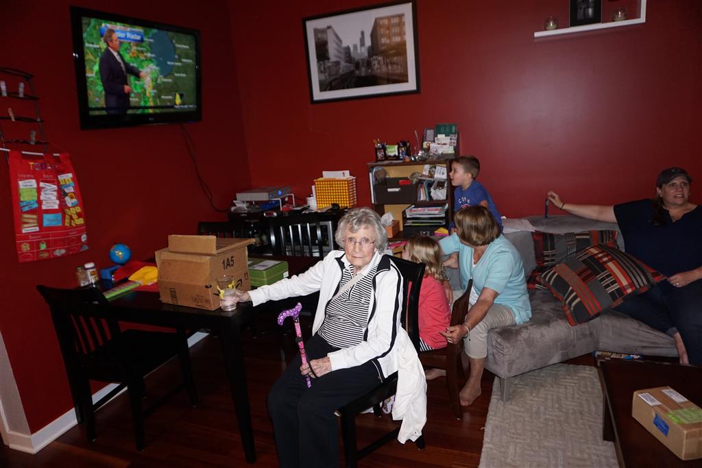 This week Great Grandma came for a visit to Wrigley Field to see the Cubs play the Tigers. Unfortunately for us, we were rained out early in the game, although we did get to see three home runs! They eventually finished the game after a 2+ hour rain delay, but we had elected to leave well before then. We did have a great visit, and got to show Great Grandma lots of our favorite games and toys, as well as Oz Park and Uncle B’s house. We’ll have to have her back next year and hope for better weather! Eleanor and Henry were most excited about the food options, and less excited about the baseball game – Eleanor went for the pizza and Henry had a cheeseburger.