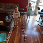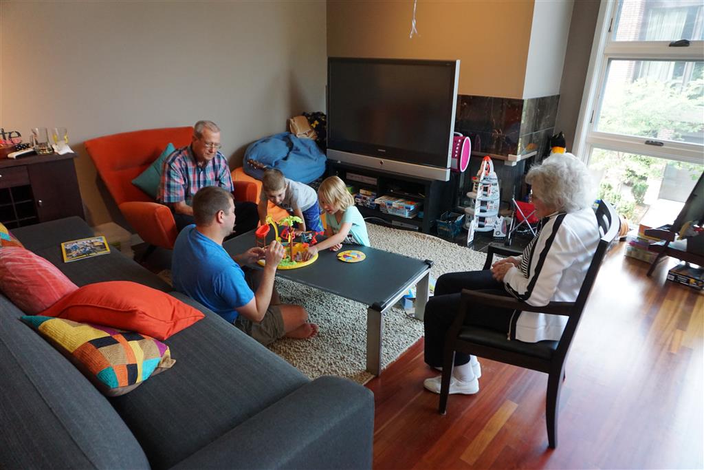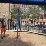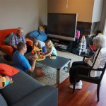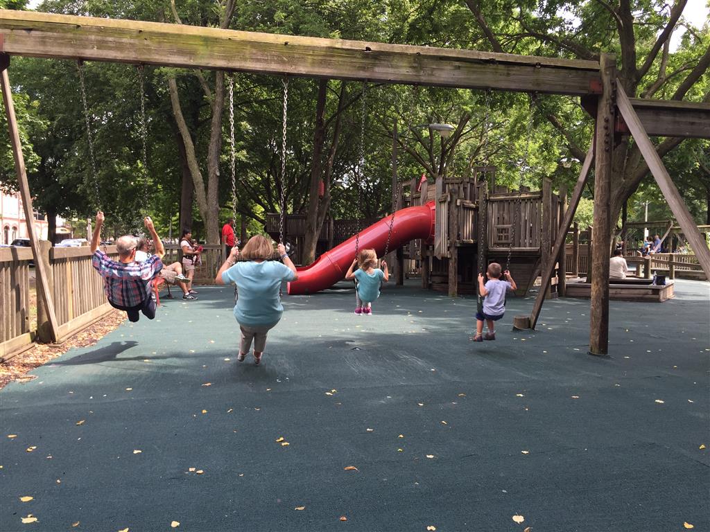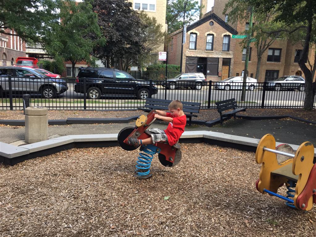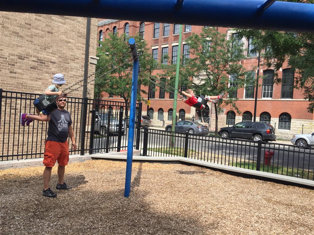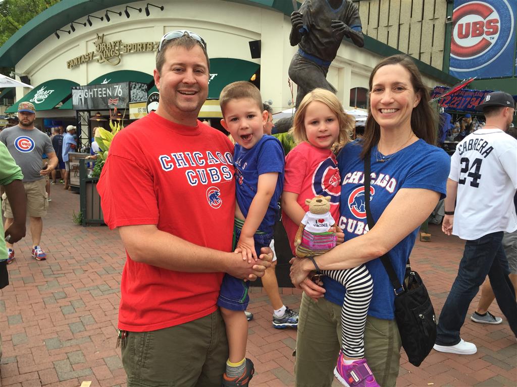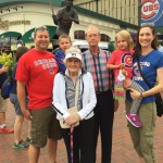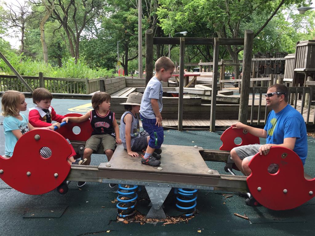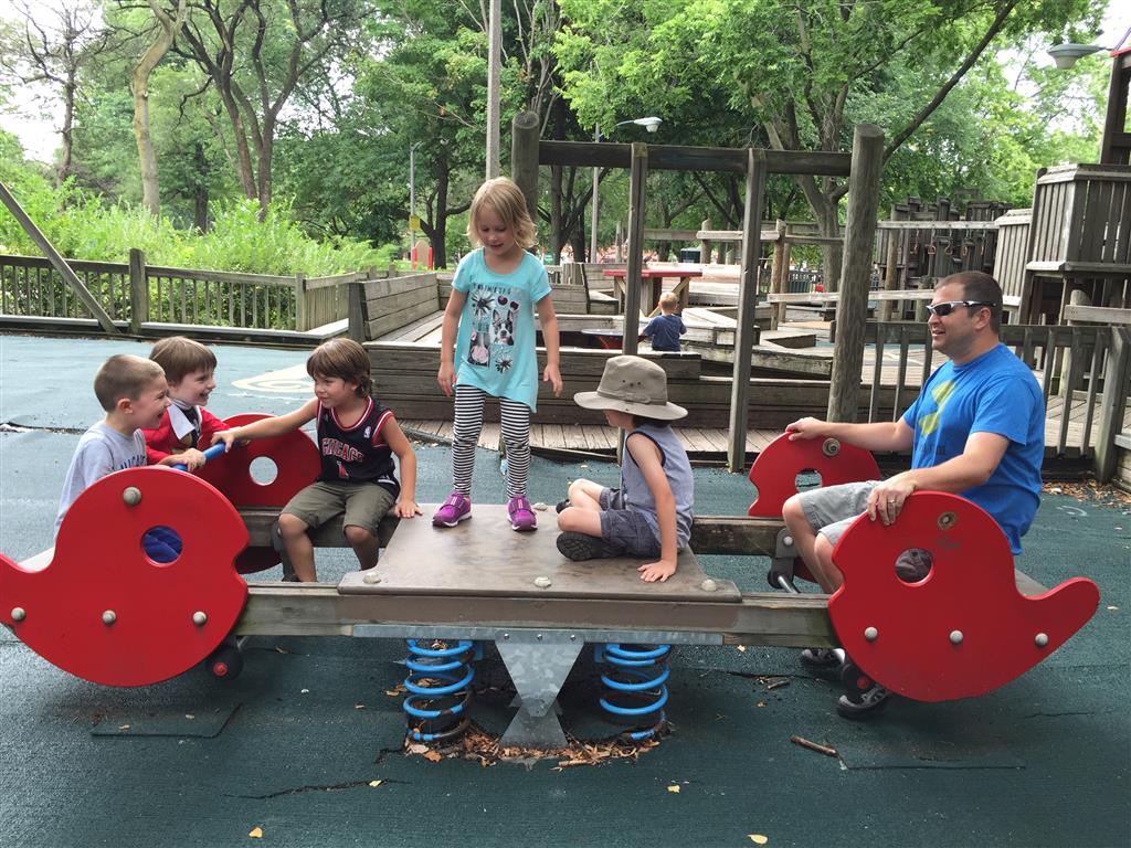 This week Great Grandma came for a visit to Wrigley Field to see the Cubs play the Tigers. Unfortunately for us, we were rained out early in the game, although we did get to see three home runs! They eventually finished the game after a 2+ hour rain delay, but we had elected to leave well before then. We did have a great visit, and got to show Great Grandma lots of our favorite games and toys, as well as Oz Park and Uncle B’s house. We’ll have to have her back next year and hope for better weather! Eleanor and Henry were most excited about the food options, and less excited about the baseball game – Eleanor went for the pizza and Henry had a cheeseburger.