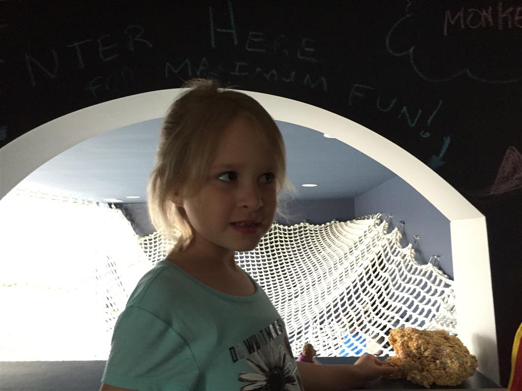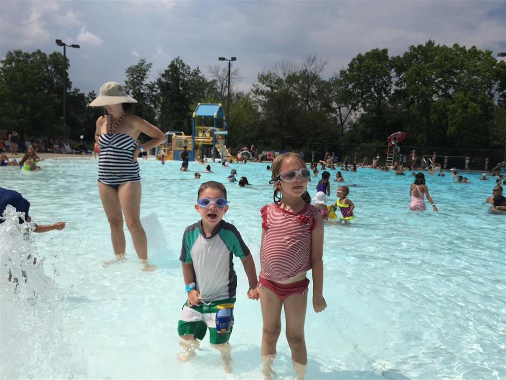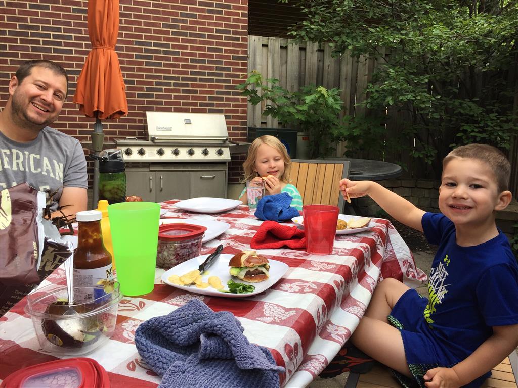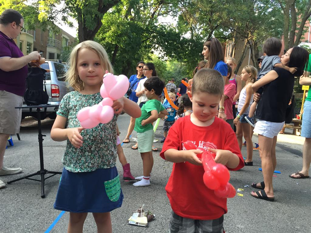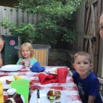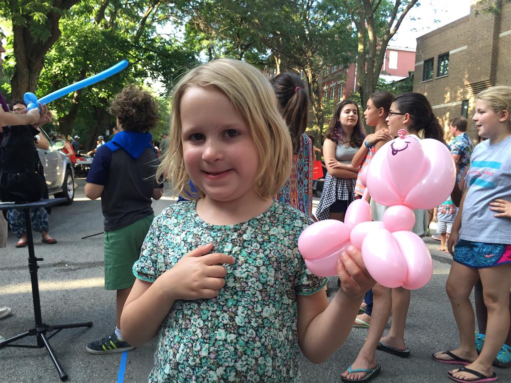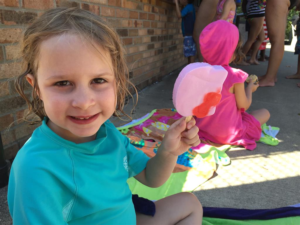 Eleanor and Henry had two trips to a nearby water park – which they really enjoyed. There was a beautiful pool with gradual entry, and spray fountains and water slides. The highlight was definitely the ice cream snacks though – Hello Kitty popsicle for Eleanor and ice cream cookie sandwich for Henry. On Saturday we went over to visit our friend Colby, and she took us to her block party where we got to jump in a bouncy castle, watch a magic show and get balloon animals. The magic show featured a stuffed monkey for the first few tricks – perfect for Eleanor! We ended the week with a relaxing day at home and a cookout dinner on the porch.