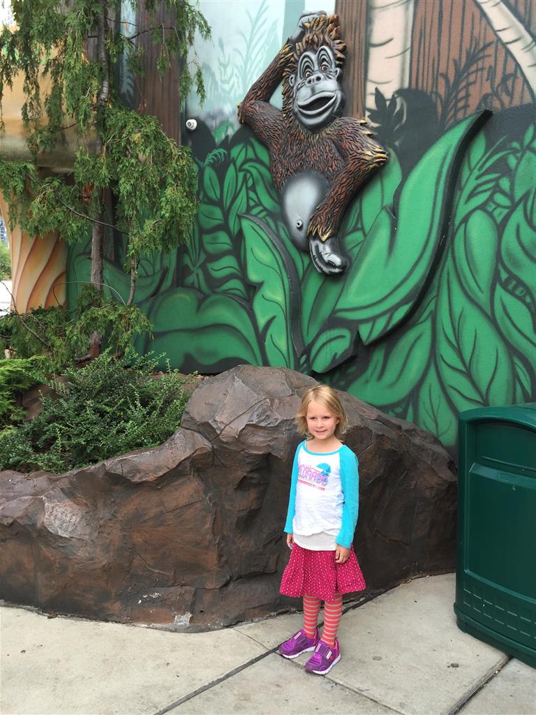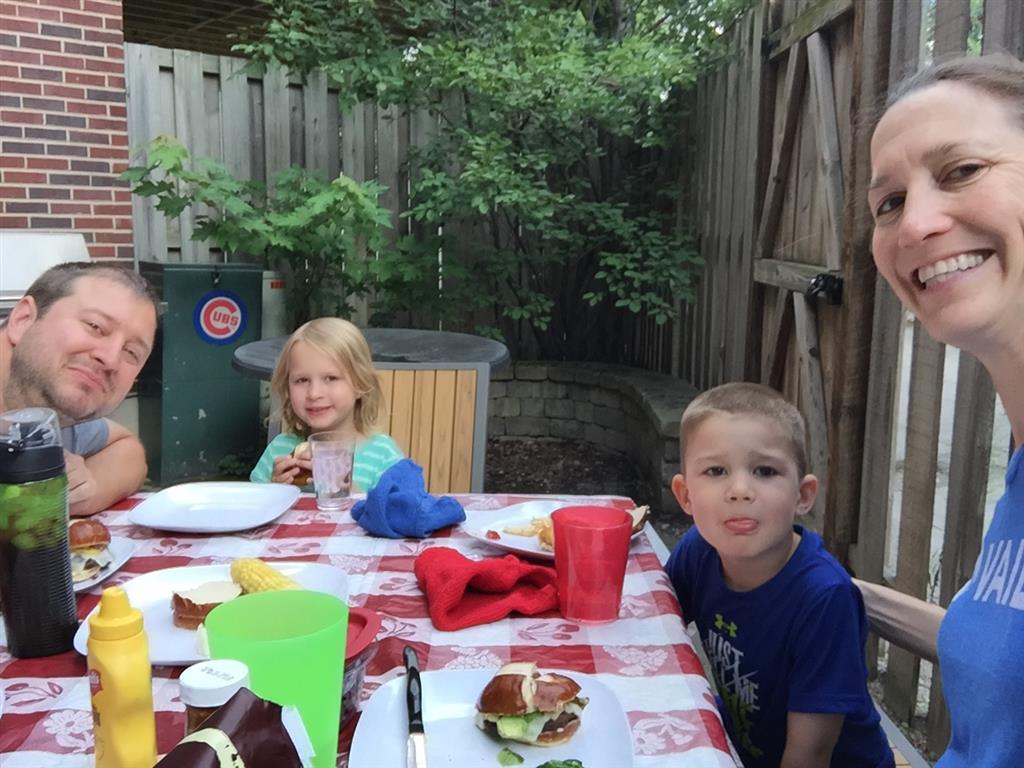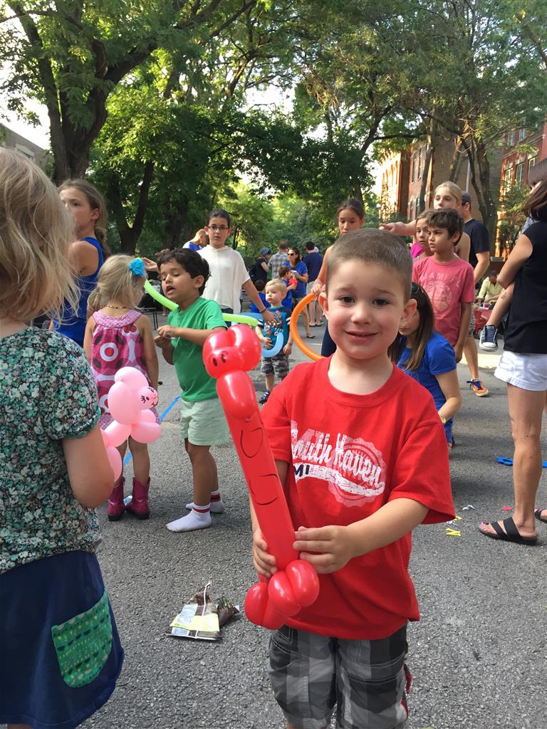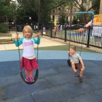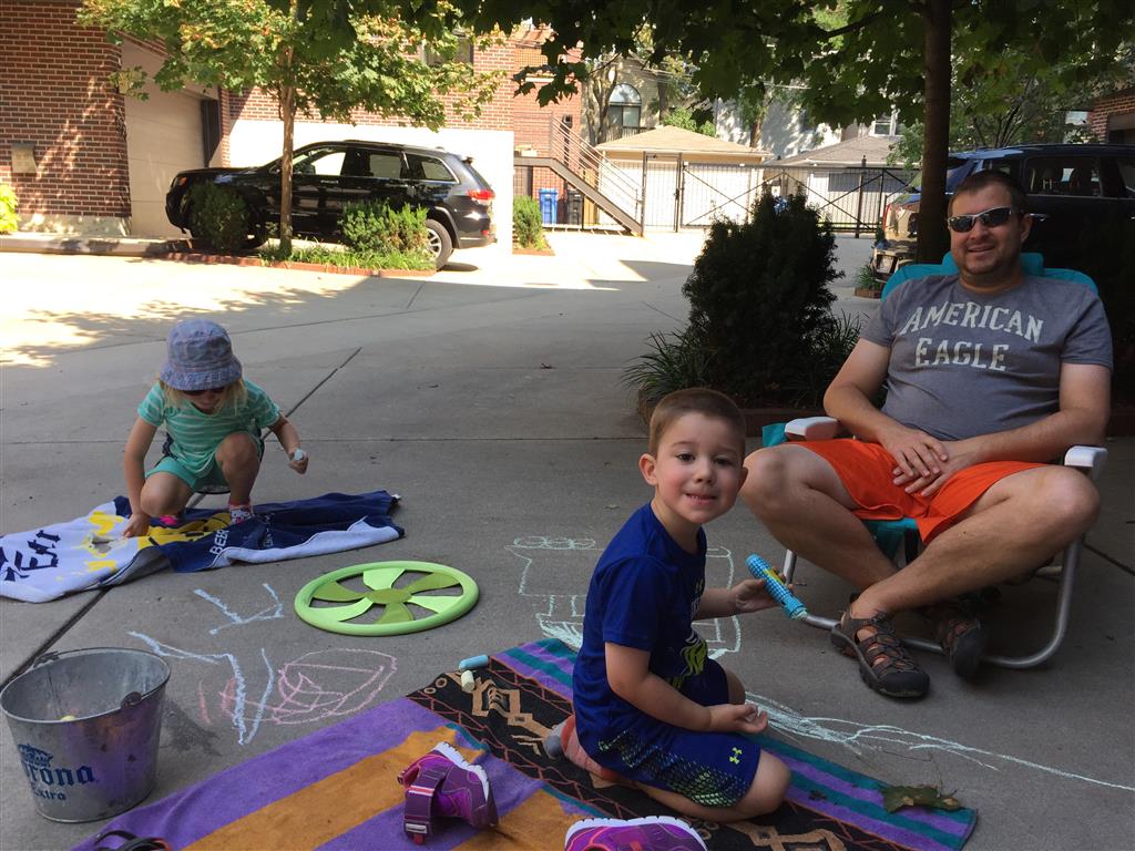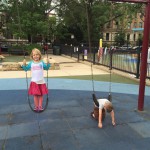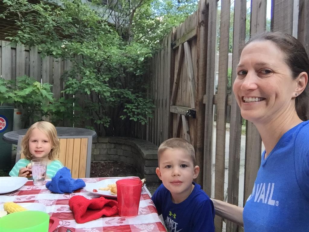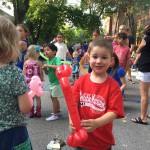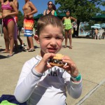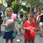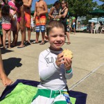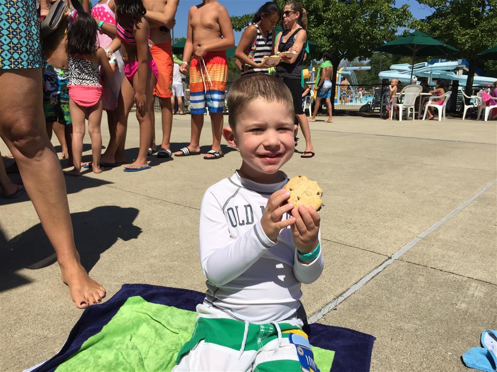 Eleanor and Henry had two trips to a nearby water park – which they really enjoyed. There was a beautiful pool with gradual entry, and spray fountains and water slides. The highlight was definitely the ice cream snacks though – Hello Kitty popsicle for Eleanor and ice cream cookie sandwich for Henry. On Saturday we went over to visit our friend Colby, and she took us to her block party where we got to jump in a bouncy castle, watch a magic show and get balloon animals. The magic show featured a stuffed monkey for the first few tricks – perfect for Eleanor! We ended the week with a relaxing day at home and a cookout dinner on the porch.