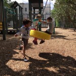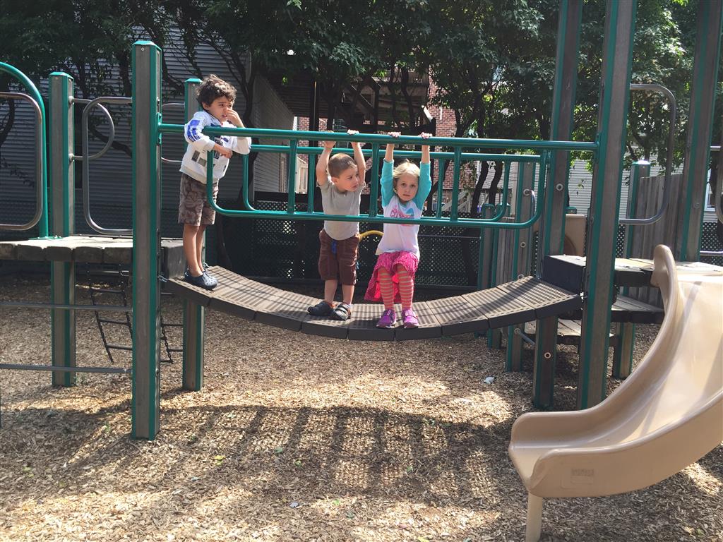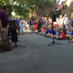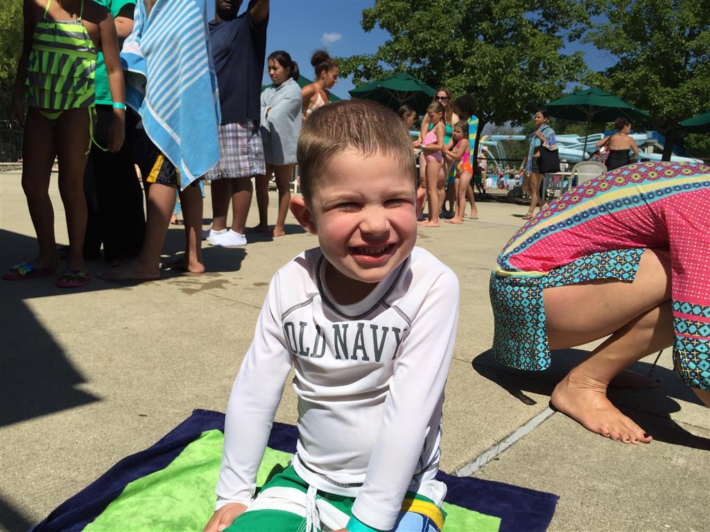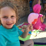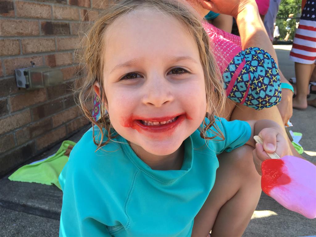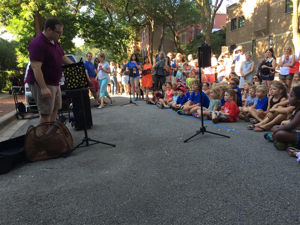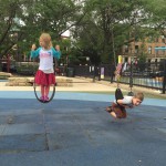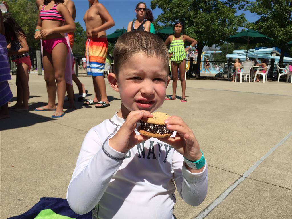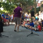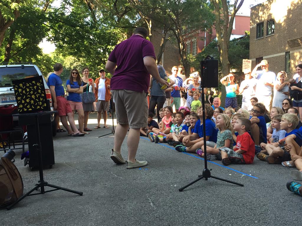 Eleanor and Henry had two trips to a nearby water park – which they really enjoyed. There was a beautiful pool with gradual entry, and spray fountains and water slides. The highlight was definitely the ice cream snacks though – Hello Kitty popsicle for Eleanor and ice cream cookie sandwich for Henry. On Saturday we went over to visit our friend Colby, and she took us to her block party where we got to jump in a bouncy castle, watch a magic show and get balloon animals. The magic show featured a stuffed monkey for the first few tricks – perfect for Eleanor! We ended the week with a relaxing day at home and a cookout dinner on the porch.