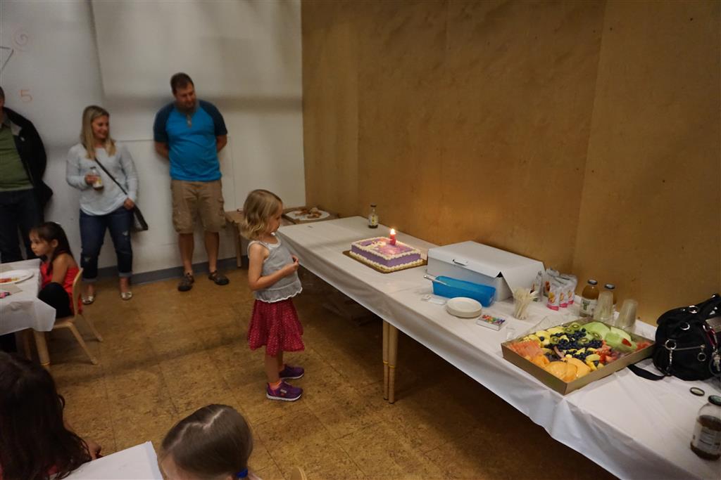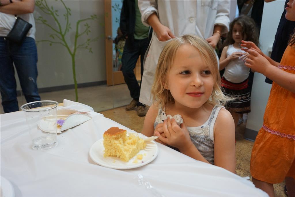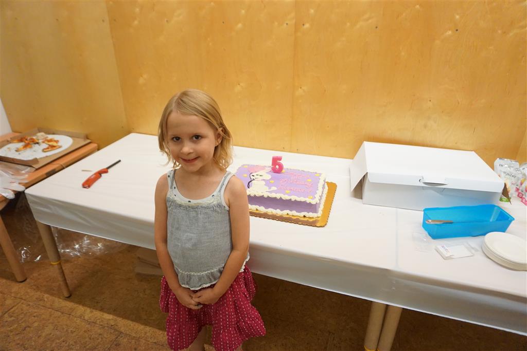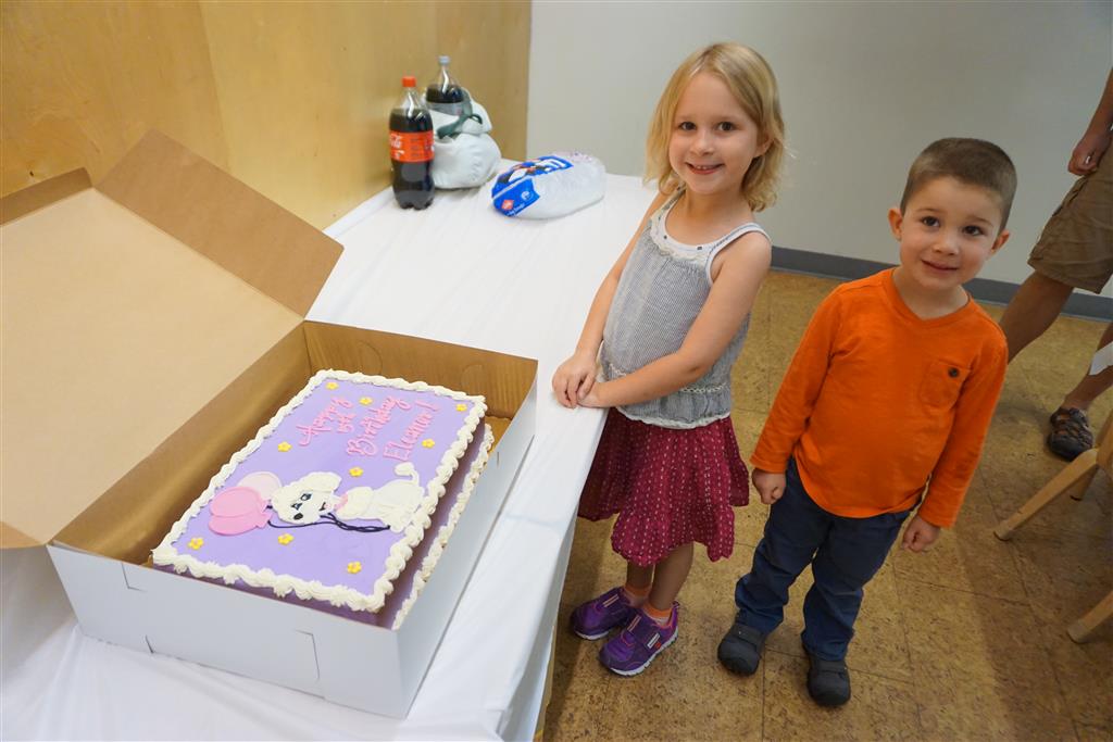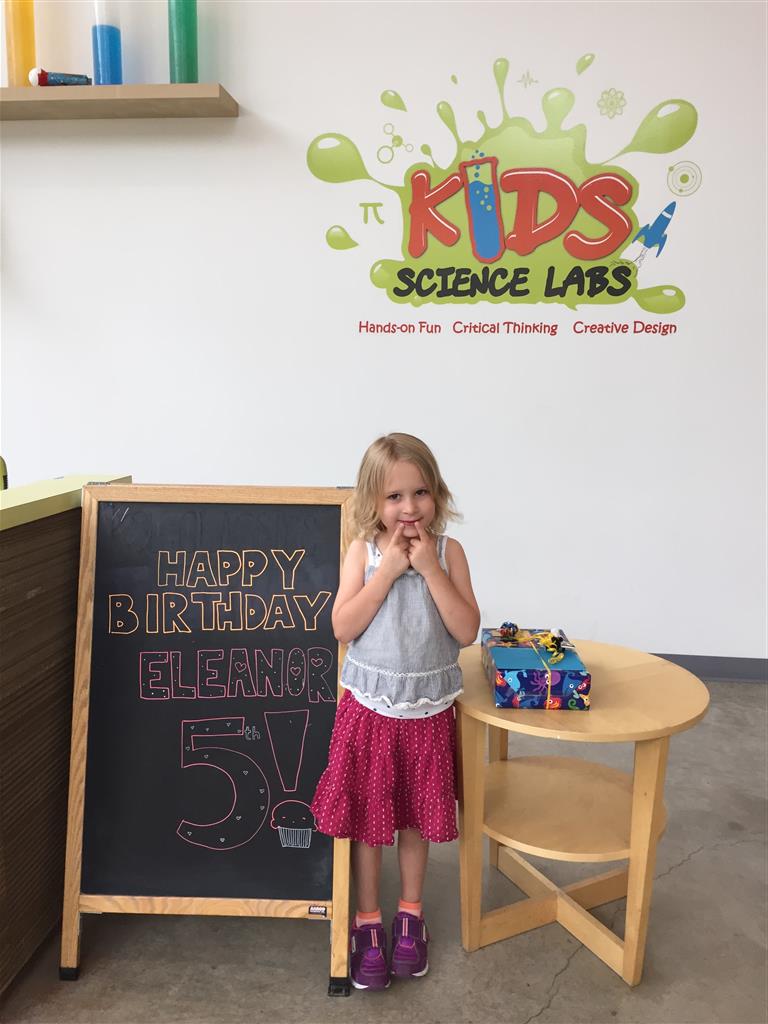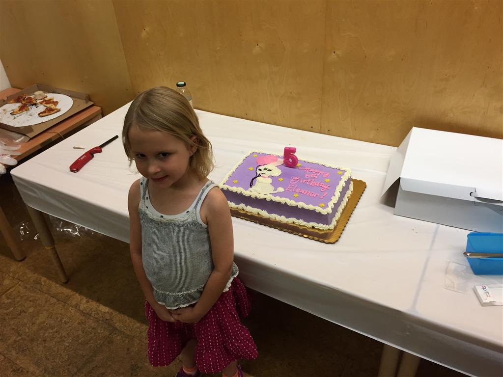 Eleanor completed her very extended birthday celebration with a party this week for her friends. She decided to have it at Kids Science Lab, and she got to pick the experiments that they did during the party. They ended up doing three different slime experiments, one with diaper gel, and a final demonstration they called “Elephant Toothpaste”. She also choose what to have on her cake, and decided on purple icing with a white poodle. Eleanor really enjoyed the party and we were glad to have lots of friends join us in the celebration. It was also a nice warm up to the school season, which starts tomorrow!