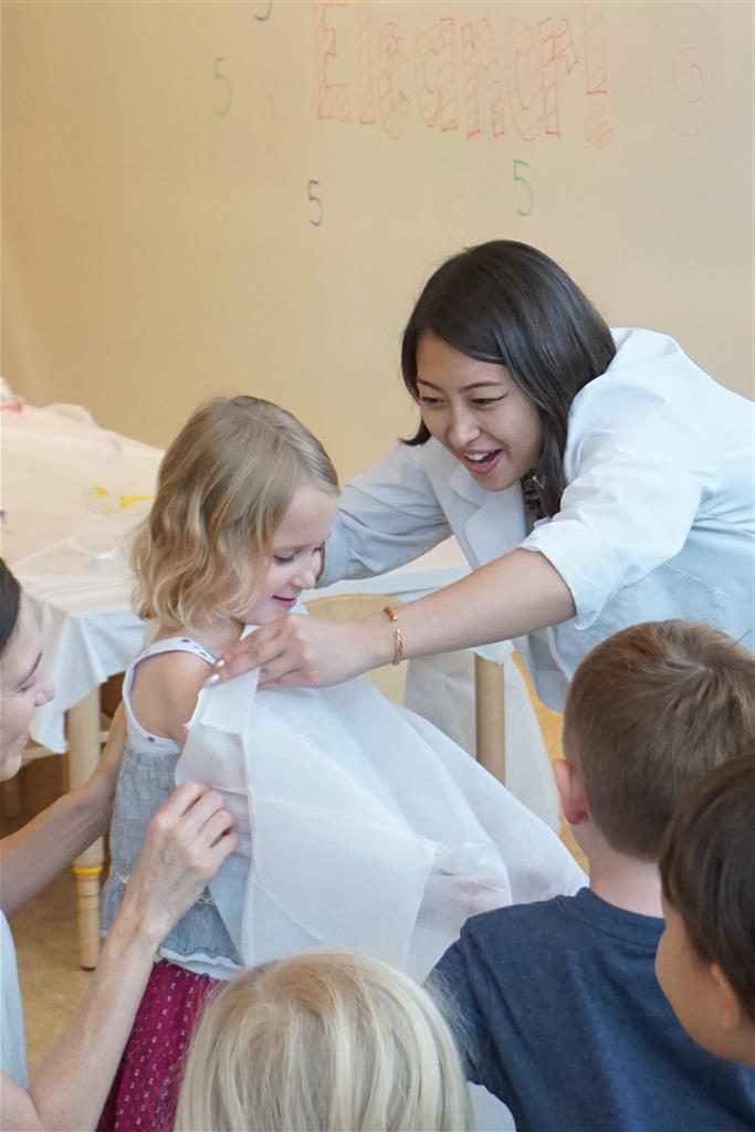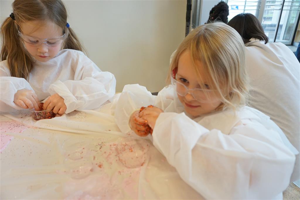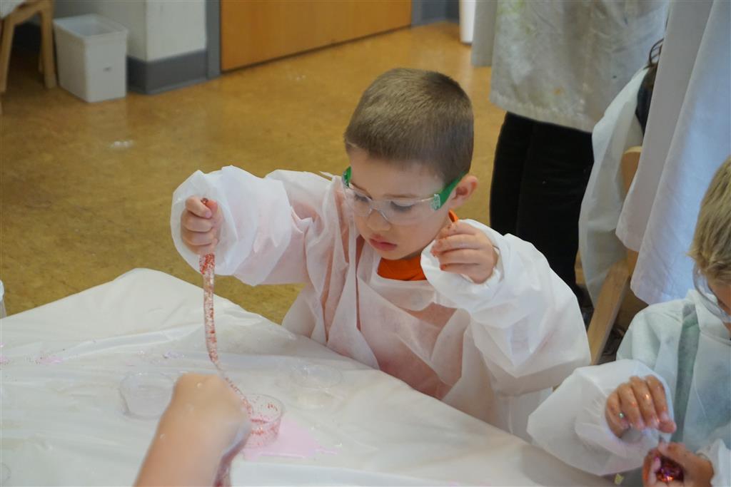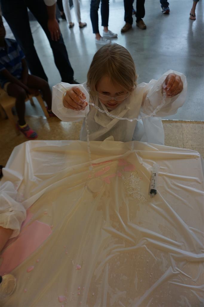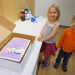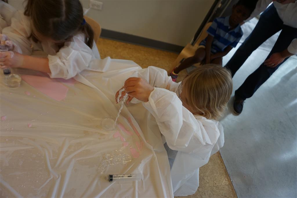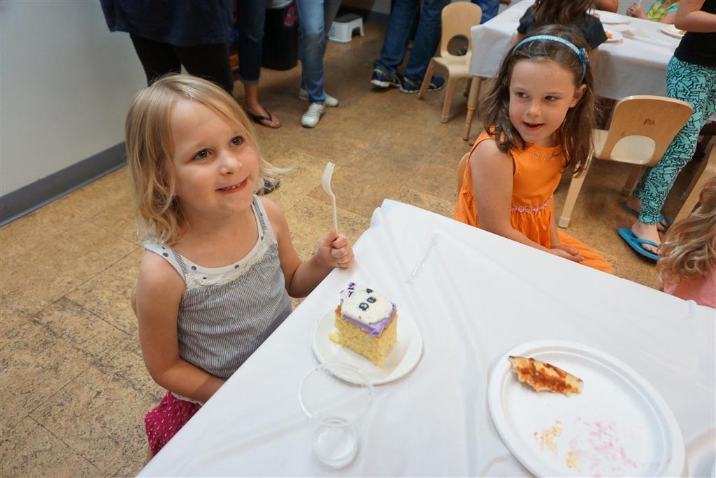 Eleanor completed her very extended birthday celebration with a party this week for her friends. She decided to have it at Kids Science Lab, and she got to pick the experiments that they did during the party. They ended up doing three different slime experiments, one with diaper gel, and a final demonstration they called “Elephant Toothpaste”. She also choose what to have on her cake, and decided on purple icing with a white poodle. Eleanor really enjoyed the party and we were glad to have lots of friends join us in the celebration. It was also a nice warm up to the school season, which starts tomorrow!