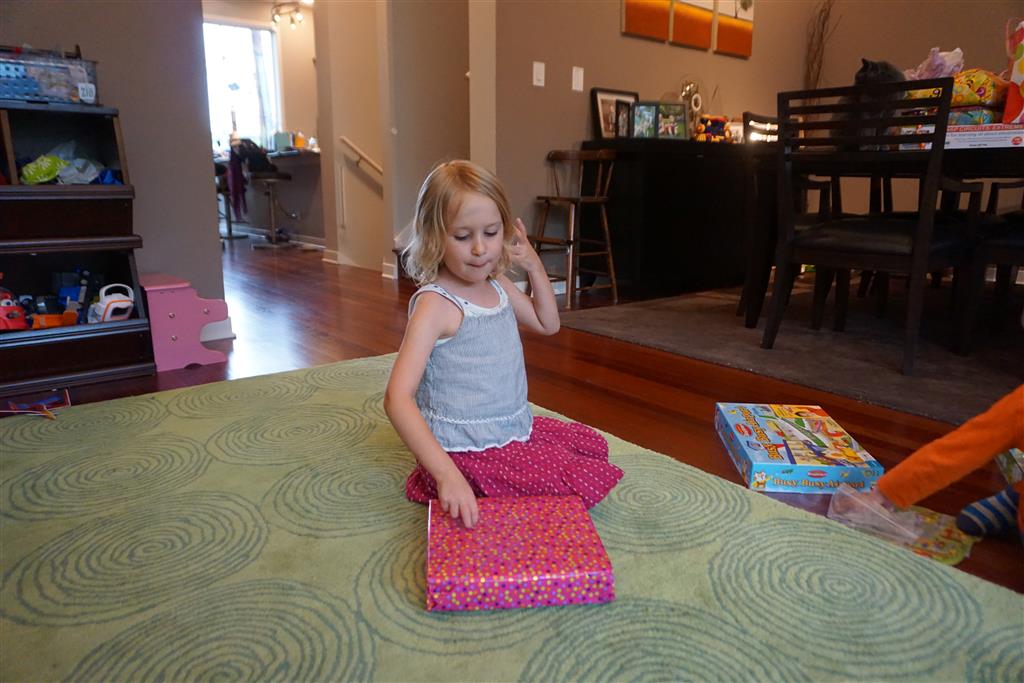 There were lots of events this week getting us ready for school – parents orientation where we got to meet her teachers and the parents of other kids in her class, and “supply drop off” where Eleanor got to go and check out her new classroom and her locker. We even got to meet the class pets, two guinea pigs – Snowball and Brownie. Eleanor was a bit nervous about visiting the classroom, and needed some encouragement both to go in the school front door, and again at her classroom door. Her curiosity quickly won out – and we explored her classroom for about 30 minutes. Can’t wait to see what Monday has in store!