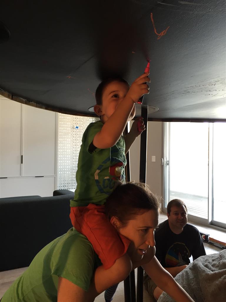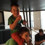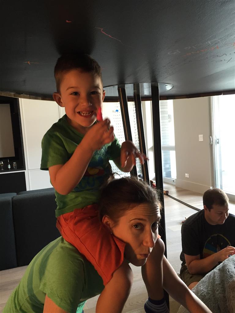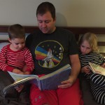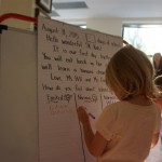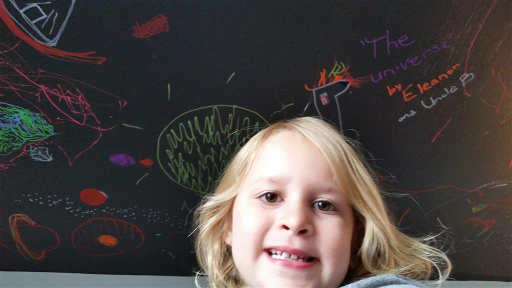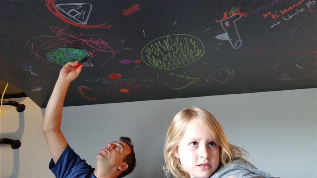 The weekend brought some fun labor day activities – first Henry and Mom went to a Cubs game while Dad got to pick Eleanor up from school and get some daddy daughter time. Then, on Saturday, the whole family went up to Evanston for the Northwestern Stanford football game. It was the first football game for the kids, and a fun change to catch up with a bunch of Mom’s old grad school friends. On Sunday we had a cookout at Uncle B’s, and Eleanor and Uncle B drew the entire solar system on Uncle B’s chalkboard walls. Monday we decided to take it easy with some relaxing time at home, and we watched the movie “Planes”.