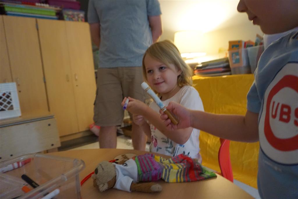 It was a busy back to school week for Eleanor and Henry. Eleanor started her school on Monday, and Henry moved into a new “grade” on Tuesday. Both kids did great, although there was a bit of sadness for each as well. Eleanor is getting into a routine during drop off – she really likes to go onto the rug and pick a book to look through while her classmates file in. She has also had the chance to feed the classroom guinea pigs a few times. Mom and Dad haven’t gotten too many stories yet about how classes are going, but her teacher did let us know that Eleanor raised her hand and suggested “Monkey” as the classroom name by holding up and pointing to Monkey. The class will vote on their name this week – so we will see what wins.