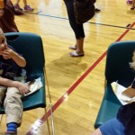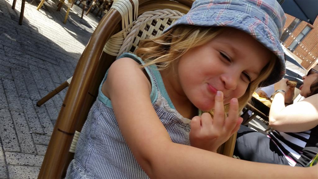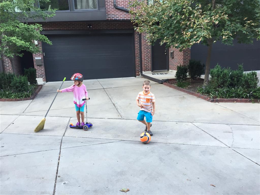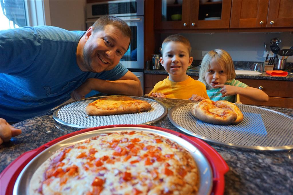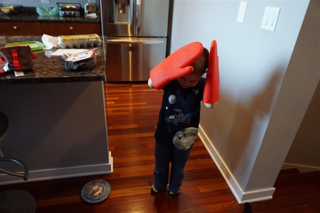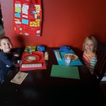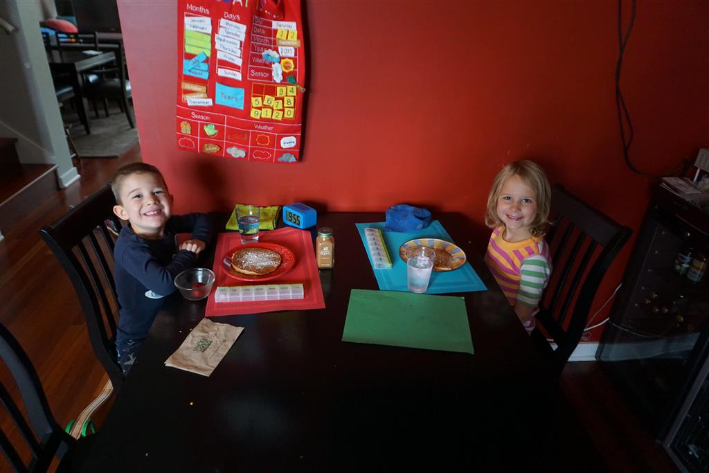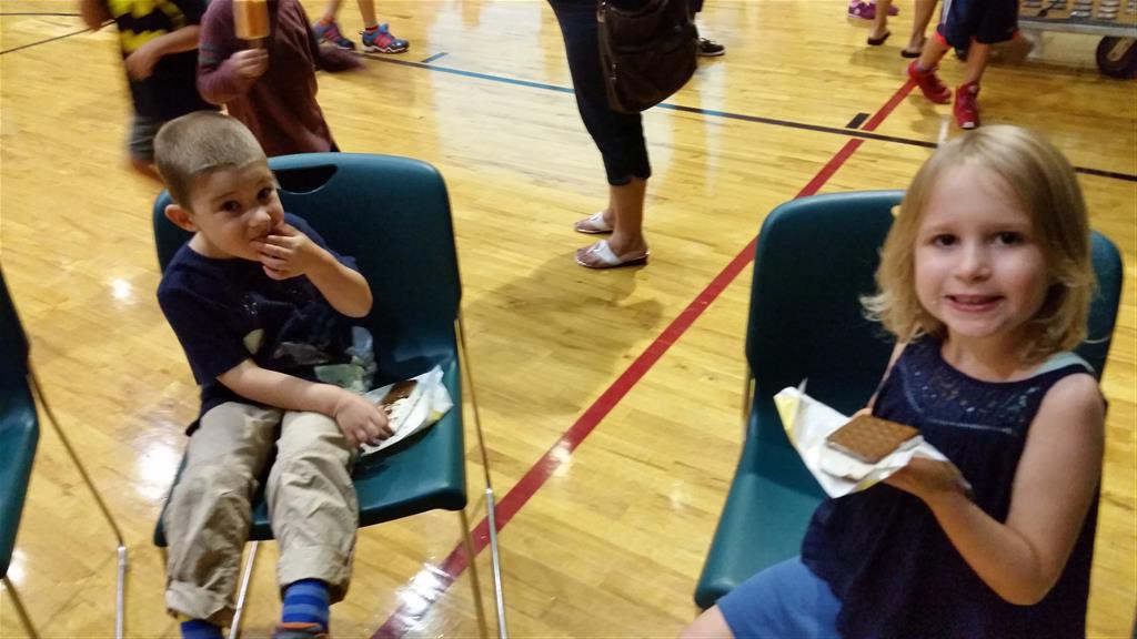 Eleanor and Henry had a Dada weekend this week while Mom got a well deserved vacation. As Dad tends to do, we planned most of the weekend around meals. Lala was a life saver and took care of dinner and Henry Thursday night while Eleanor and Dad were stuck in traffic and a rain storm on the way home from downtown. On Friday, Eleanor had a regular day of school, and Henry got some one on one Dad time. We had a relaxing morning at home filled with trains, puzzles and a tracing workbook, then it was off to the store to stock up for the weekend. We got burgers and corn for Friday dinner, pancakes for Saturday morning, and supplies for make your own pizza on Saturday night. Once we picked up Eleanor, we headed to the school gym for an “Ice Cream Social”! Both kids elected for the ice cream sandwich, and Henry proceeded to eat the chocolate “bread” right off the top and leave all the ice cream. Once we finished, Eleanor got a temporary tattoo of the school mascot cougar paw, and then did a green screen funny picture with a beard and crazy sunglasses. Henry and Eleanor then took turns jumping off the bleachers seeing who could go further.