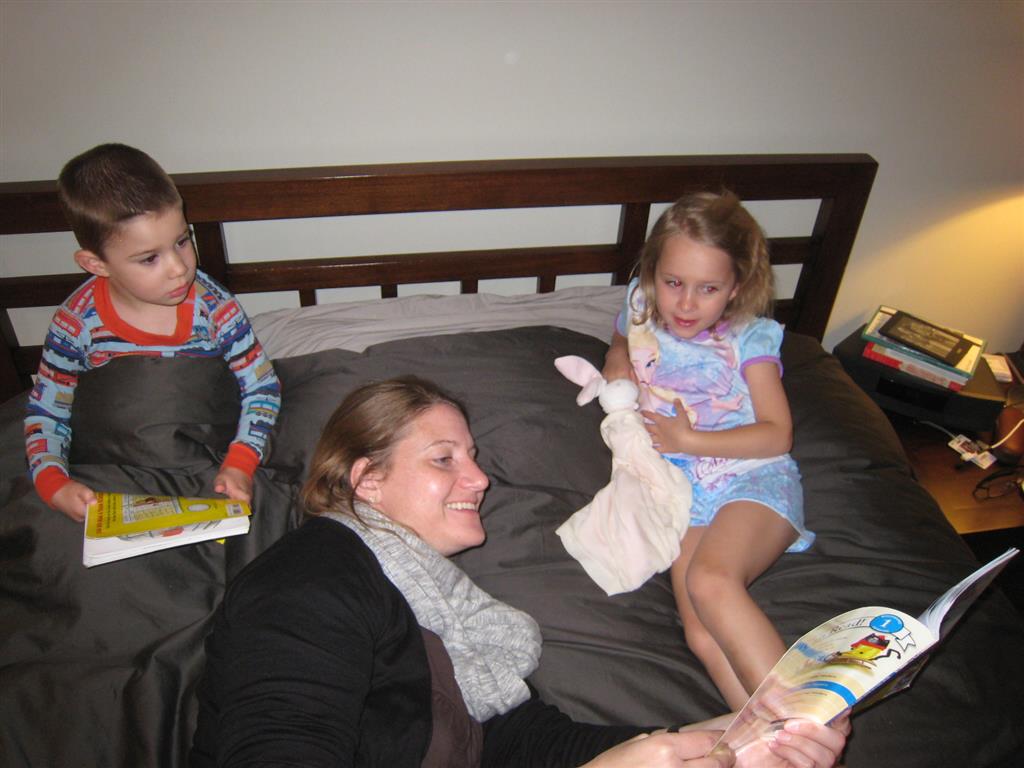 Henry and Eleanor welcomed in fall with a fun week enjoying the cooler weather. Henry was a little under the weather starting on Friday, so we had a relaxing weekend at home. Sunday night we woke Eleanor up to see the lunar eclipse – the clouds parted just in time for us to see the full eclipse. It was hard to tell if Eleanor was excited or just wanted to get back to bed, but she said she was glad that we got her up. We let Henry sleep as he is still recovering.