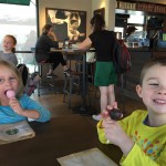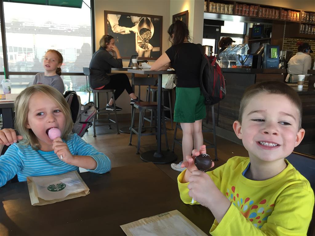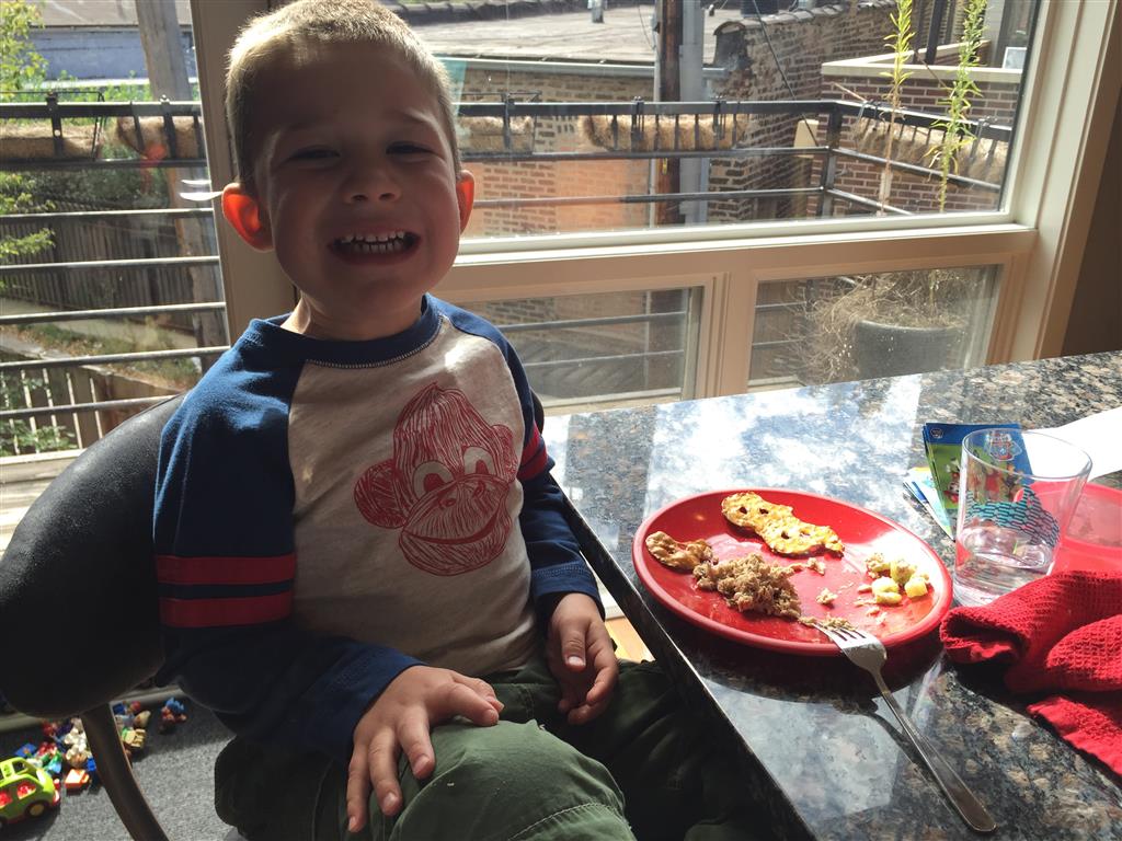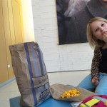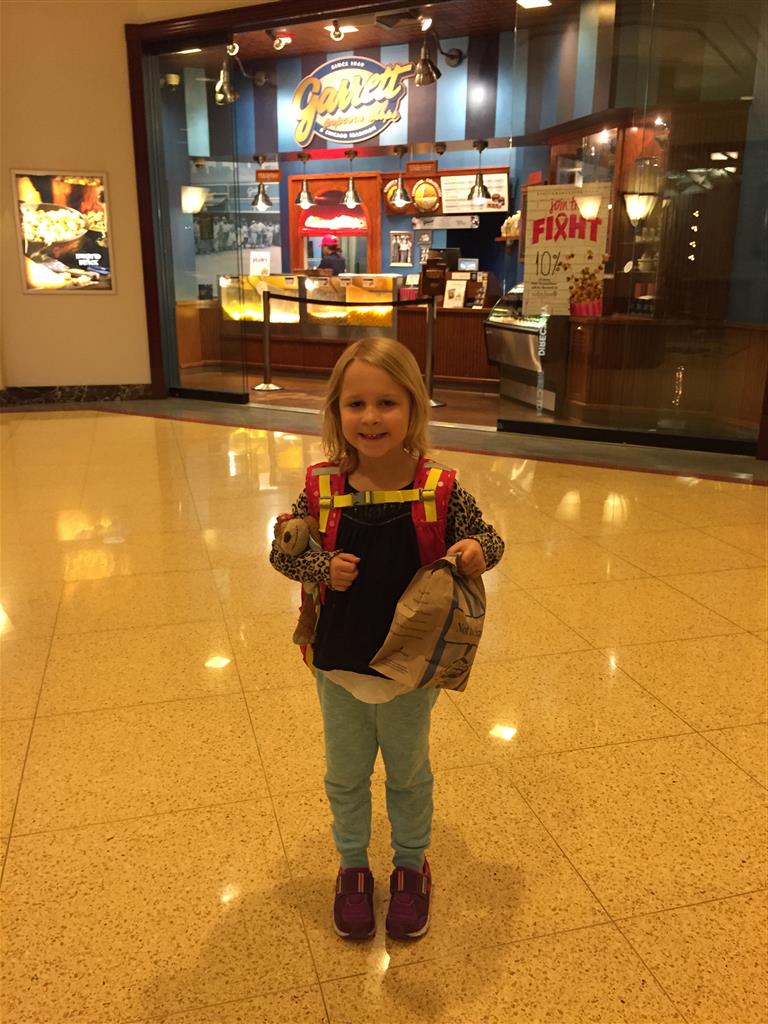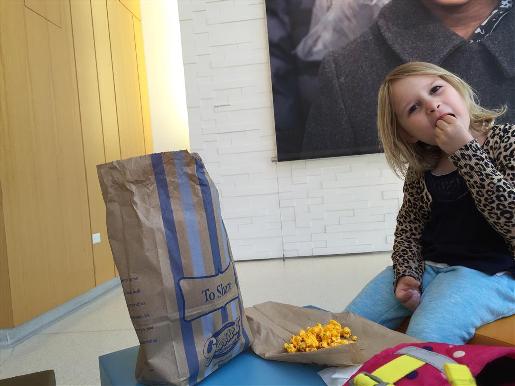 Eleanor and Henry welcomed in October this week with some cooler weather. When Mom picked up Eleanor from school on Thursday for our therapy session, Eleanor declared that she already had a plan for the afternoon: they would get off the train and get popcorn and then eat it in the lobby while they waited for me. When they got off the train, Eleanor made a bee line for the Garrett’s popcorn stand and proceeded to order a bag of cheesy popcorn from the cashier while Mom was still making her way down the hall. Eleanor was very excited to eat it all up.