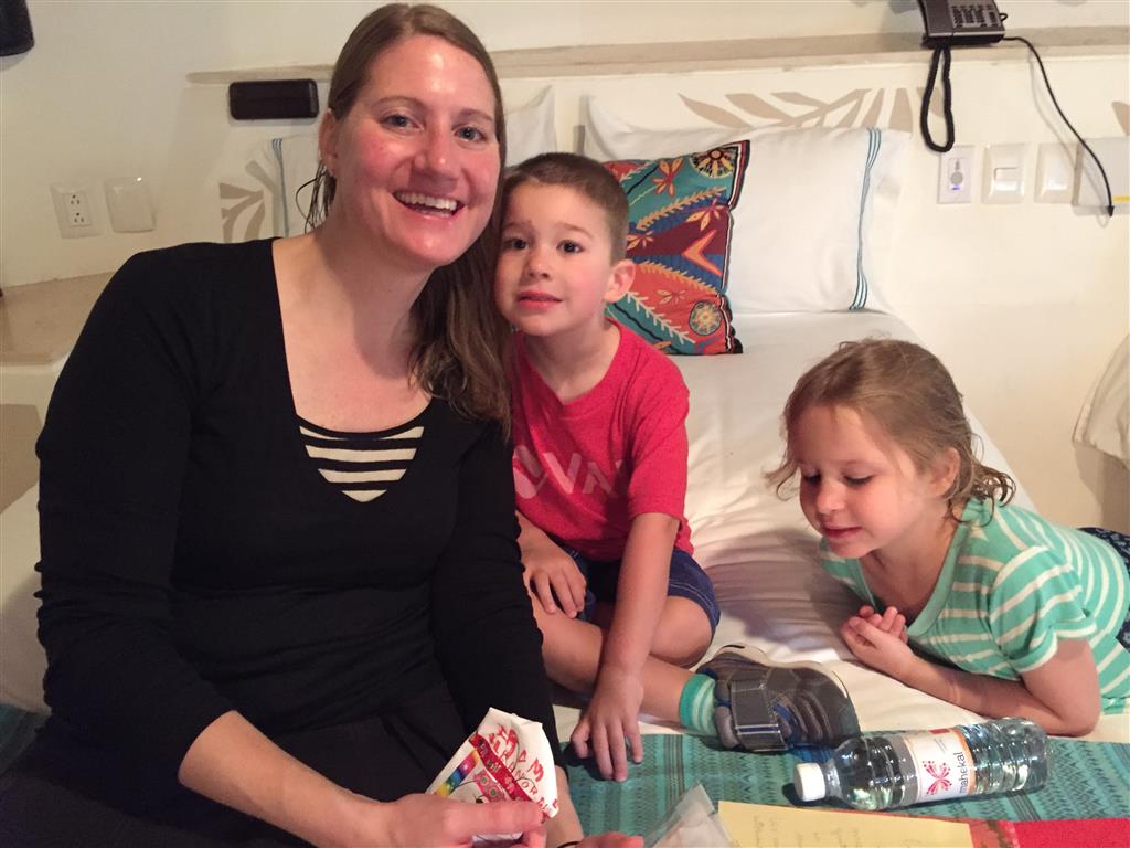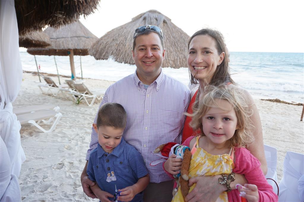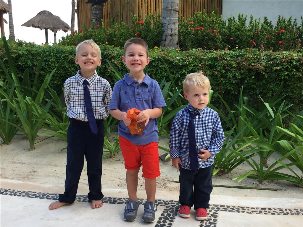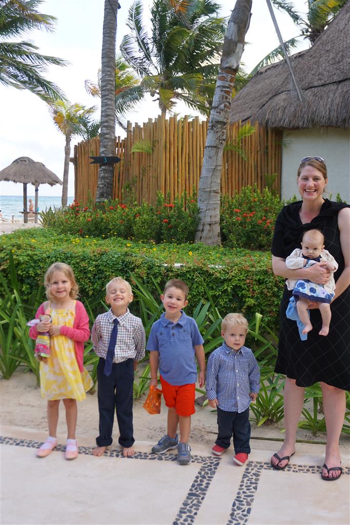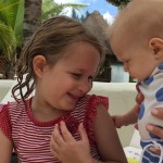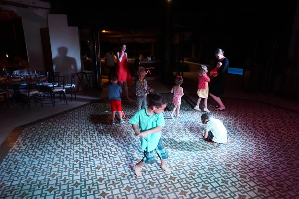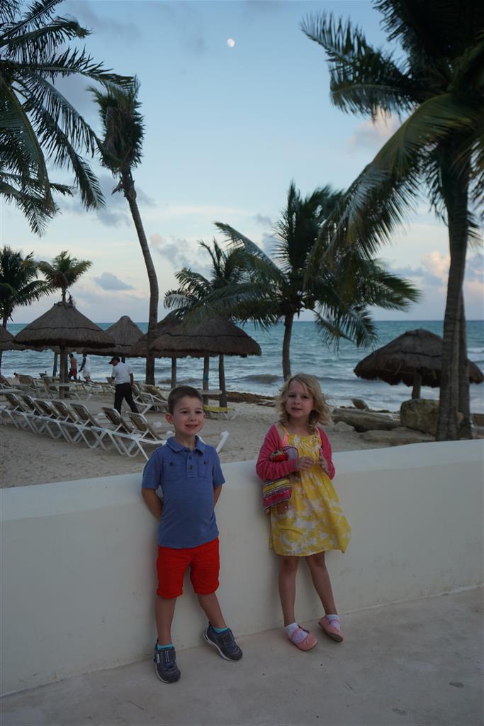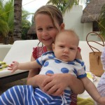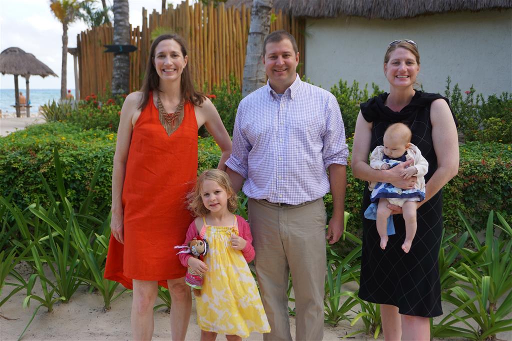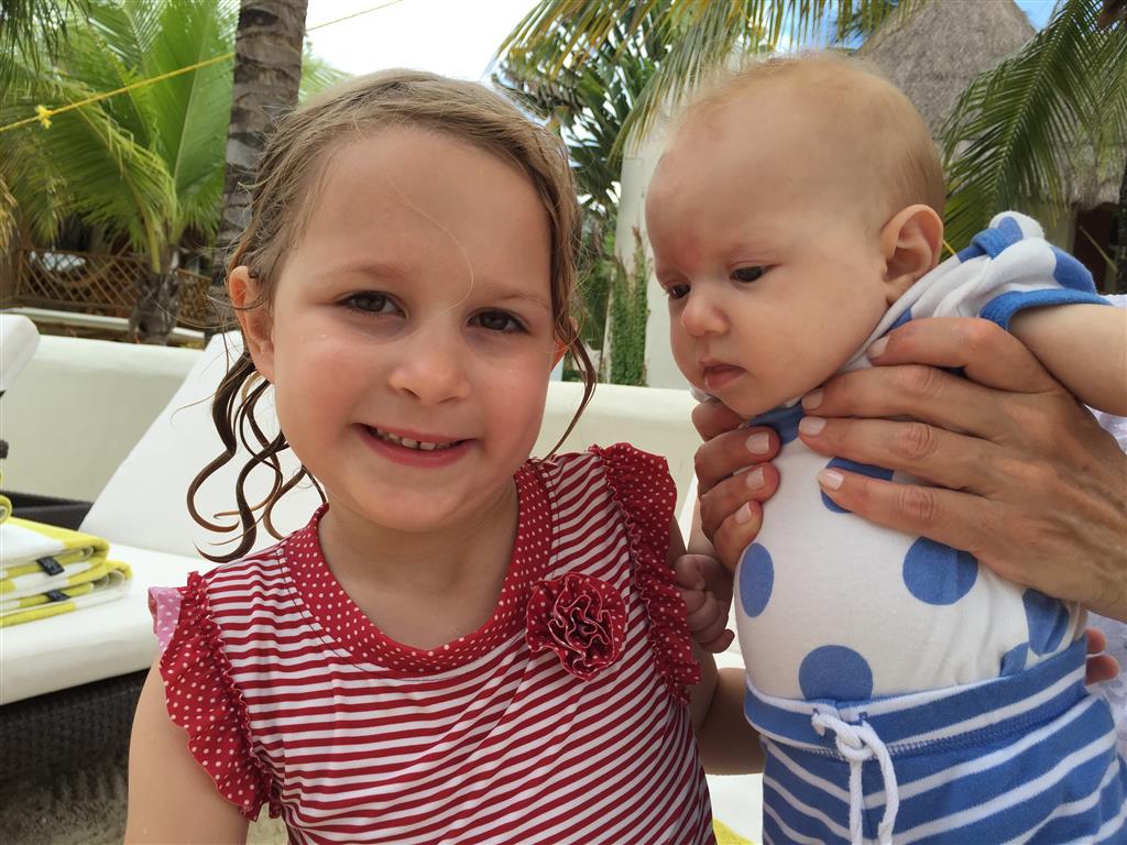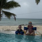 Last week Eleanor and Henry took a fun trip to attend Cousin Adam and Begonia’s wedding in sunny Mexico! We had a blast seeing so many family members there, especially getting to meet baby Simone for the first time! Eleanor and Henry really liked swimming in the pool, and Henry also enjoyed playing on the beach – although Eleanor wasn’t as excited about that. Unfortunately, Eleanor got a little sick for two days, which resulted in a lot of in the room time for her. Poor thing got sick right on her lunch plate, and then again at the dinner table. Of course, that was the one dinner that Dad was alone with the kids as Mom went to the bachelorette party. We had also chosen to leave the hotel and go to a pizza restaurant in town – but they were very nice and quickly boxed up our pizza to take back. The wedding was great fun – the kids sat at an all kids table complete with crafts – and then broke out the glow sticks for a super rave on the dance floor. Henry was especially excited about the crazy dancing, while Eleanor was very interested in helping baby Simone move her arms to the beat.