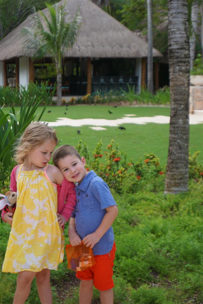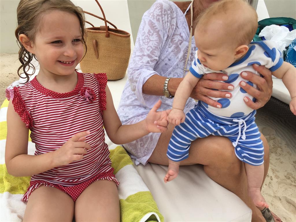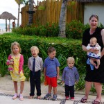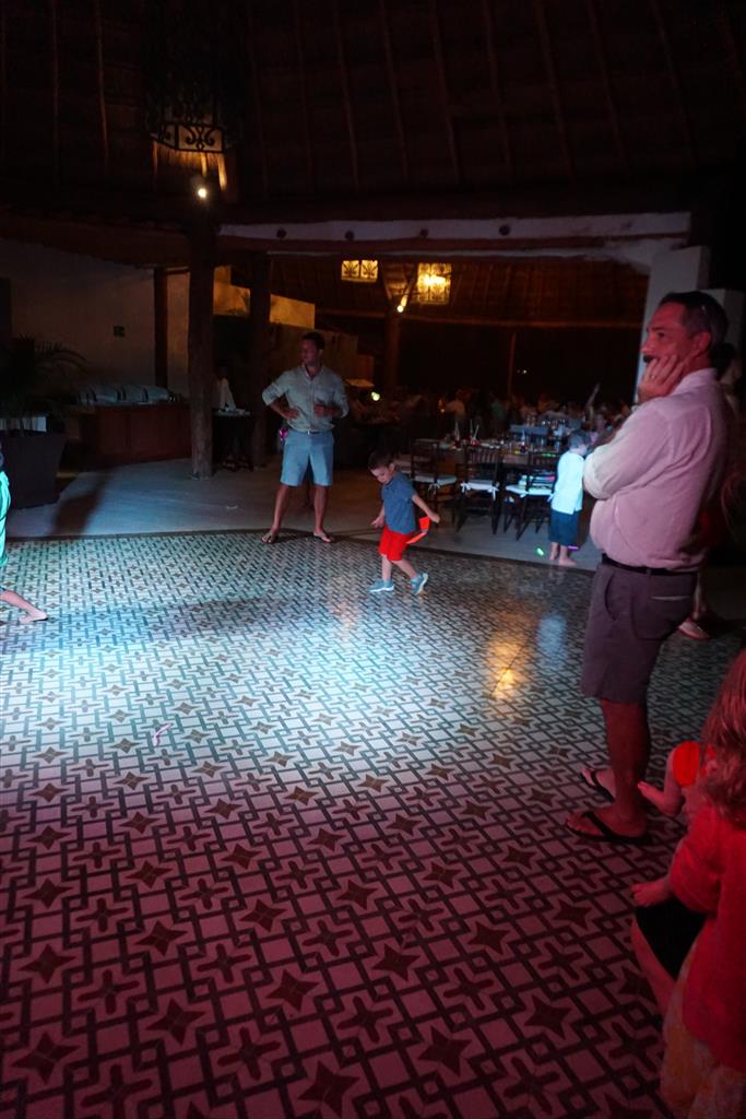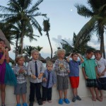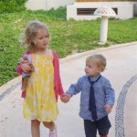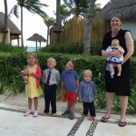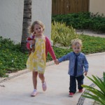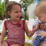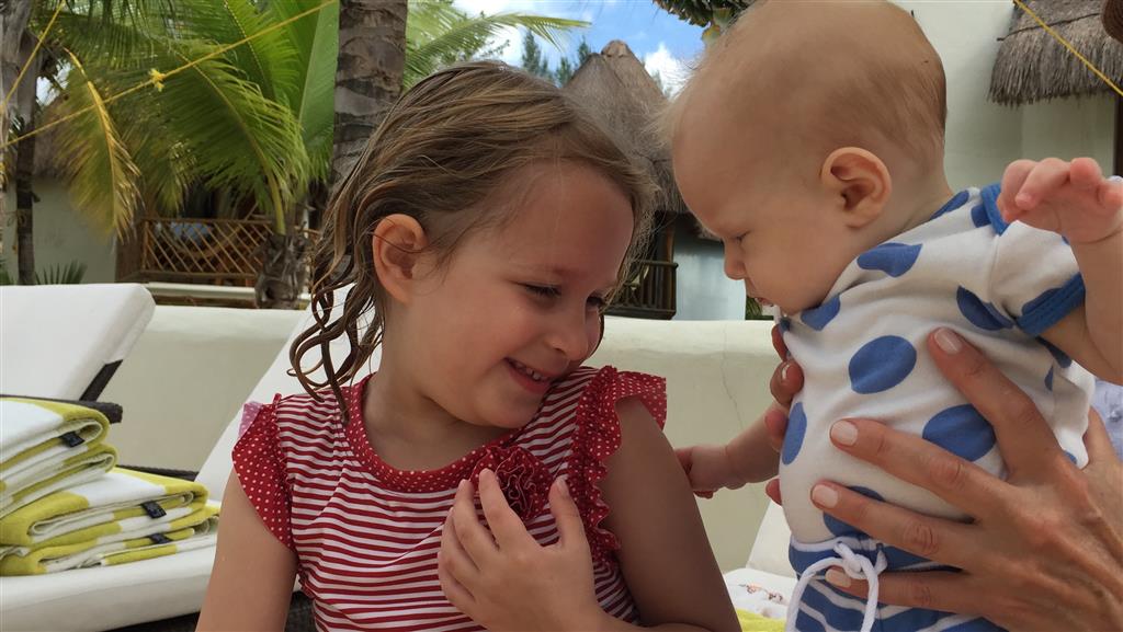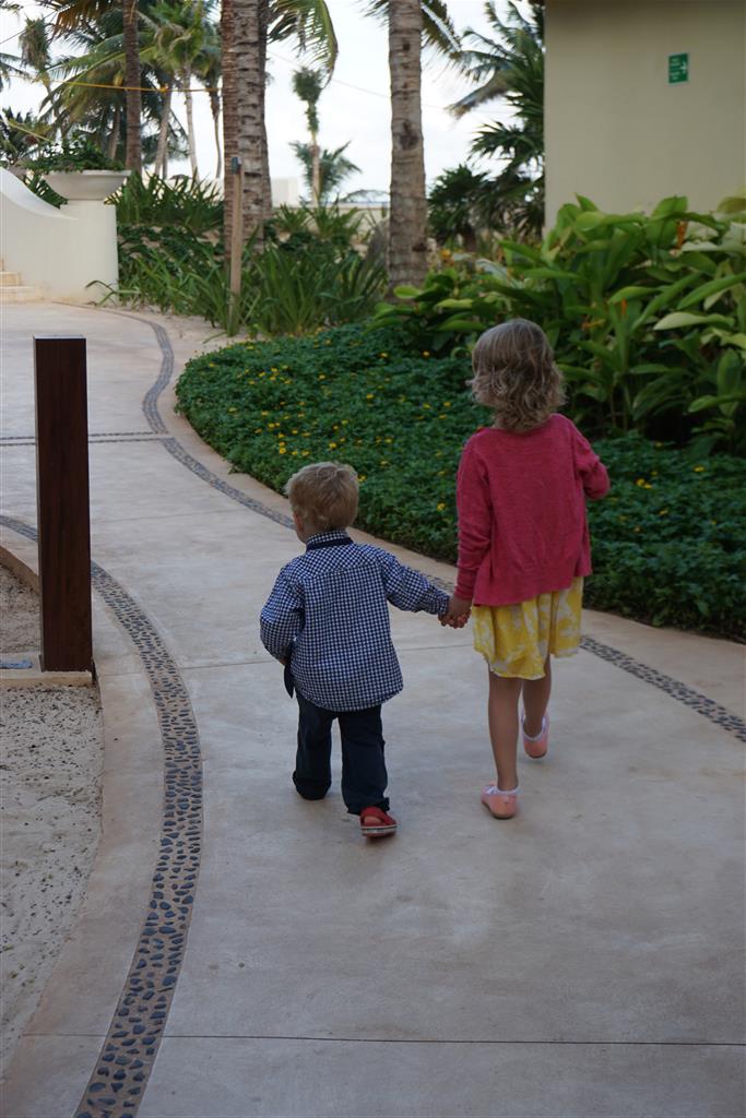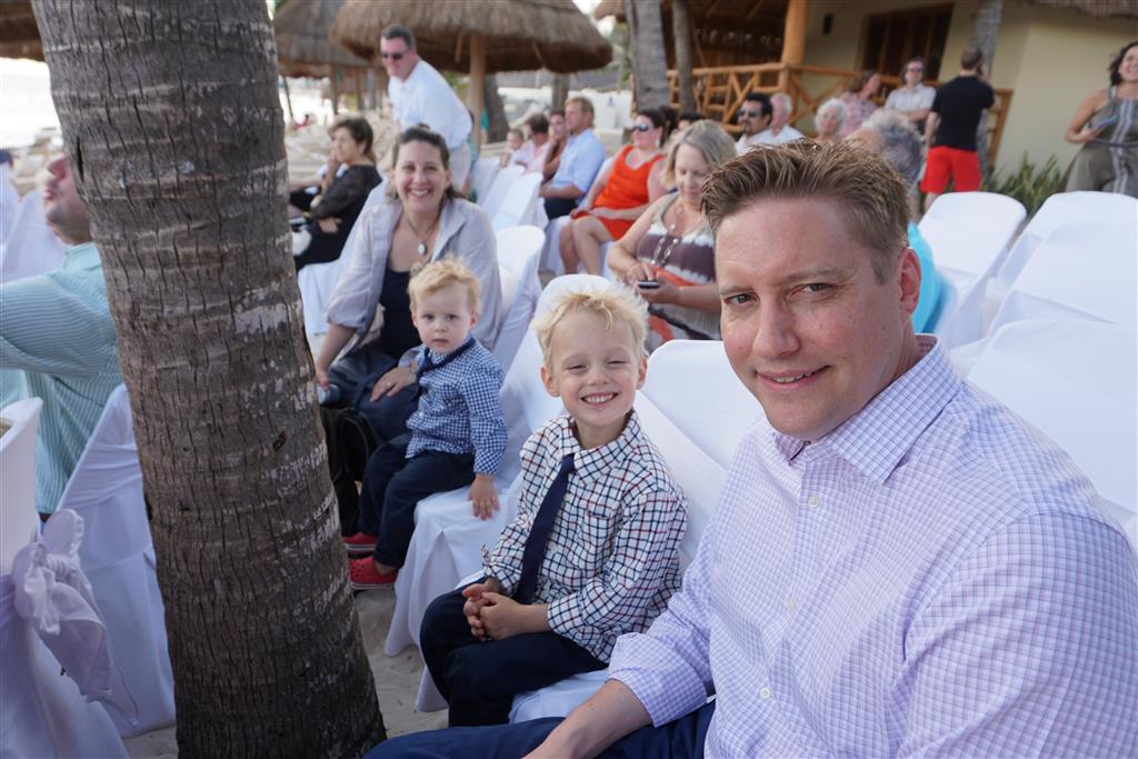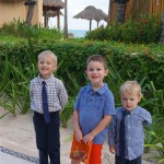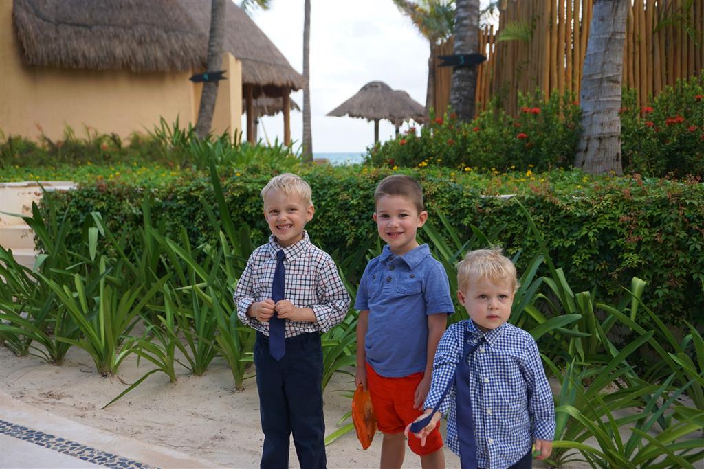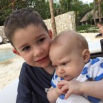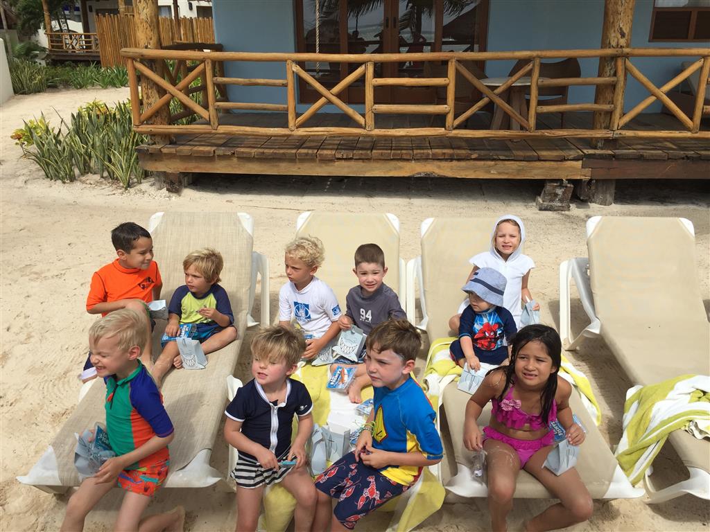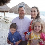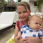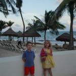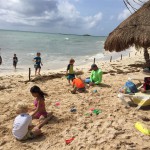 Last week Eleanor and Henry took a fun trip to attend Cousin Adam and Begonia’s wedding in sunny Mexico! We had a blast seeing so many family members there, especially getting to meet baby Simone for the first time! Eleanor and Henry really liked swimming in the pool, and Henry also enjoyed playing on the beach – although Eleanor wasn’t as excited about that. Unfortunately, Eleanor got a little sick for two days, which resulted in a lot of in the room time for her. Poor thing got sick right on her lunch plate, and then again at the dinner table. Of course, that was the one dinner that Dad was alone with the kids as Mom went to the bachelorette party. We had also chosen to leave the hotel and go to a pizza restaurant in town – but they were very nice and quickly boxed up our pizza to take back. The wedding was great fun – the kids sat at an all kids table complete with crafts – and then broke out the glow sticks for a super rave on the dance floor. Henry was especially excited about the crazy dancing, while Eleanor was very interested in helping baby Simone move her arms to the beat.