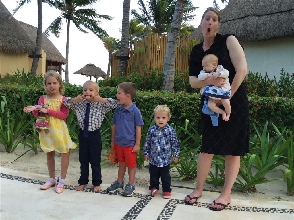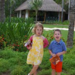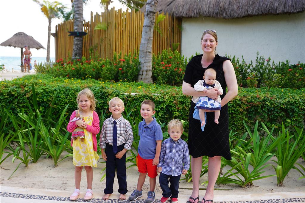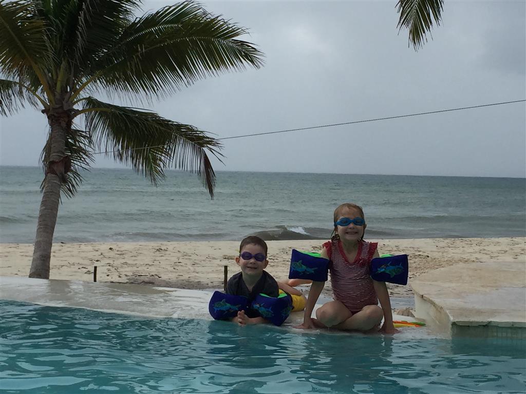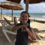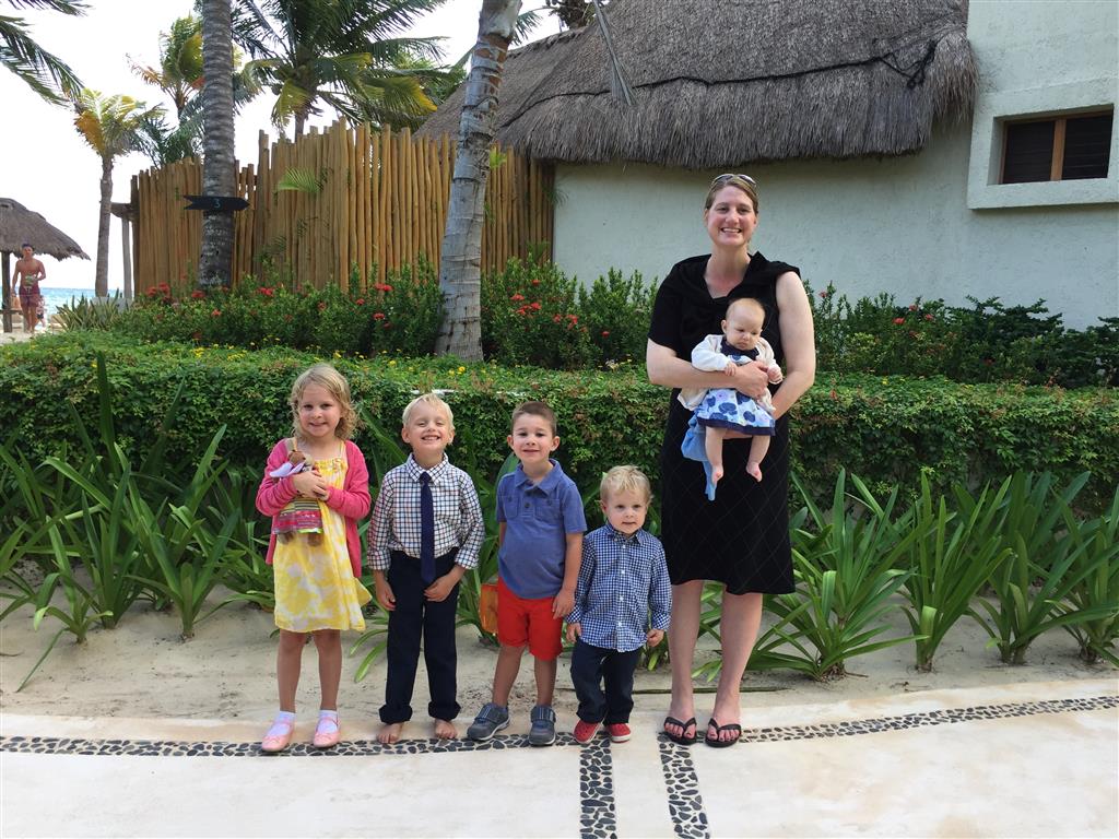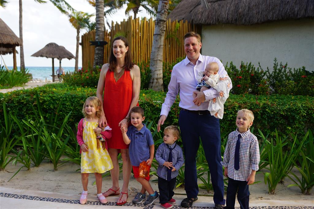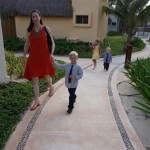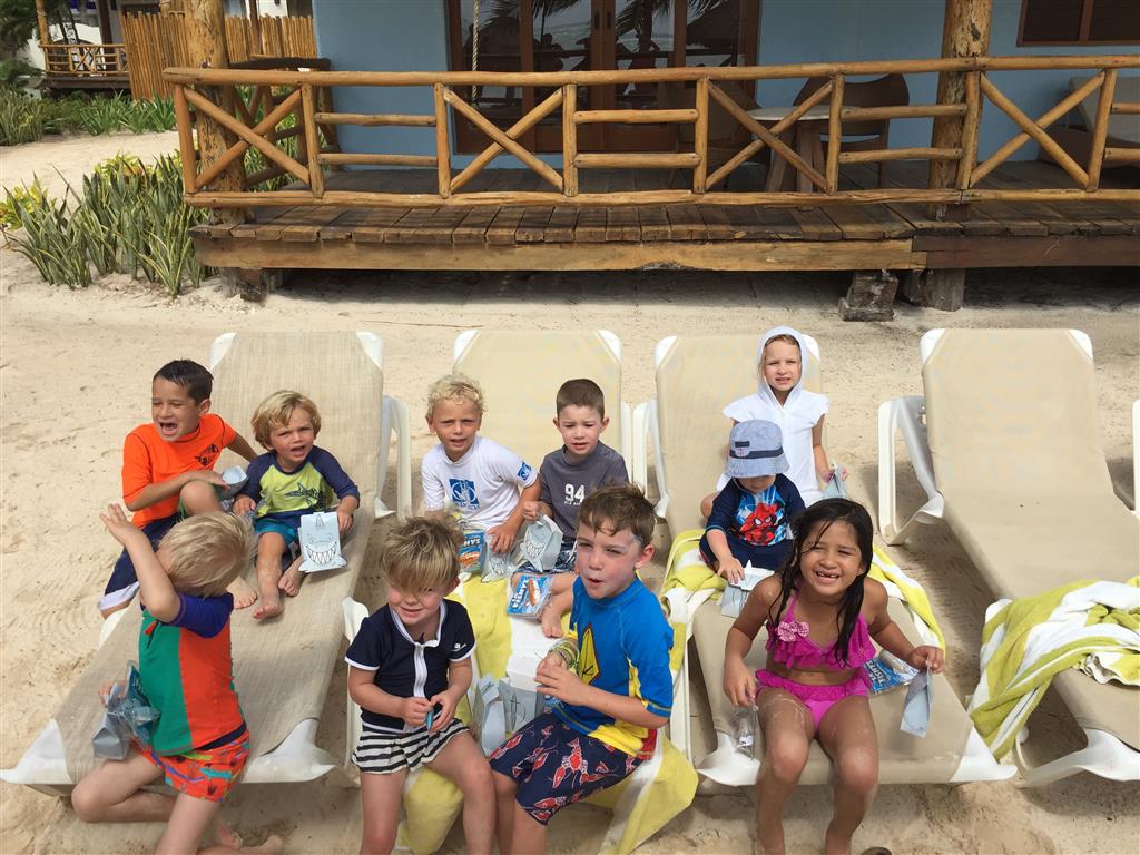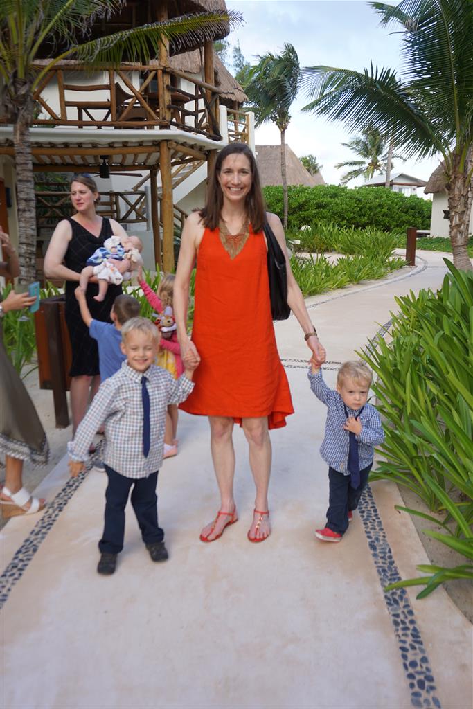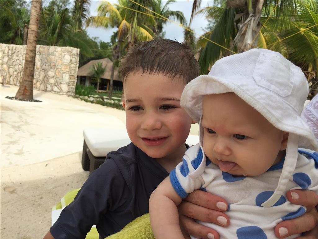 Last week Eleanor and Henry took a fun trip to attend Cousin Adam and Begonia’s wedding in sunny Mexico! We had a blast seeing so many family members there, especially getting to meet baby Simone for the first time! Eleanor and Henry really liked swimming in the pool, and Henry also enjoyed playing on the beach – although Eleanor wasn’t as excited about that. Unfortunately, Eleanor got a little sick for two days, which resulted in a lot of in the room time for her. Poor thing got sick right on her lunch plate, and then again at the dinner table. Of course, that was the one dinner that Dad was alone with the kids as Mom went to the bachelorette party. We had also chosen to leave the hotel and go to a pizza restaurant in town – but they were very nice and quickly boxed up our pizza to take back. The wedding was great fun – the kids sat at an all kids table complete with crafts – and then broke out the glow sticks for a super rave on the dance floor. Henry was especially excited about the crazy dancing, while Eleanor was very interested in helping baby Simone move her arms to the beat.