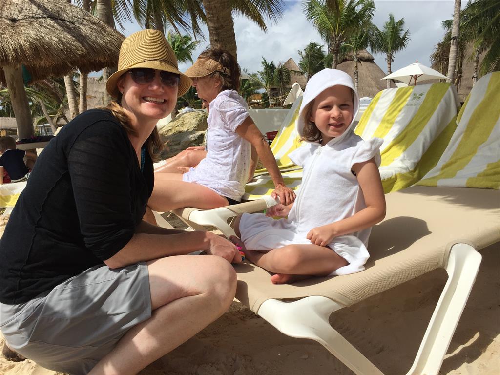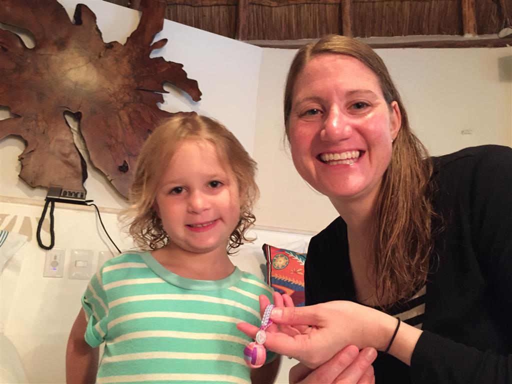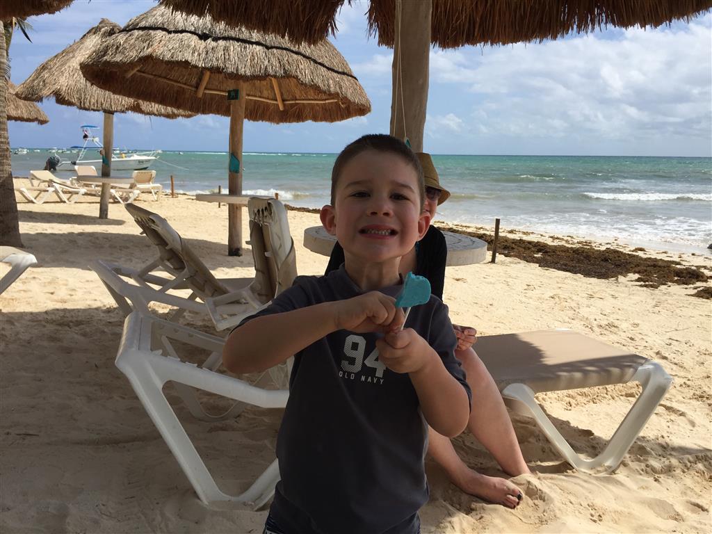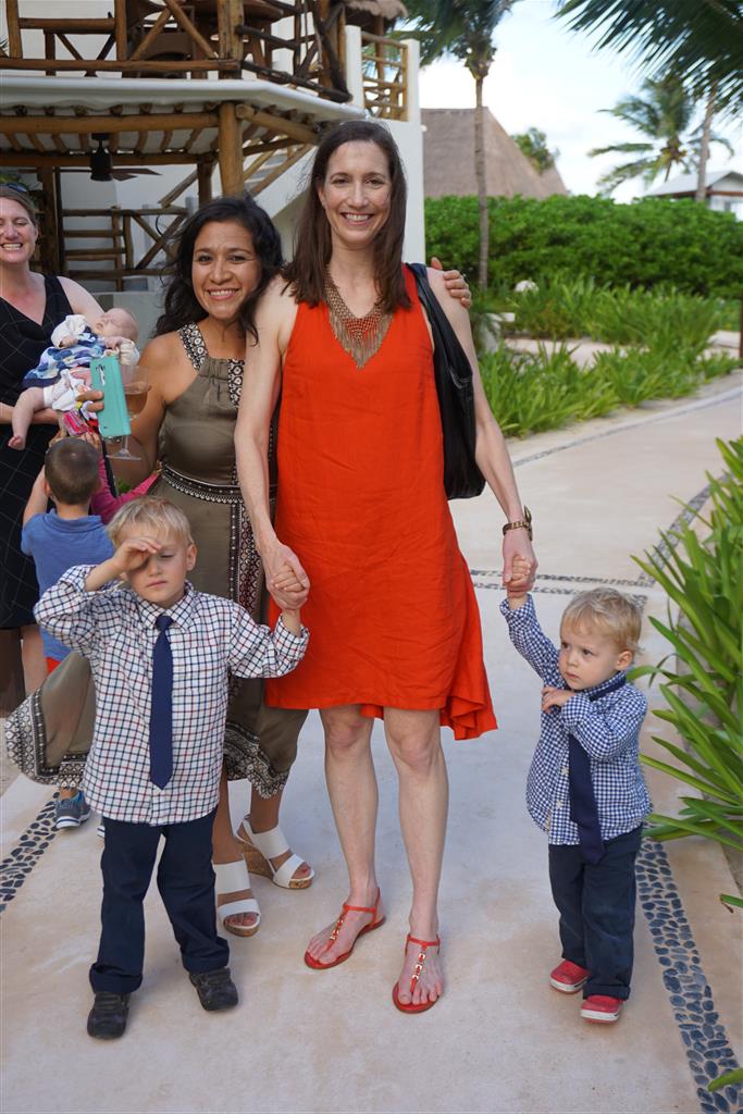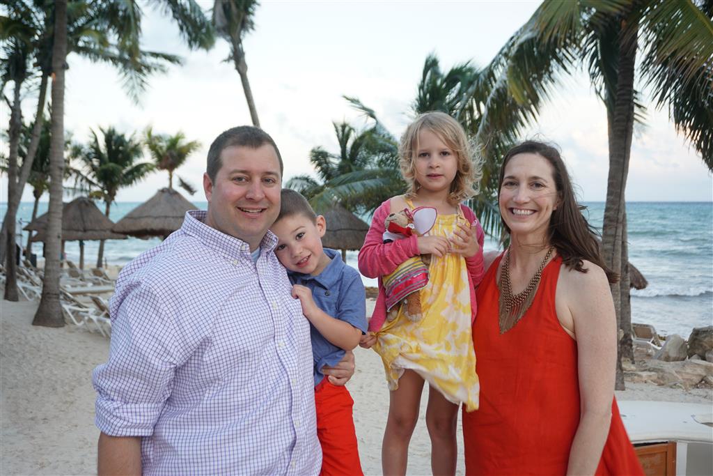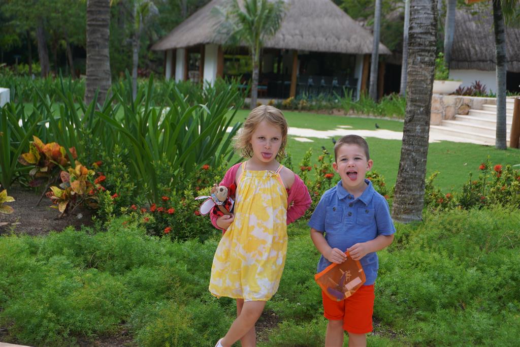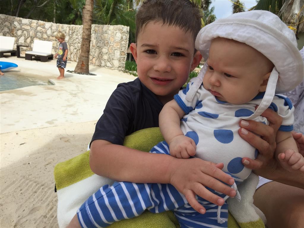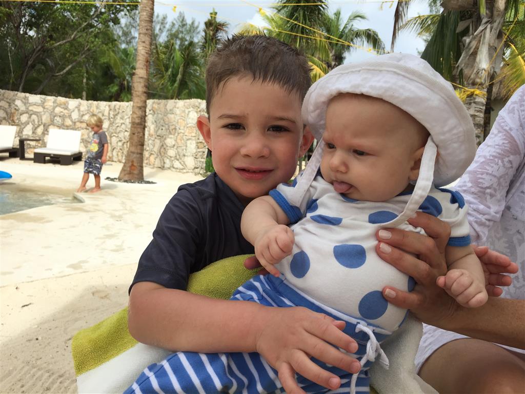 Last week Eleanor and Henry took a fun trip to attend Cousin Adam and Begonia’s wedding in sunny Mexico! We had a blast seeing so many family members there, especially getting to meet baby Simone for the first time! Eleanor and Henry really liked swimming in the pool, and Henry also enjoyed playing on the beach – although Eleanor wasn’t as excited about that. Unfortunately, Eleanor got a little sick for two days, which resulted in a lot of in the room time for her. Poor thing got sick right on her lunch plate, and then again at the dinner table. Of course, that was the one dinner that Dad was alone with the kids as Mom went to the bachelorette party. We had also chosen to leave the hotel and go to a pizza restaurant in town – but they were very nice and quickly boxed up our pizza to take back. The wedding was great fun – the kids sat at an all kids table complete with crafts – and then broke out the glow sticks for a super rave on the dance floor. Henry was especially excited about the crazy dancing, while Eleanor was very interested in helping baby Simone move her arms to the beat.