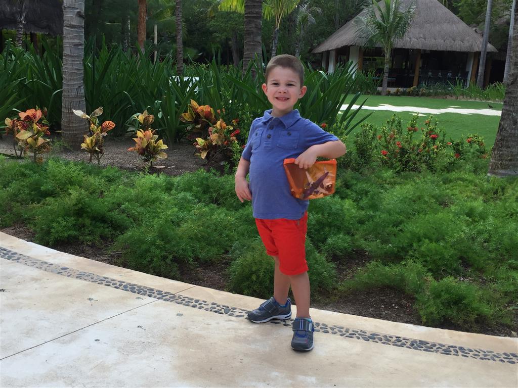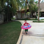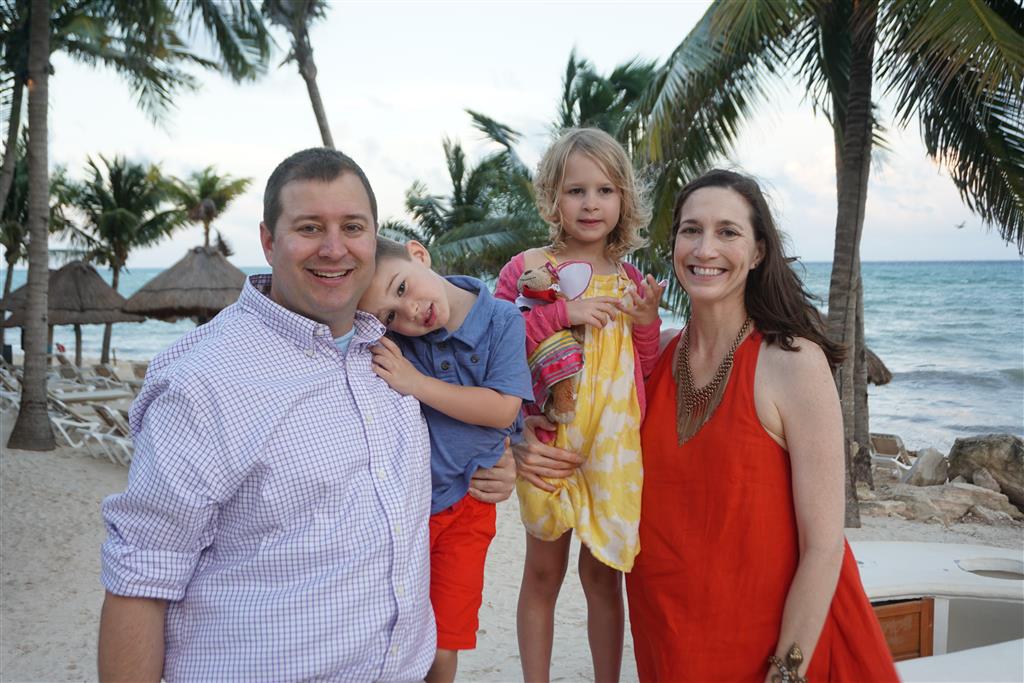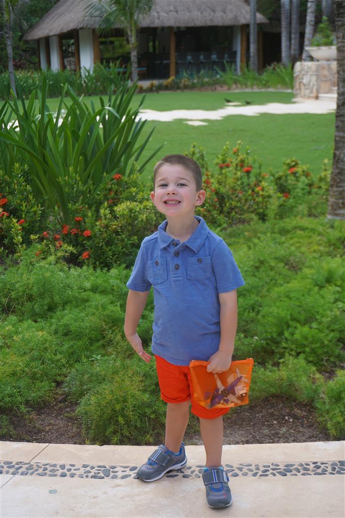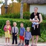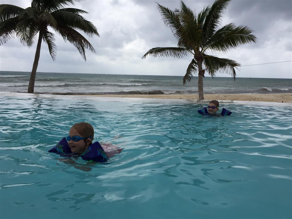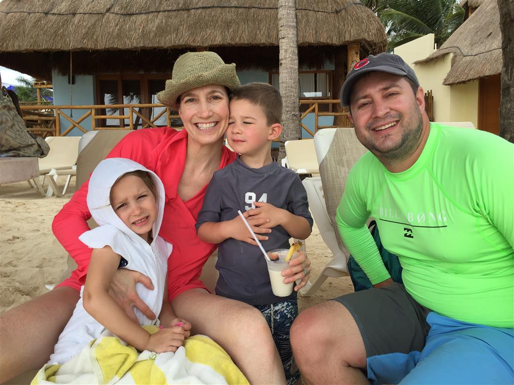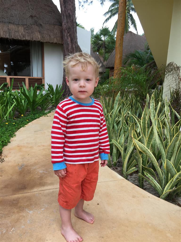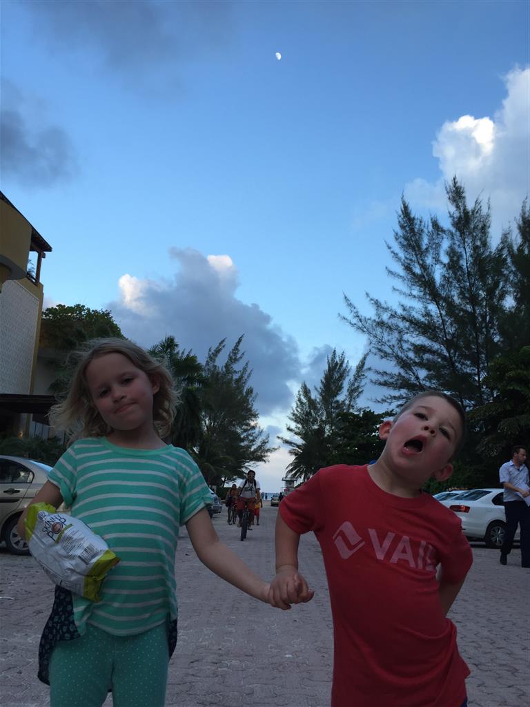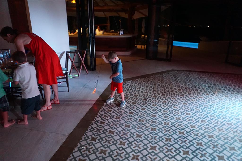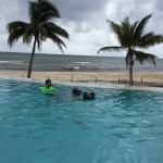 Last week Eleanor and Henry took a fun trip to attend Cousin Adam and Begonia’s wedding in sunny Mexico! We had a blast seeing so many family members there, especially getting to meet baby Simone for the first time! Eleanor and Henry really liked swimming in the pool, and Henry also enjoyed playing on the beach – although Eleanor wasn’t as excited about that. Unfortunately, Eleanor got a little sick for two days, which resulted in a lot of in the room time for her. Poor thing got sick right on her lunch plate, and then again at the dinner table. Of course, that was the one dinner that Dad was alone with the kids as Mom went to the bachelorette party. We had also chosen to leave the hotel and go to a pizza restaurant in town – but they were very nice and quickly boxed up our pizza to take back. The wedding was great fun – the kids sat at an all kids table complete with crafts – and then broke out the glow sticks for a super rave on the dance floor. Henry was especially excited about the crazy dancing, while Eleanor was very interested in helping baby Simone move her arms to the beat.