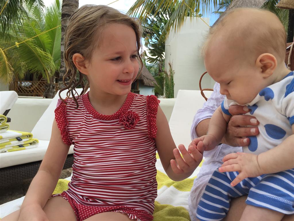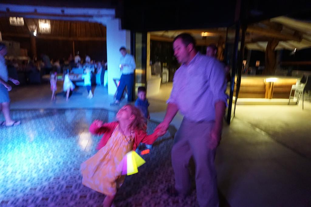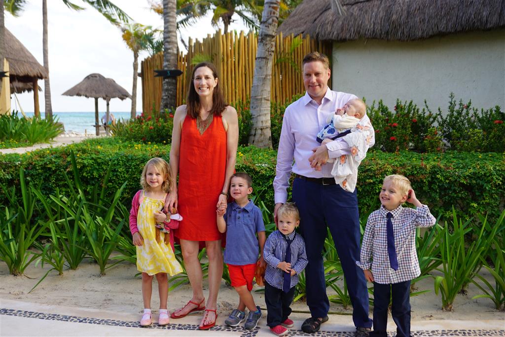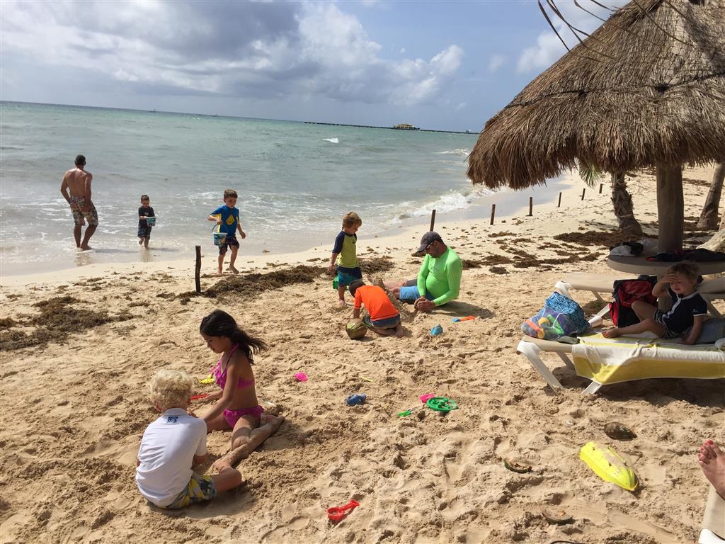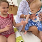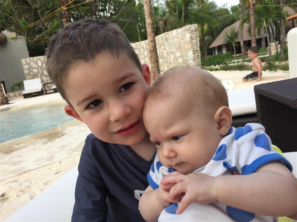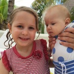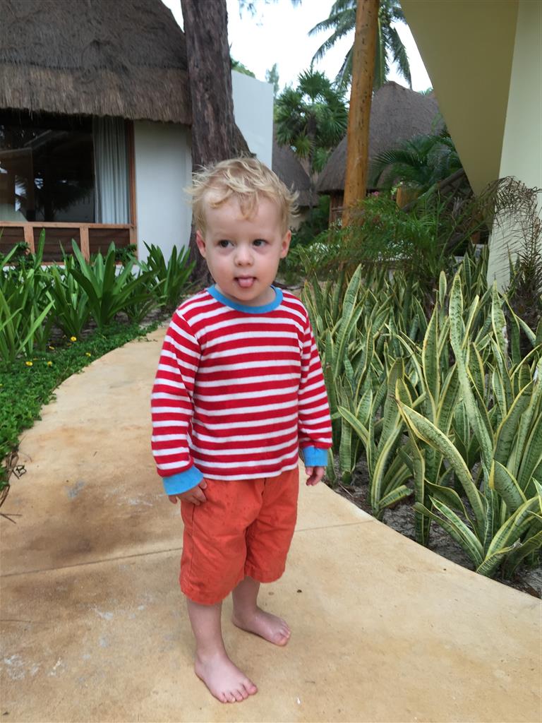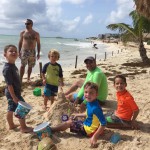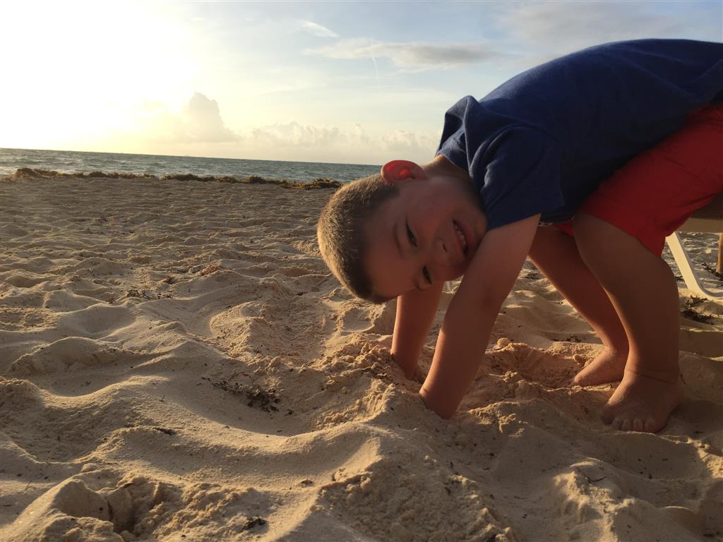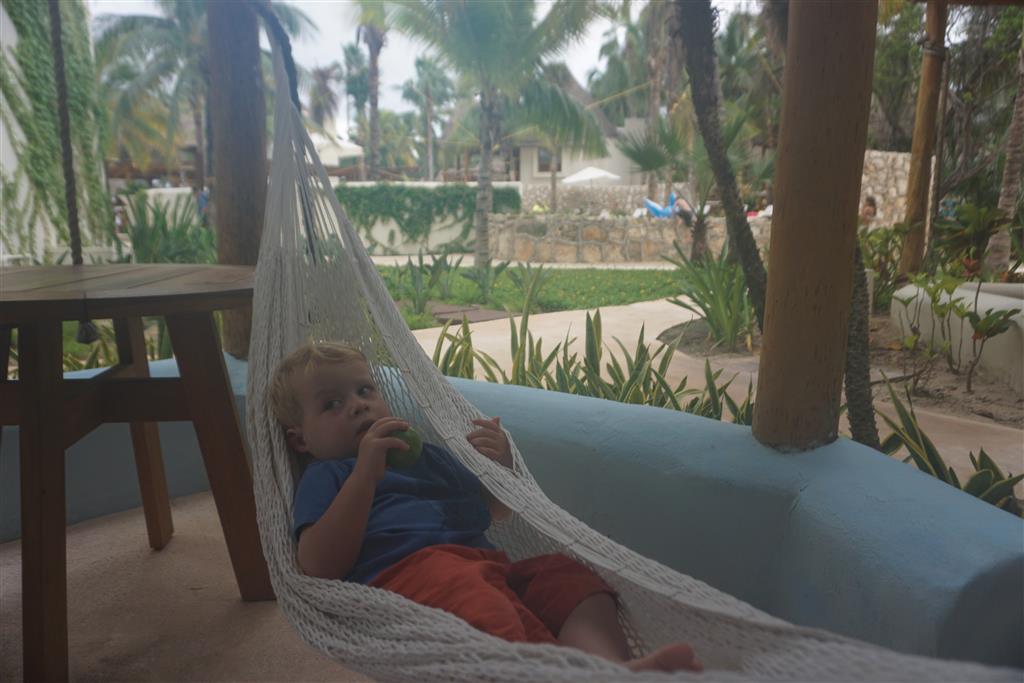 Last week Eleanor and Henry took a fun trip to attend Cousin Adam and Begonia’s wedding in sunny Mexico! We had a blast seeing so many family members there, especially getting to meet baby Simone for the first time! Eleanor and Henry really liked swimming in the pool, and Henry also enjoyed playing on the beach – although Eleanor wasn’t as excited about that. Unfortunately, Eleanor got a little sick for two days, which resulted in a lot of in the room time for her. Poor thing got sick right on her lunch plate, and then again at the dinner table. Of course, that was the one dinner that Dad was alone with the kids as Mom went to the bachelorette party. We had also chosen to leave the hotel and go to a pizza restaurant in town – but they were very nice and quickly boxed up our pizza to take back. The wedding was great fun – the kids sat at an all kids table complete with crafts – and then broke out the glow sticks for a super rave on the dance floor. Henry was especially excited about the crazy dancing, while Eleanor was very interested in helping baby Simone move her arms to the beat.