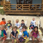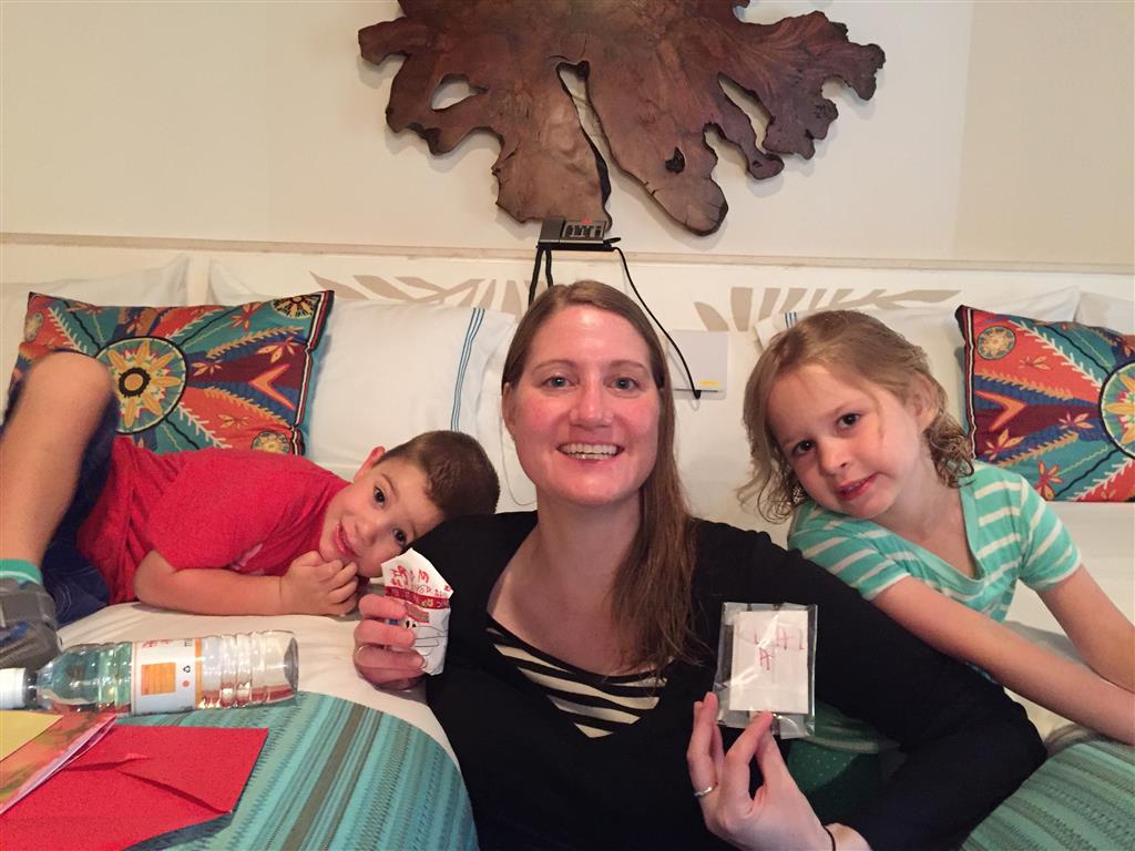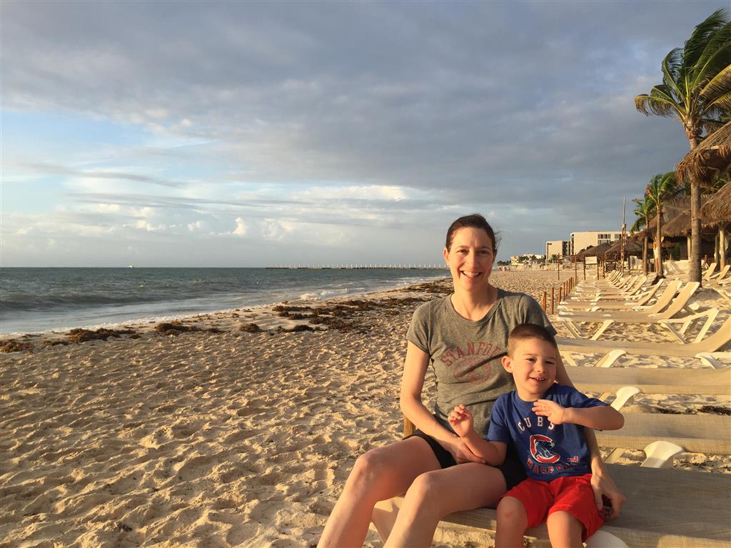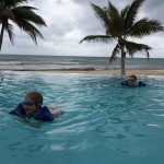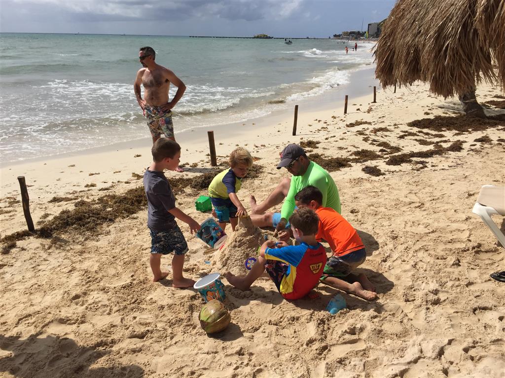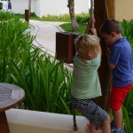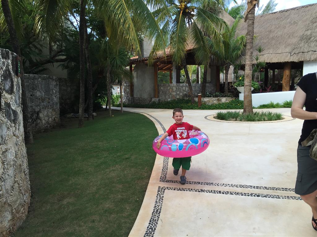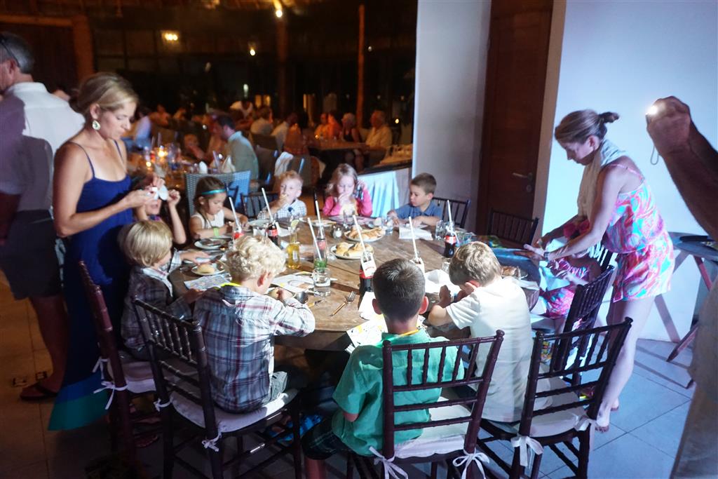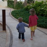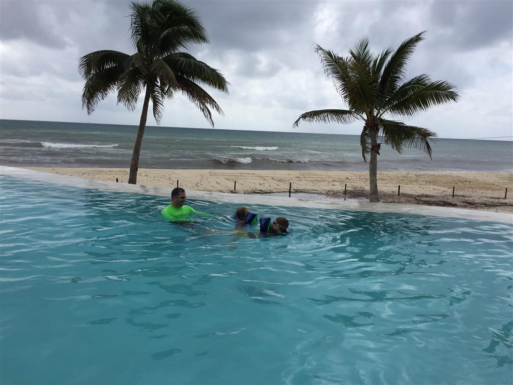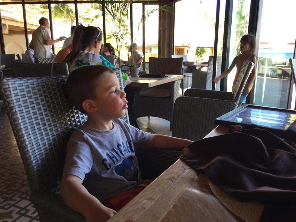 Last week Eleanor and Henry took a fun trip to attend Cousin Adam and Begonia’s wedding in sunny Mexico! We had a blast seeing so many family members there, especially getting to meet baby Simone for the first time! Eleanor and Henry really liked swimming in the pool, and Henry also enjoyed playing on the beach – although Eleanor wasn’t as excited about that. Unfortunately, Eleanor got a little sick for two days, which resulted in a lot of in the room time for her. Poor thing got sick right on her lunch plate, and then again at the dinner table. Of course, that was the one dinner that Dad was alone with the kids as Mom went to the bachelorette party. We had also chosen to leave the hotel and go to a pizza restaurant in town – but they were very nice and quickly boxed up our pizza to take back. The wedding was great fun – the kids sat at an all kids table complete with crafts – and then broke out the glow sticks for a super rave on the dance floor. Henry was especially excited about the crazy dancing, while Eleanor was very interested in helping baby Simone move her arms to the beat.