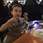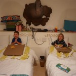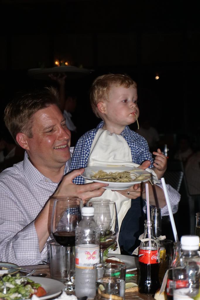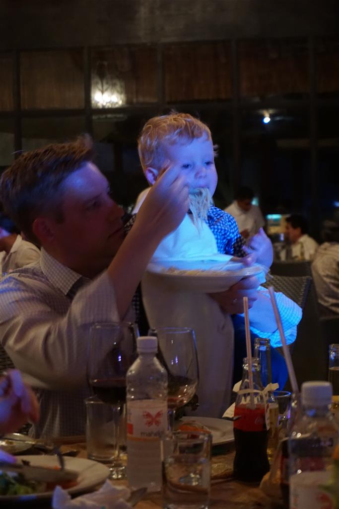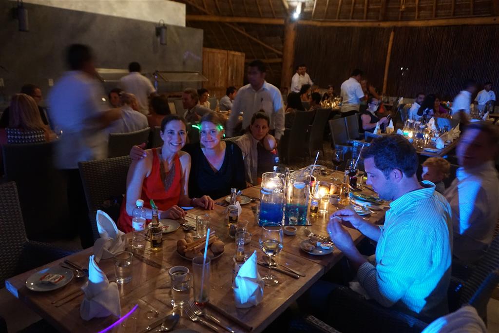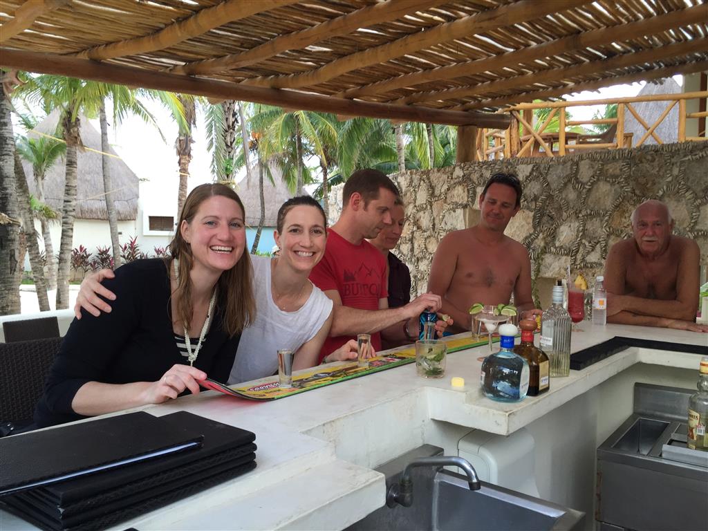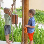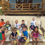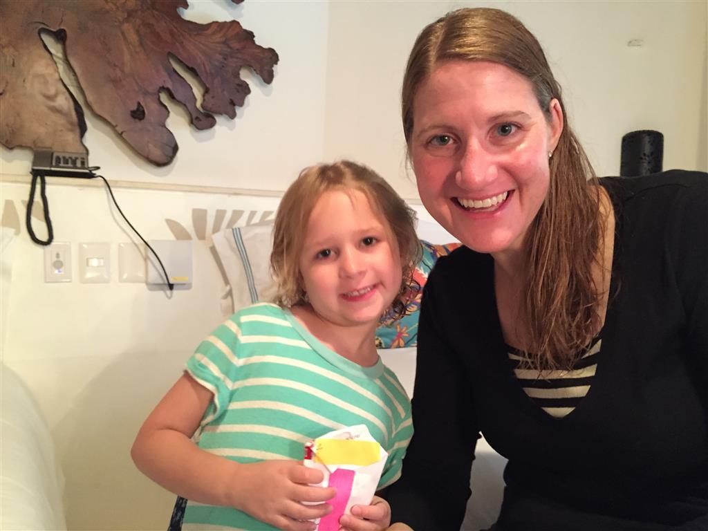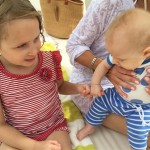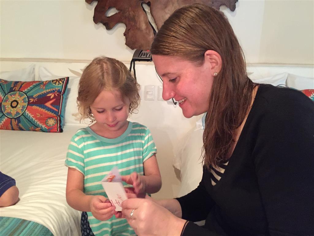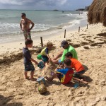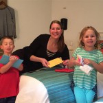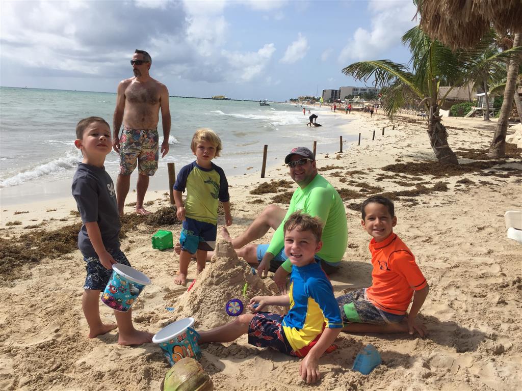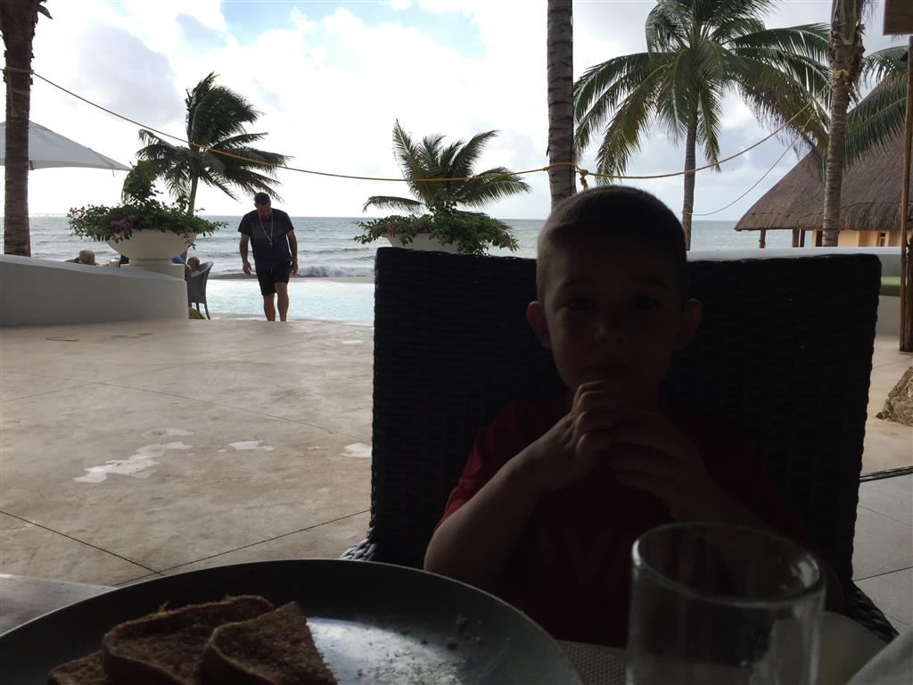 Last week Eleanor and Henry took a fun trip to attend Cousin Adam and Begonia’s wedding in sunny Mexico! We had a blast seeing so many family members there, especially getting to meet baby Simone for the first time! Eleanor and Henry really liked swimming in the pool, and Henry also enjoyed playing on the beach – although Eleanor wasn’t as excited about that. Unfortunately, Eleanor got a little sick for two days, which resulted in a lot of in the room time for her. Poor thing got sick right on her lunch plate, and then again at the dinner table. Of course, that was the one dinner that Dad was alone with the kids as Mom went to the bachelorette party. We had also chosen to leave the hotel and go to a pizza restaurant in town – but they were very nice and quickly boxed up our pizza to take back. The wedding was great fun – the kids sat at an all kids table complete with crafts – and then broke out the glow sticks for a super rave on the dance floor. Henry was especially excited about the crazy dancing, while Eleanor was very interested in helping baby Simone move her arms to the beat.