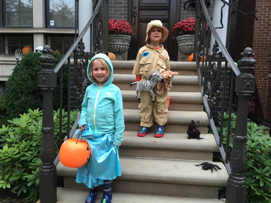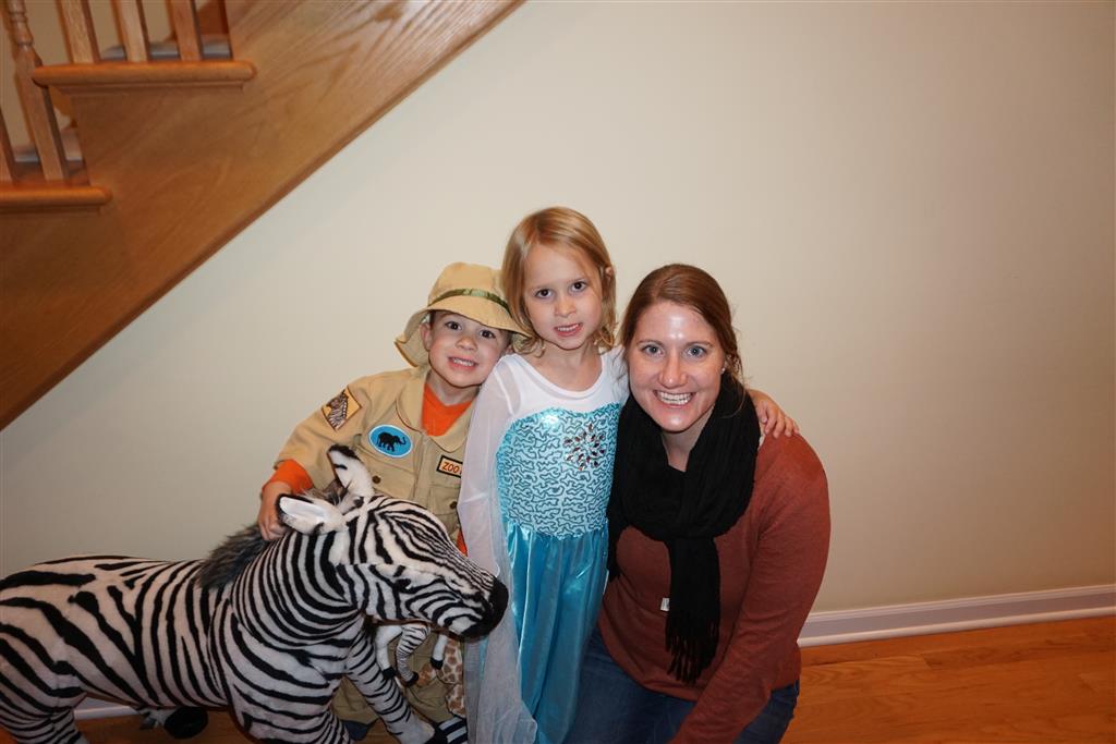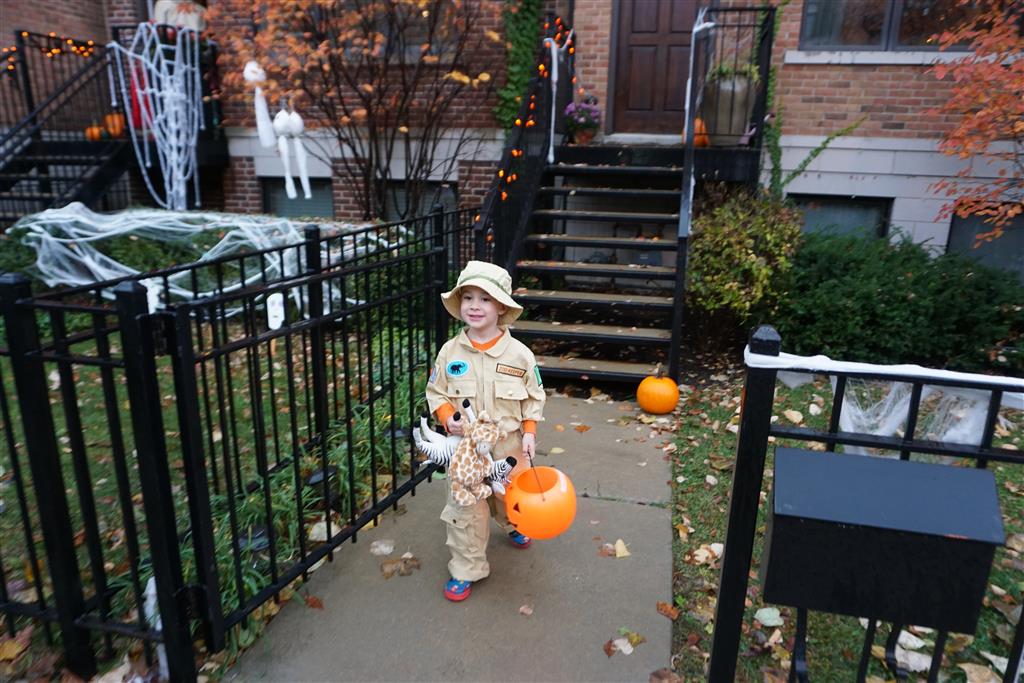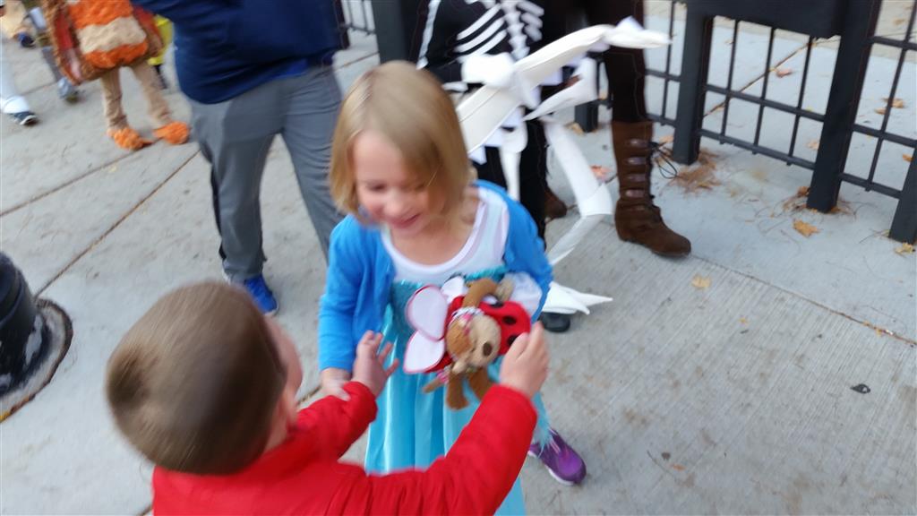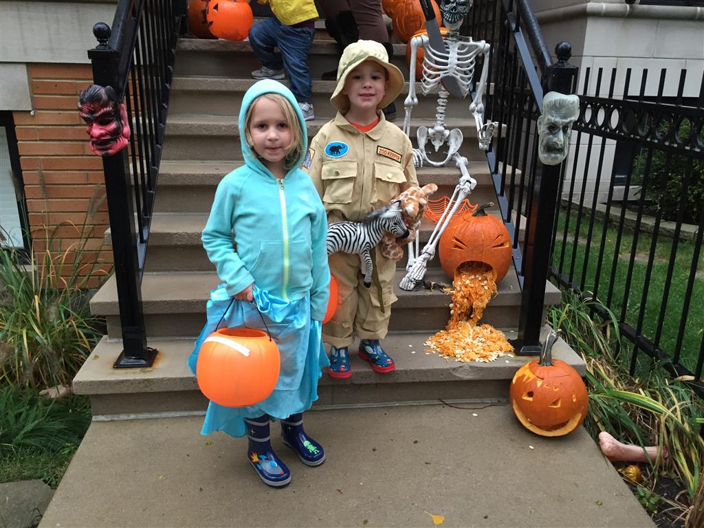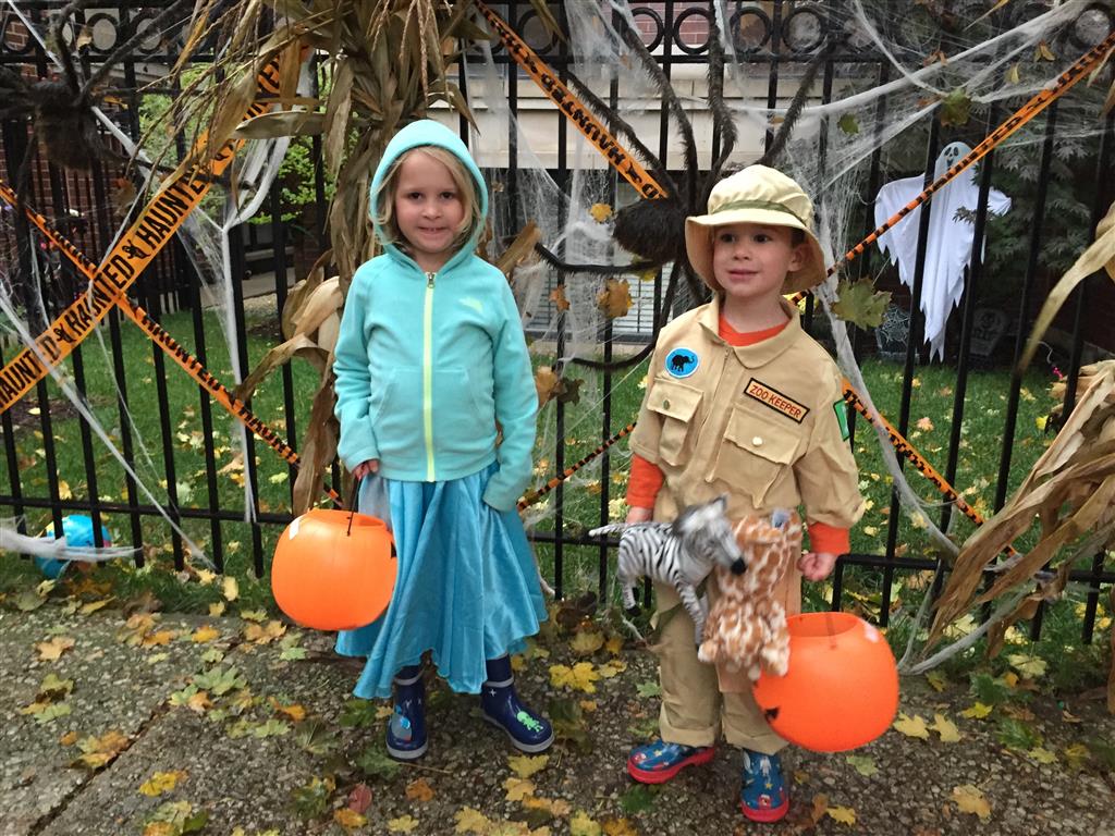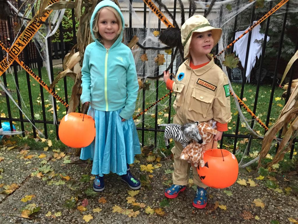 Eleanor and Henry were very excited for Halloween this week! We had a bonus as Grandma and Grandpa drove in so they could join in the fun! Eleanor dressed as Elsa, although she didn’t want to wear the wig that completed her costume. Henry was a zookeeper, and emphasized that he was going to take care of a giraffe and a zebra. On Friday Eleanor wore her costume to school and they had a parade around the block. Then, on Saturday we trick-or-treated in our friend Charlie and Tyler’s neighborhood again. The forecast was for rain and cold, but we got a break as the rain stopped just in time. This was the first year that Eleanor and Henry were both really into trick-or-treating, and we ended up hitting the whole block.