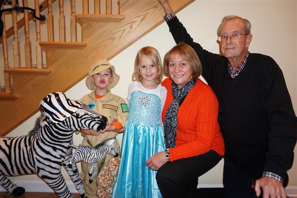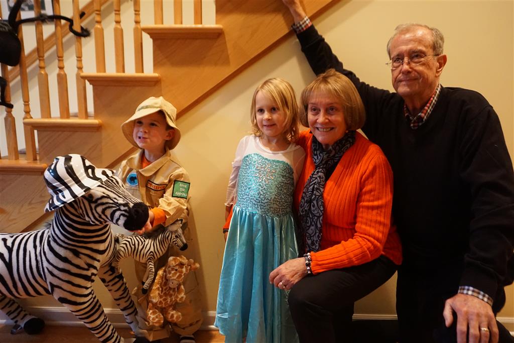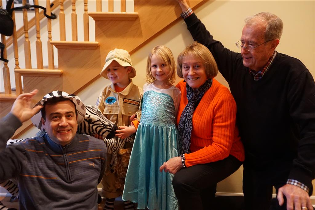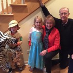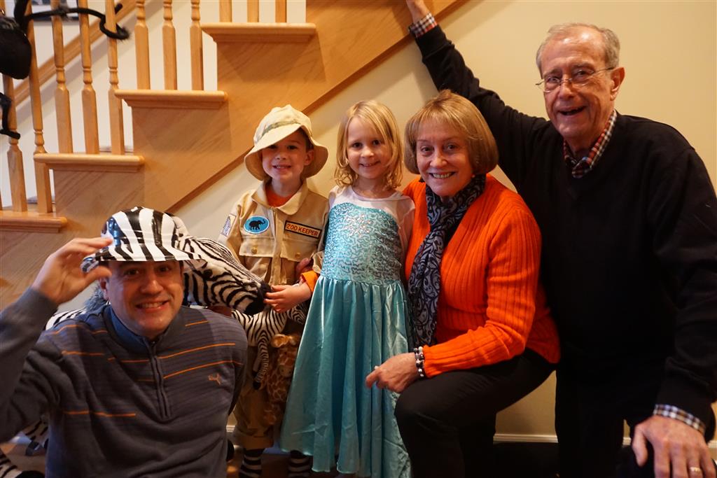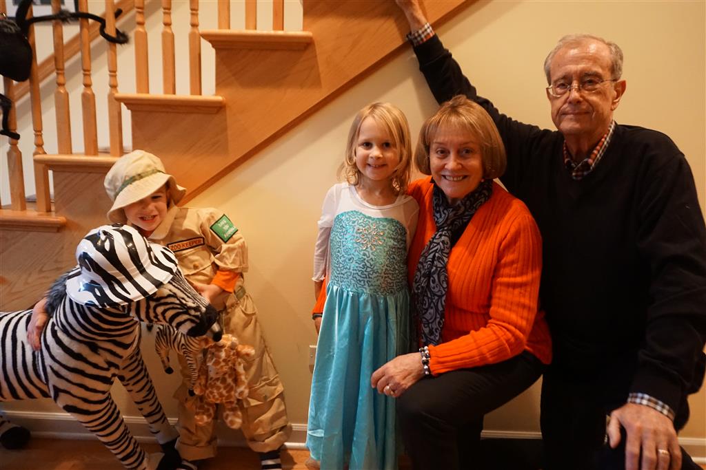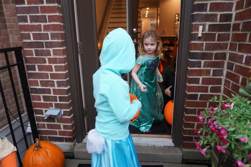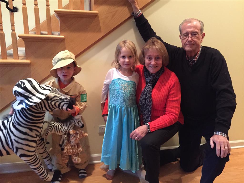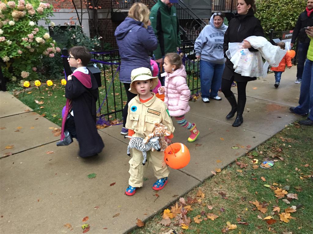 Eleanor and Henry were very excited for Halloween this week! We had a bonus as Grandma and Grandpa drove in so they could join in the fun! Eleanor dressed as Elsa, although she didn’t want to wear the wig that completed her costume. Henry was a zookeeper, and emphasized that he was going to take care of a giraffe and a zebra. On Friday Eleanor wore her costume to school and they had a parade around the block. Then, on Saturday we trick-or-treated in our friend Charlie and Tyler’s neighborhood again. The forecast was for rain and cold, but we got a break as the rain stopped just in time. This was the first year that Eleanor and Henry were both really into trick-or-treating, and we ended up hitting the whole block.
