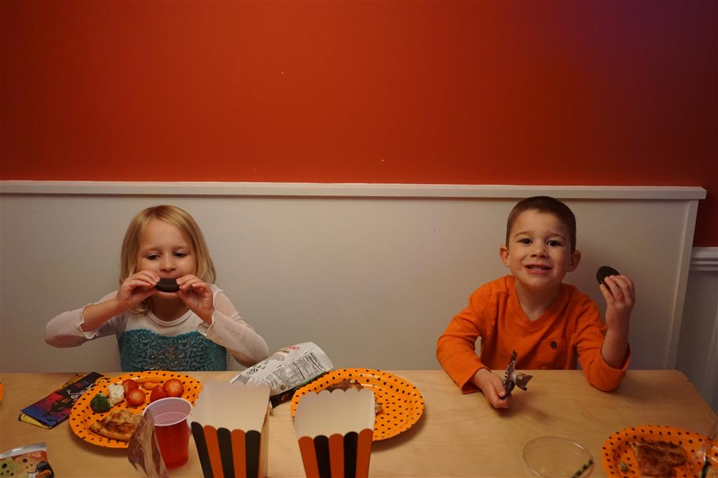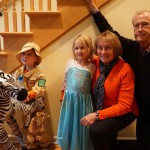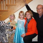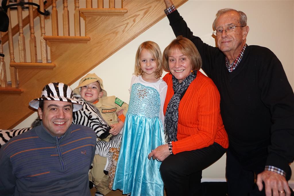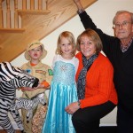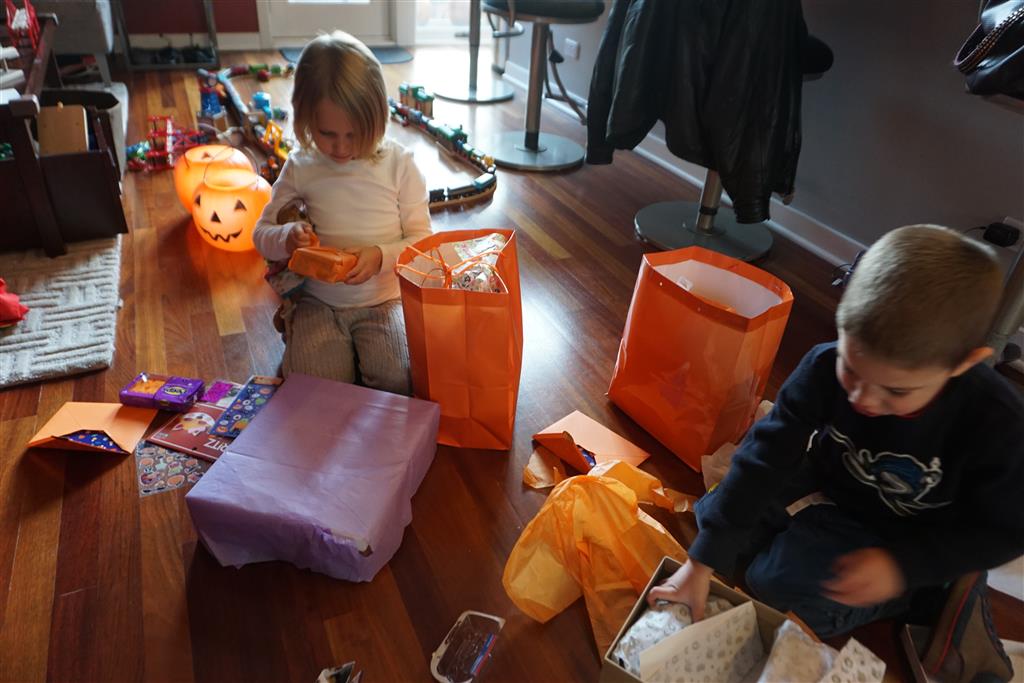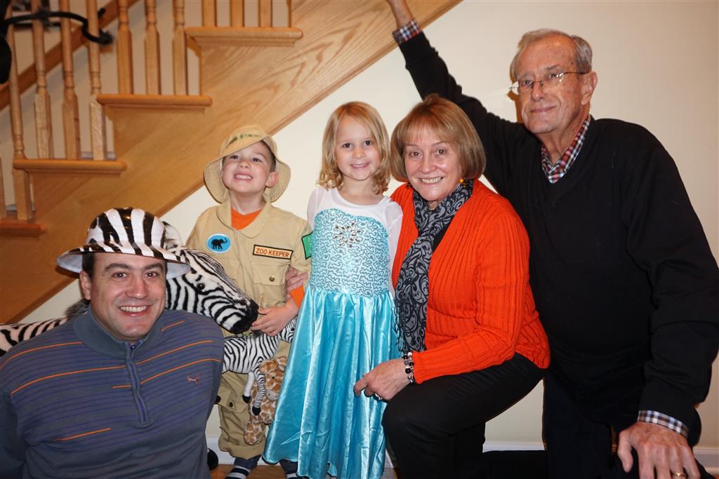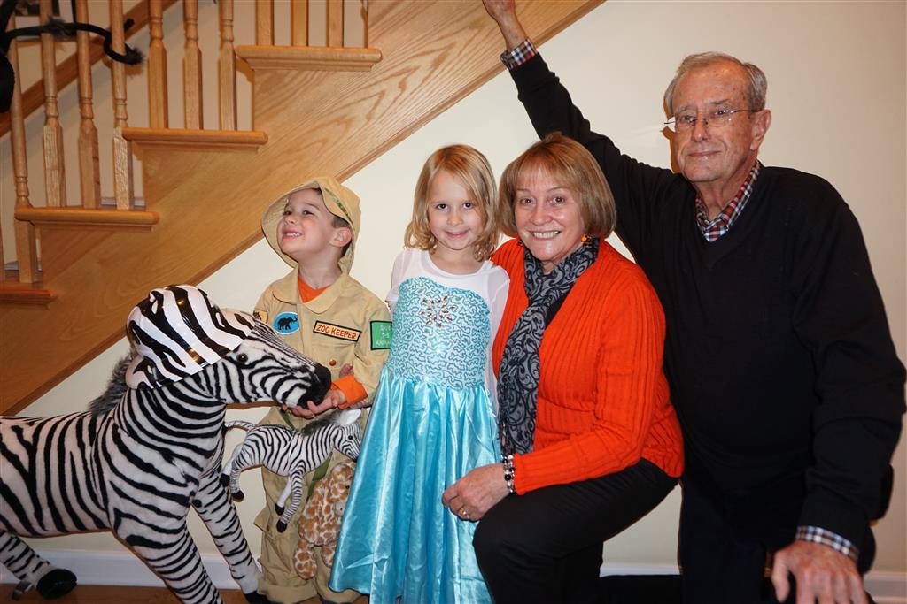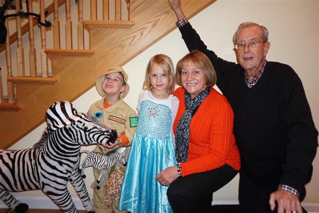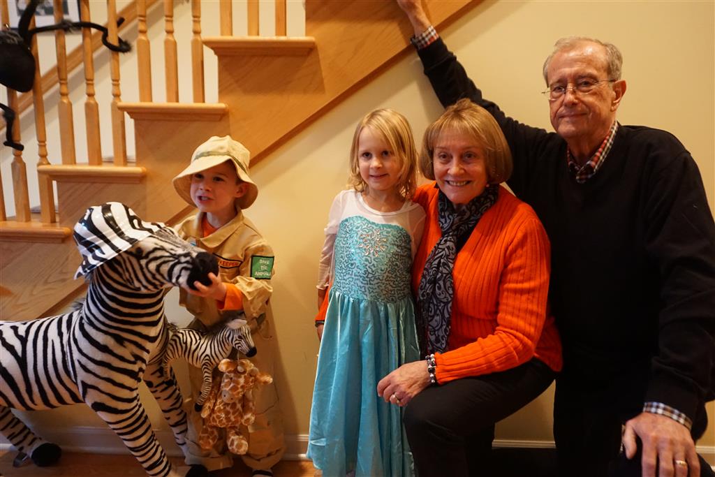 Eleanor and Henry were very excited for Halloween this week! We had a bonus as Grandma and Grandpa drove in so they could join in the fun! Eleanor dressed as Elsa, although she didn’t want to wear the wig that completed her costume. Henry was a zookeeper, and emphasized that he was going to take care of a giraffe and a zebra. On Friday Eleanor wore her costume to school and they had a parade around the block. Then, on Saturday we trick-or-treated in our friend Charlie and Tyler’s neighborhood again. The forecast was for rain and cold, but we got a break as the rain stopped just in time. This was the first year that Eleanor and Henry were both really into trick-or-treating, and we ended up hitting the whole block.