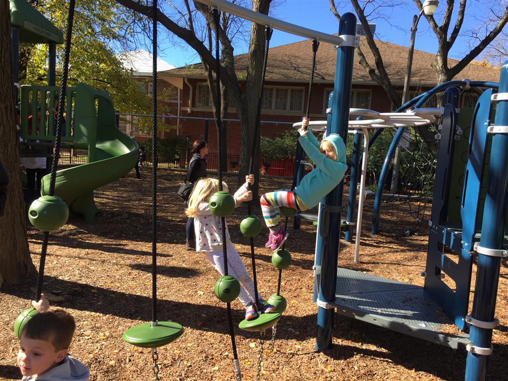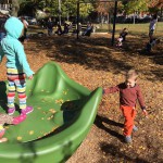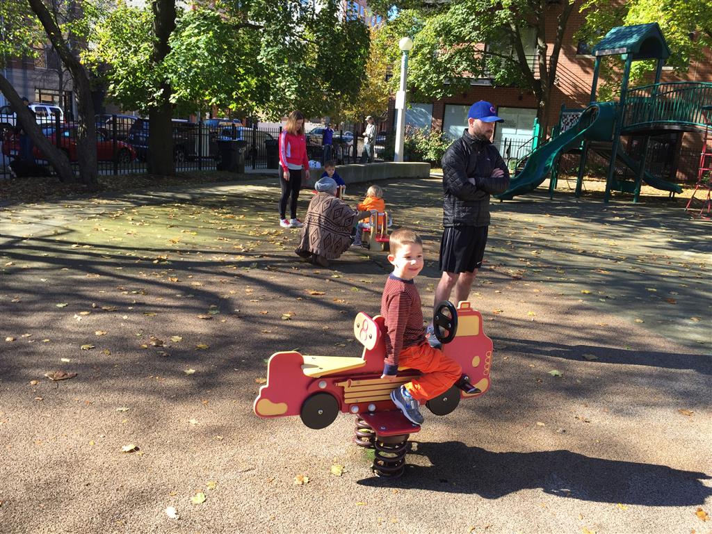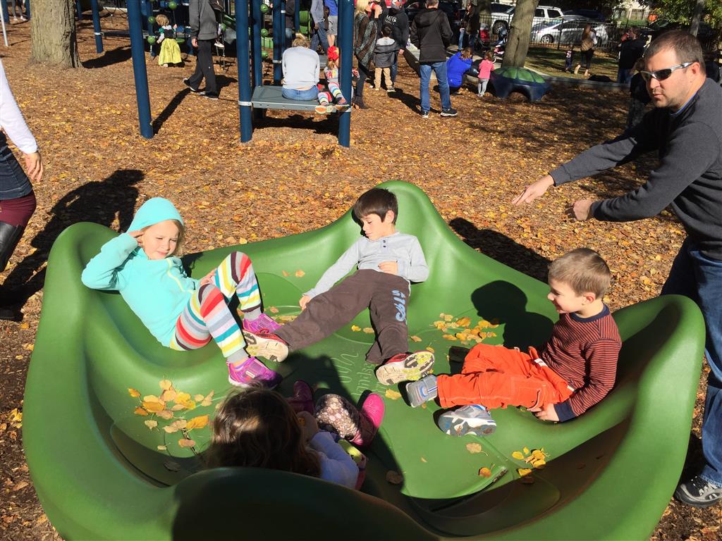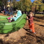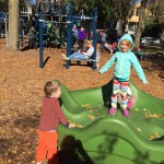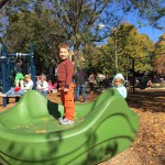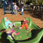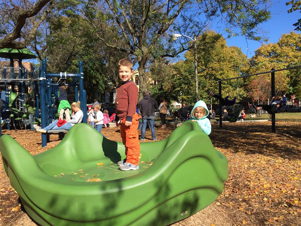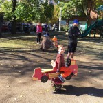 On Sunday we had breakfast with Grandma and Grandpa, and then hit a few parks, including one that we hadn’t been to before. Turns out it has an updated version of a merry-go-round, and the kids couldn’t get enough of it!