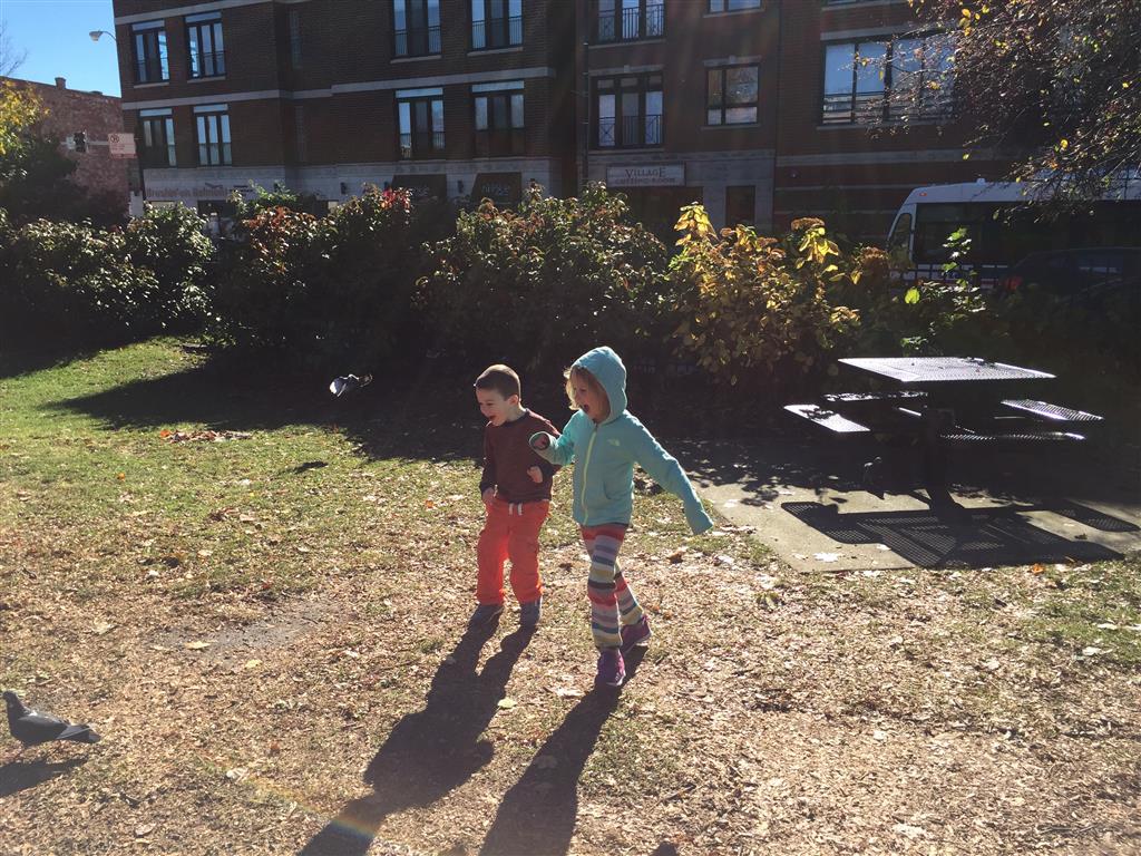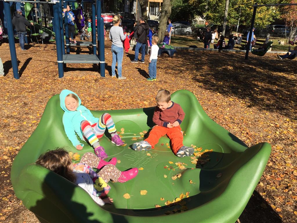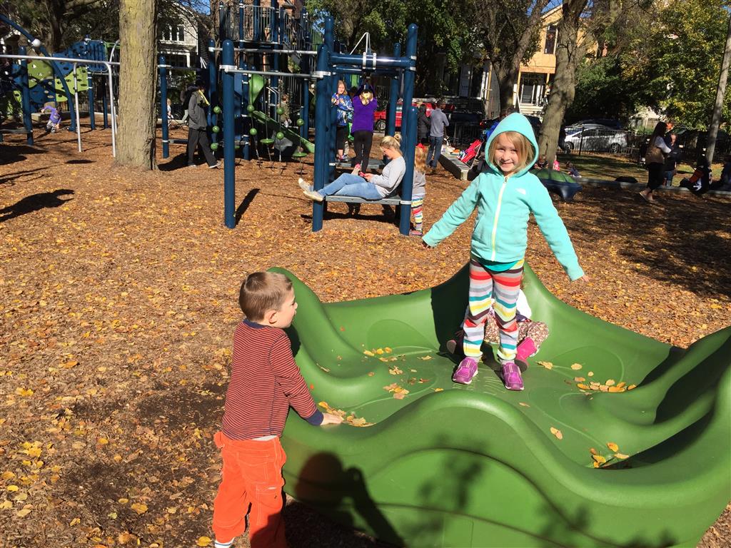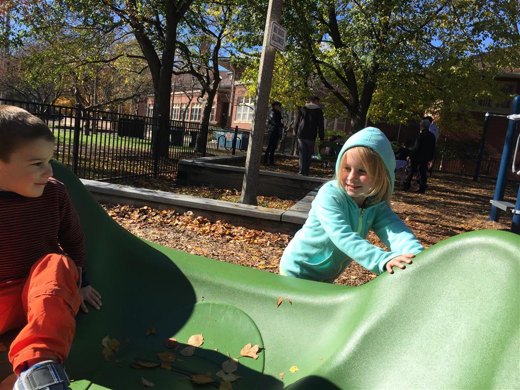 On Sunday we had breakfast with Grandma and Grandpa, and then hit a few parks, including one that we hadn’t been to before. Turns out it has an updated version of a merry-go-round, and the kids couldn’t get enough of it!