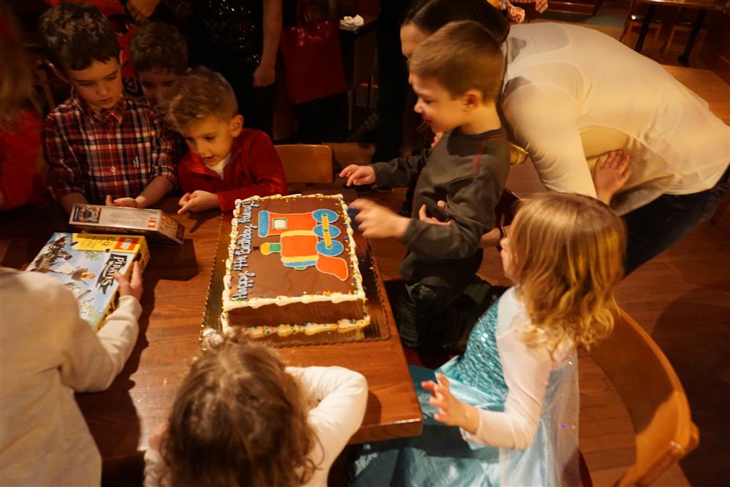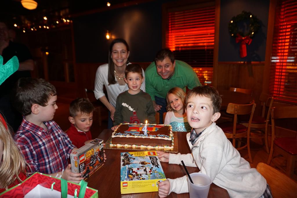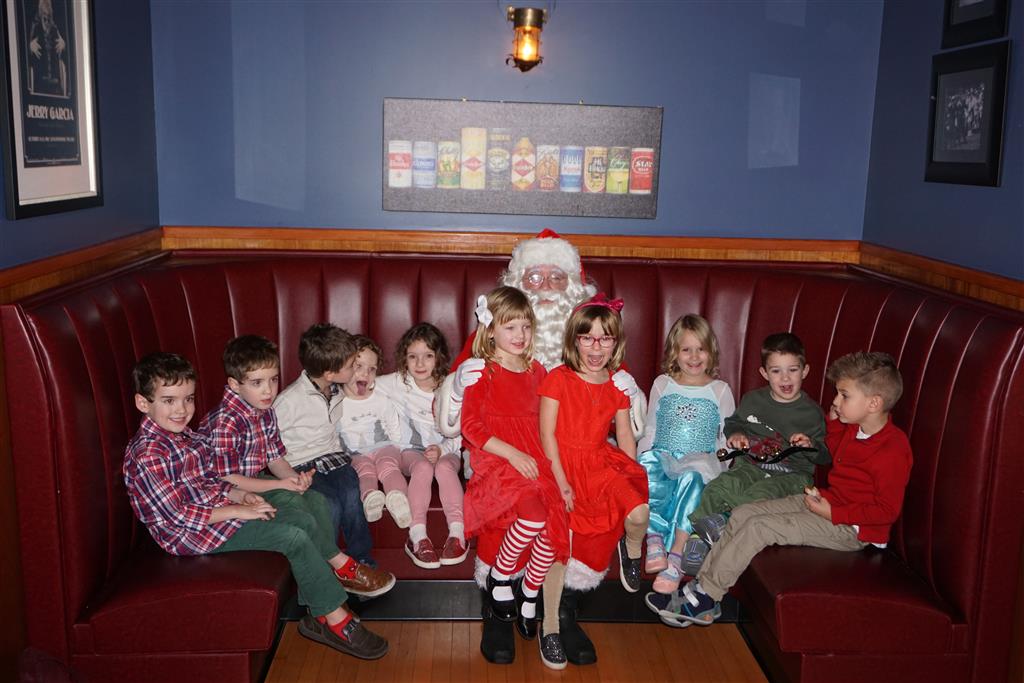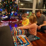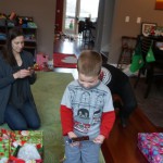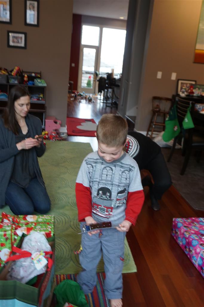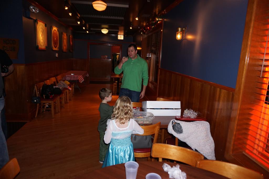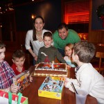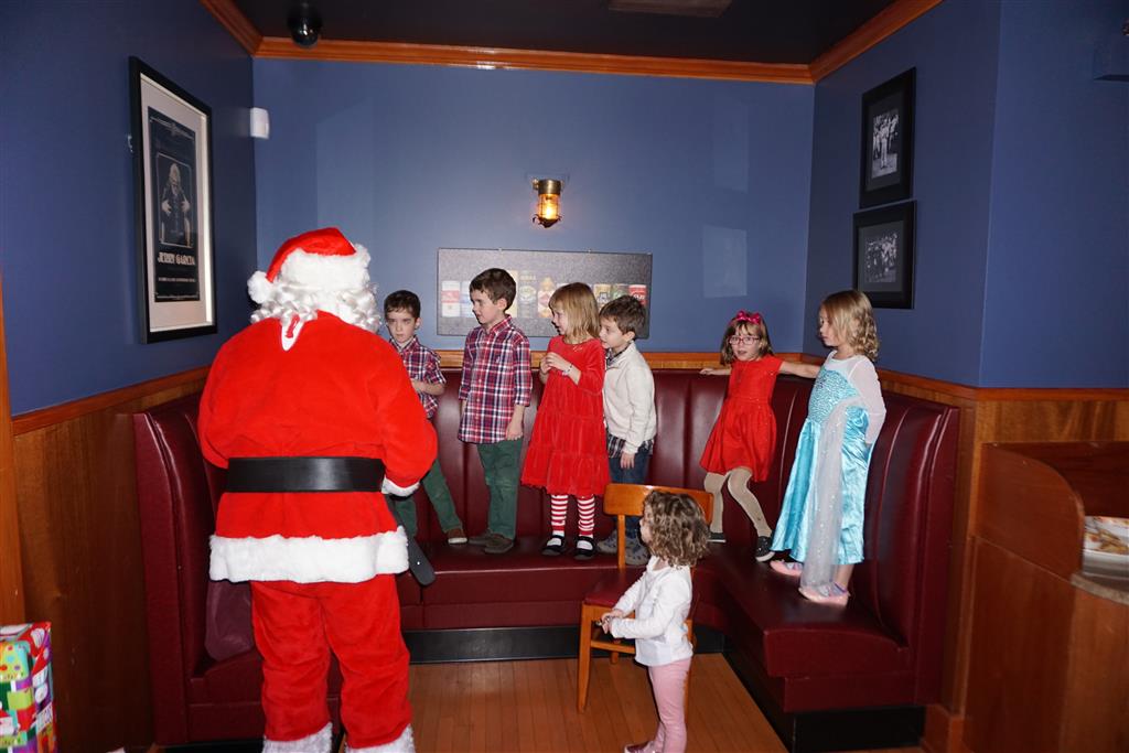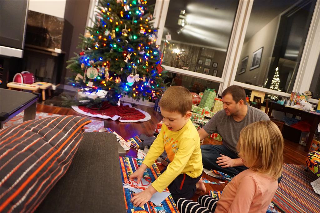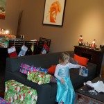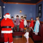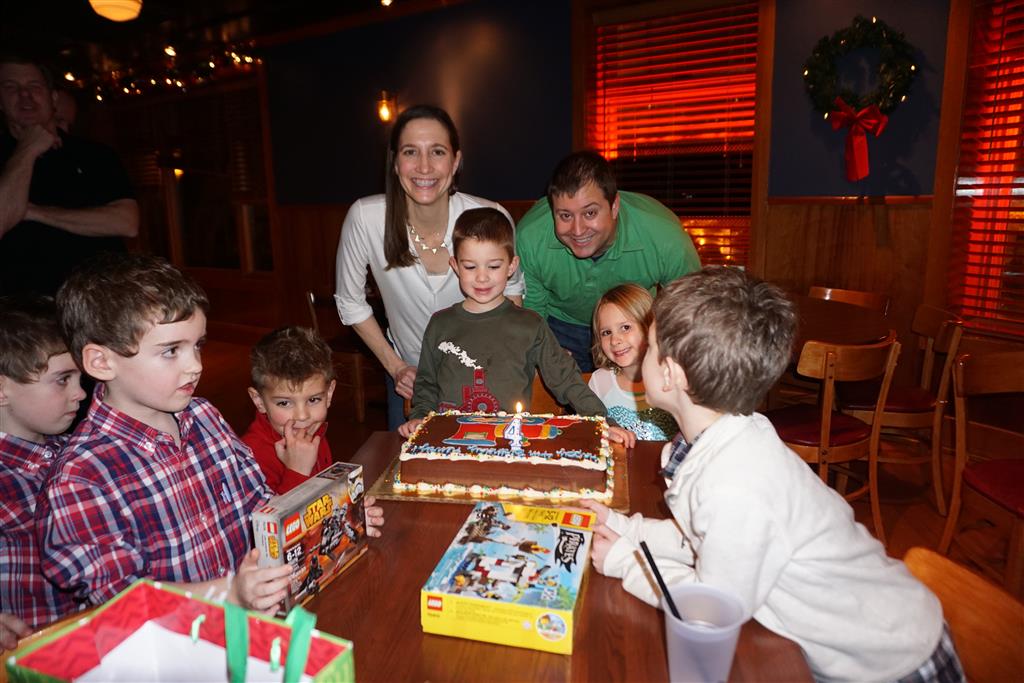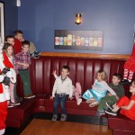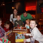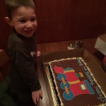 Grandma and Grandpa came into town this week to celebrate Henry’s Birthday and Christmas. Unfortunately, Henry was feeling a bit under the weather starting on Thursday, but he was a good sport and powered through. On Friday night we celebrated Henry’s birthday and ate pizza, and on Saturday we had our Christmas and traditional Chinese take out dinner :) We finished up the week with our Santa party on Sunday night. We had a cake for Henry’s birthday, and he was a little bummed at first because he thought this was going to be his birthday visit to Pump It Up, so when we got out of the car he said, “Wait, this isn’t Pump It Up…” so we had to assure him that the Pump It Up trip was still coming. Eleanor was excited to stand next to Santa, but didn’t want to tell him what she wanted – and Henry uncharacteristically wouldn’t even go stand next to Santa. I think he was too distracted thinking about eating his cake.