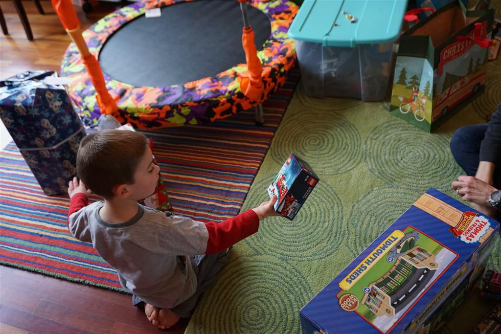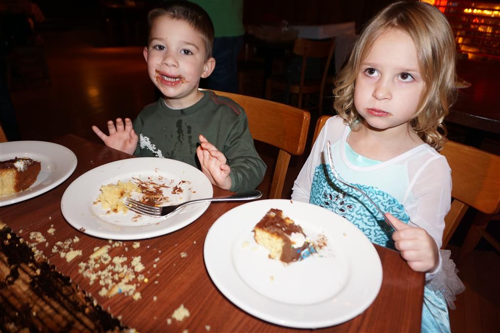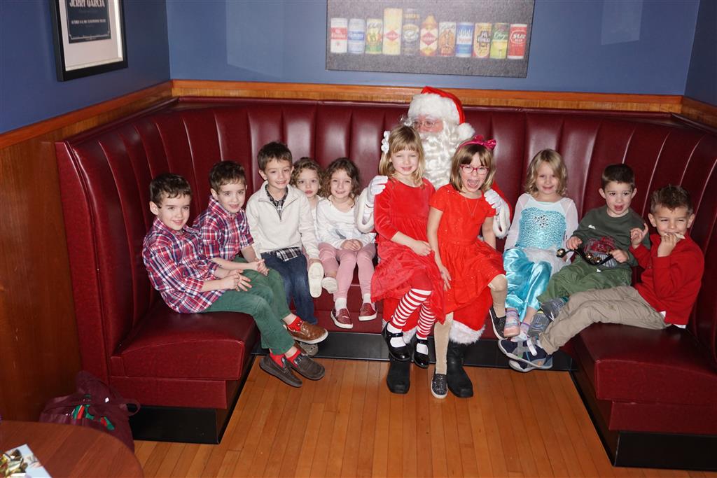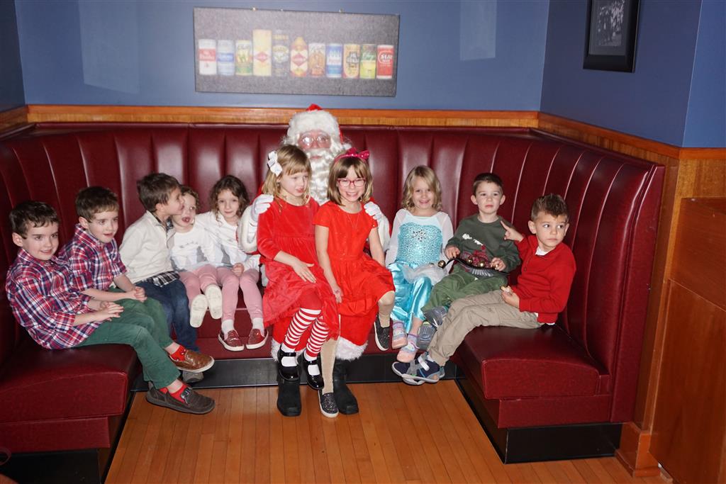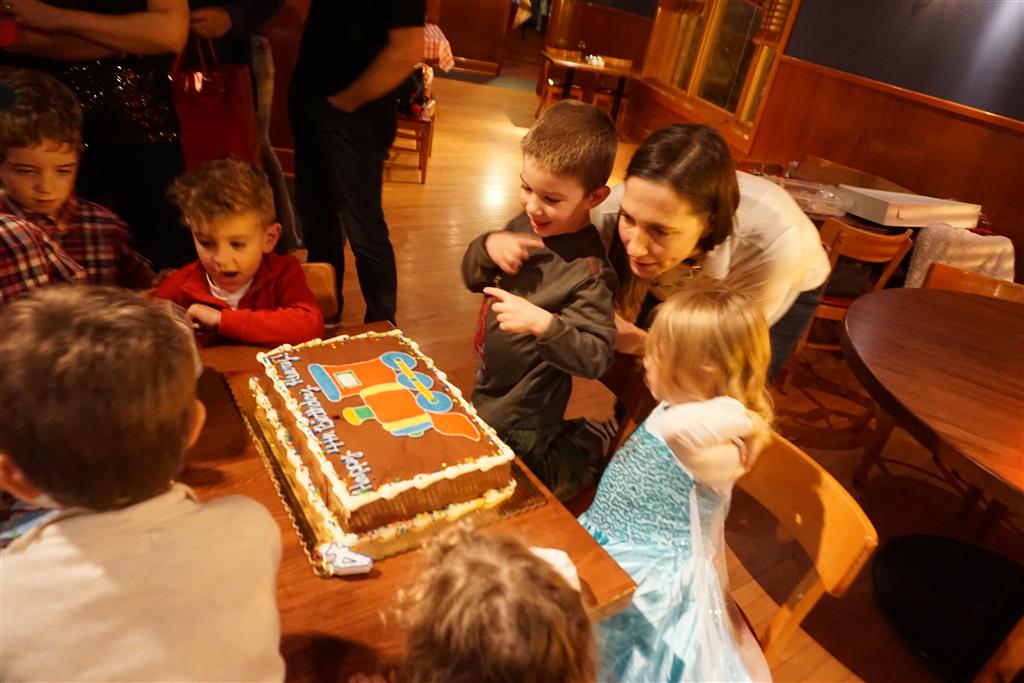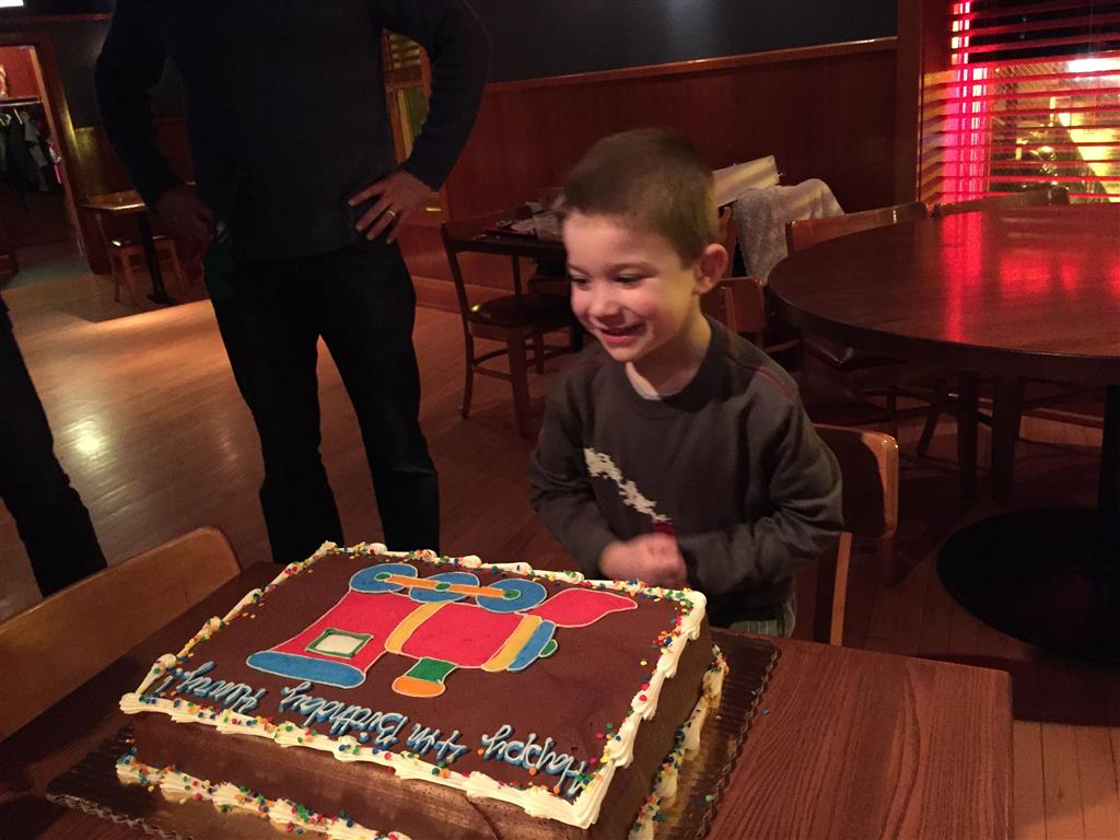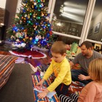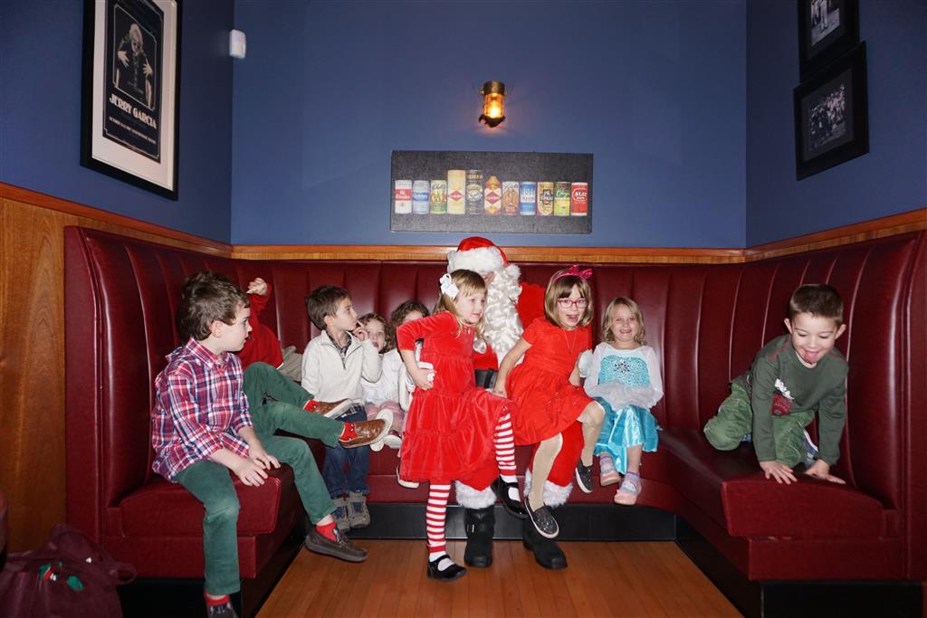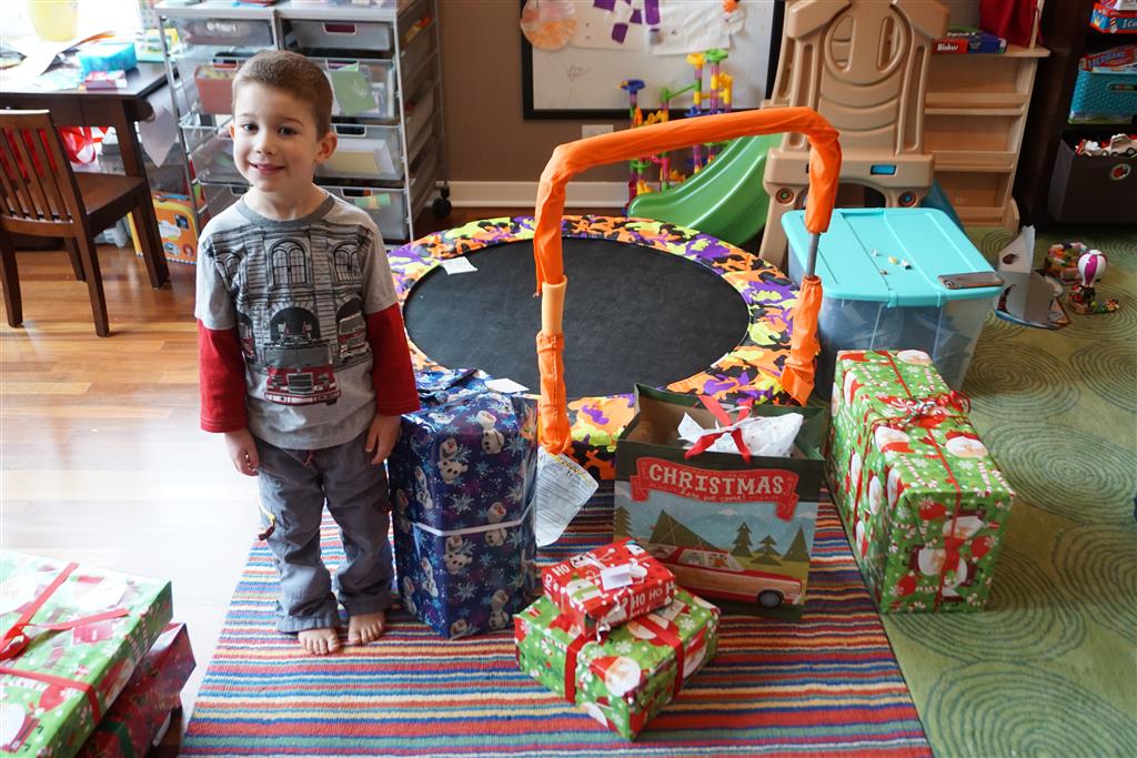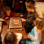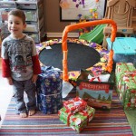 Grandma and Grandpa came into town this week to celebrate Henry’s Birthday and Christmas. Unfortunately, Henry was feeling a bit under the weather starting on Thursday, but he was a good sport and powered through. On Friday night we celebrated Henry’s birthday and ate pizza, and on Saturday we had our Christmas and traditional Chinese take out dinner :) We finished up the week with our Santa party on Sunday night. We had a cake for Henry’s birthday, and he was a little bummed at first because he thought this was going to be his birthday visit to Pump It Up, so when we got out of the car he said, “Wait, this isn’t Pump It Up…” so we had to assure him that the Pump It Up trip was still coming. Eleanor was excited to stand next to Santa, but didn’t want to tell him what she wanted – and Henry uncharacteristically wouldn’t even go stand next to Santa. I think he was too distracted thinking about eating his cake.