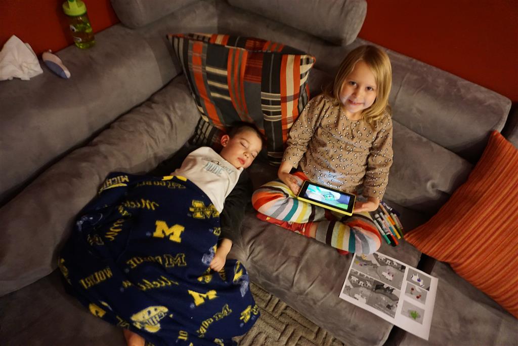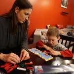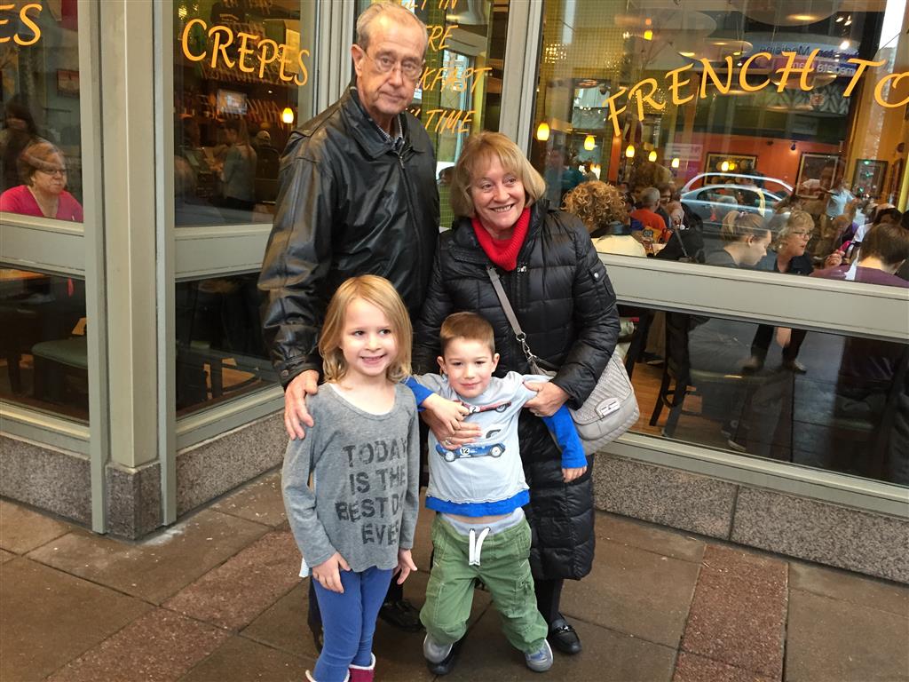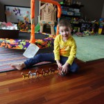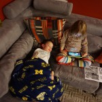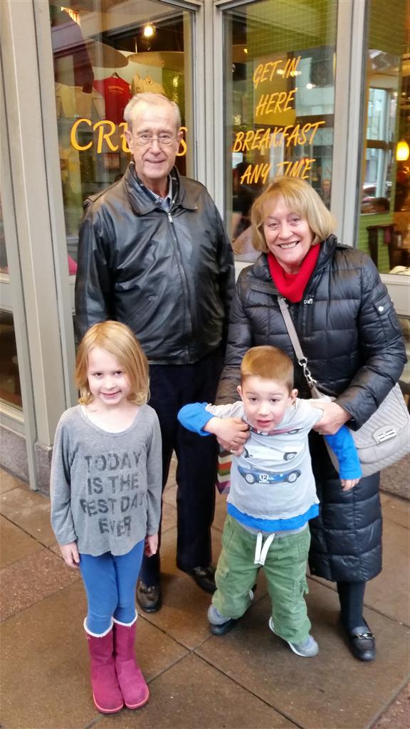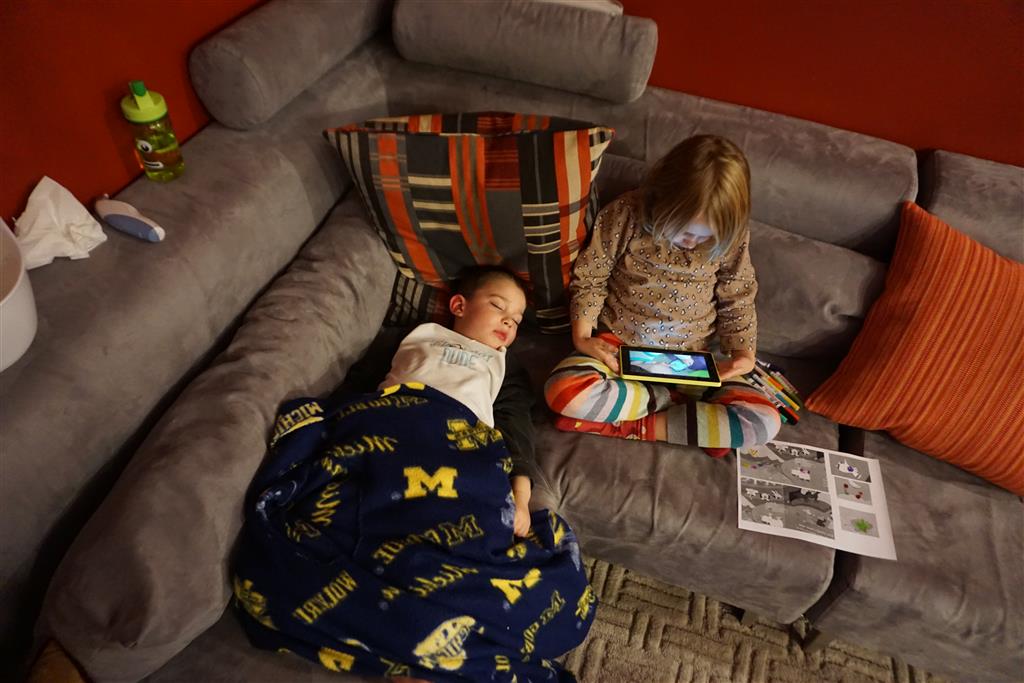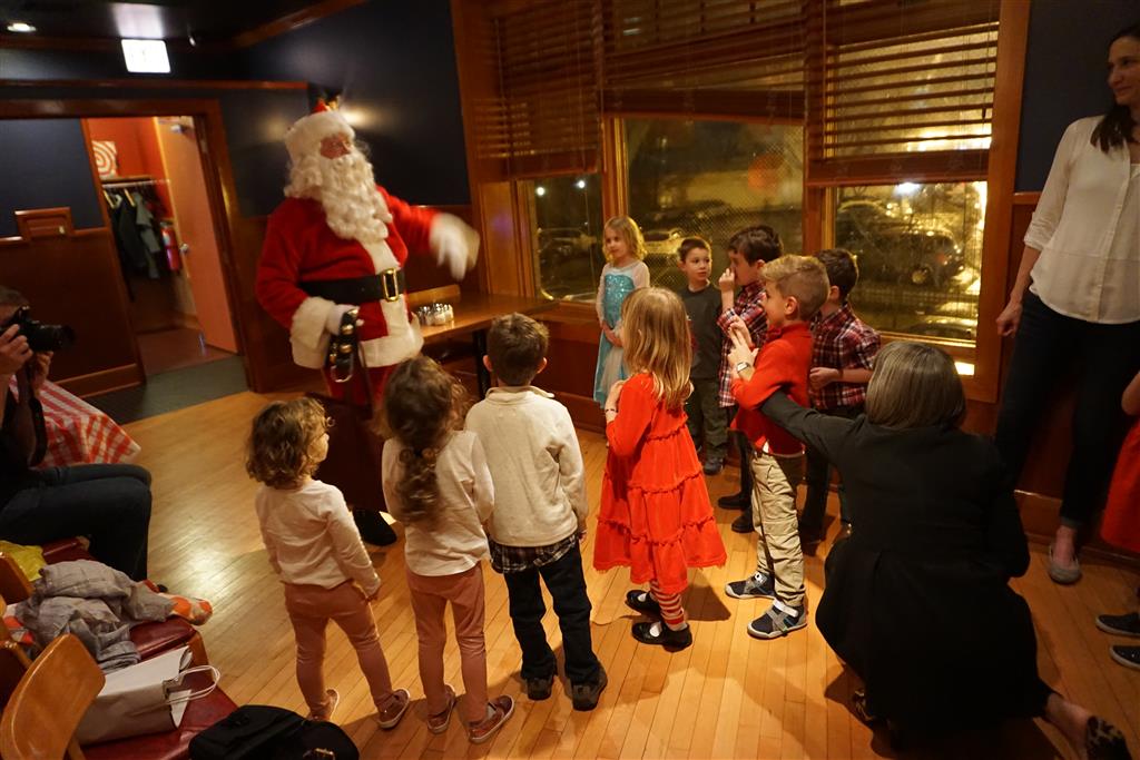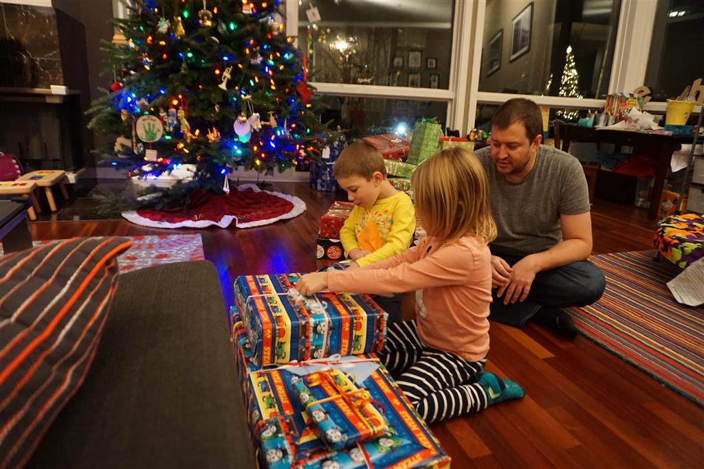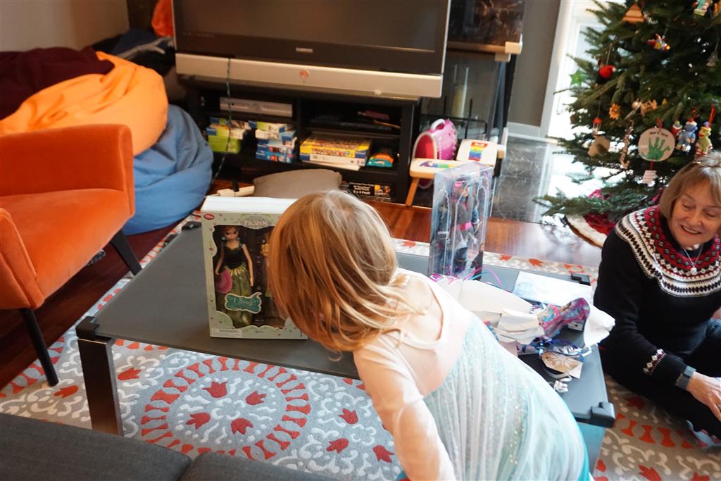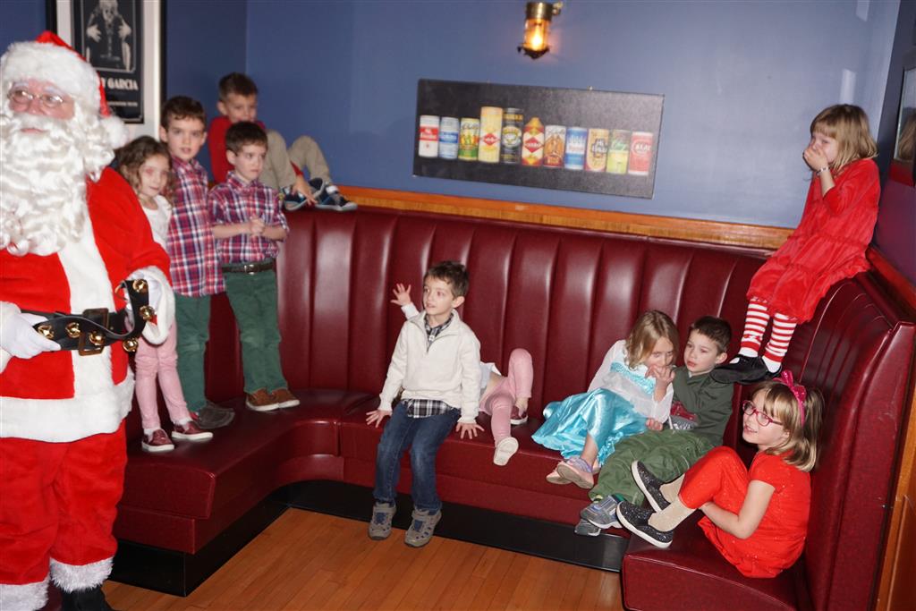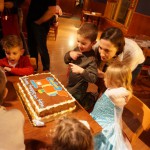 Grandma and Grandpa came into town this week to celebrate Henry’s Birthday and Christmas. Unfortunately, Henry was feeling a bit under the weather starting on Thursday, but he was a good sport and powered through. On Friday night we celebrated Henry’s birthday and ate pizza, and on Saturday we had our Christmas and traditional Chinese take out dinner :) We finished up the week with our Santa party on Sunday night. We had a cake for Henry’s birthday, and he was a little bummed at first because he thought this was going to be his birthday visit to Pump It Up, so when we got out of the car he said, “Wait, this isn’t Pump It Up…” so we had to assure him that the Pump It Up trip was still coming. Eleanor was excited to stand next to Santa, but didn’t want to tell him what she wanted – and Henry uncharacteristically wouldn’t even go stand next to Santa. I think he was too distracted thinking about eating his cake.