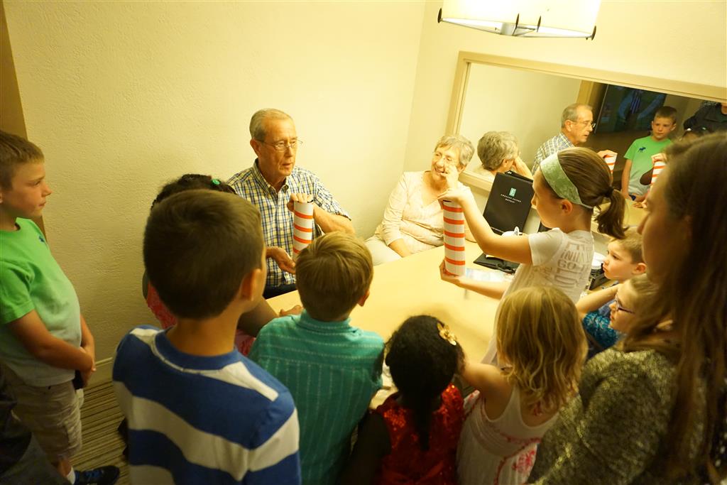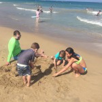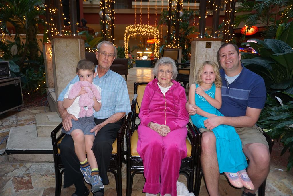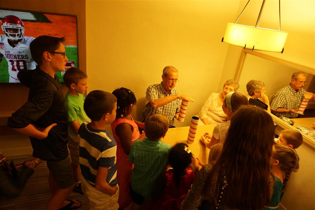 We also had a fun time at the beach – both kids enjoyed building sand castles and playing don’t get your toes wet with the waves. Henry didn’t get too far into the ocean, but Eleanor let me take her out once pretty deep. Unfortunately, my timing was poor and we hit some of the biggest waves of the day, and she was quickly asking to head back to the beach. We did enjoy a nice beach side lunch, and Eleanor tried her first fried mozzarella stick (surprisingly, it wasn’t a big hit). Grandpa’s magic show capped off the trip, and the kids were excited to see some of the tricks that we gave him for his birthday on display.