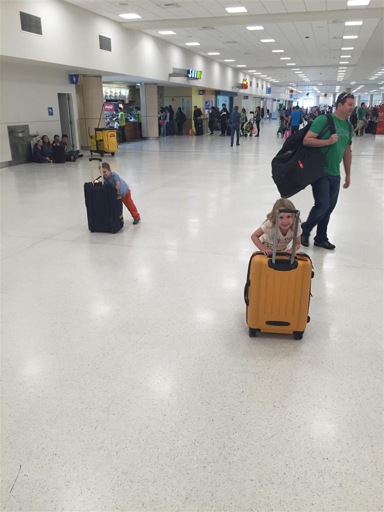 Eleanor and Henry enjoyed a week of fun in the sun in Puerto Rico with our family. The pool was a big hit, and is where we spent most of our days – although the window of our hotel room was a close second, we were on the 8th floor and had a fantastic view of planes landing at the airport – they came in almost level with the window on final approach. Both kids were fantastic travelers, they watched Paw Patrol, Frozen and Thomas the Train just about the whole way there and back. They were also great help pushing the luggage through the airport.