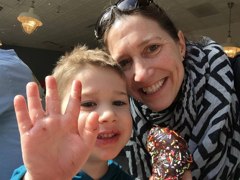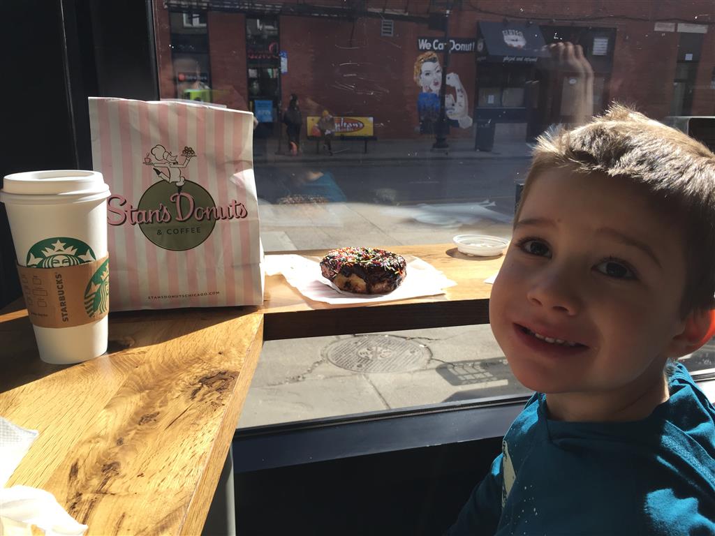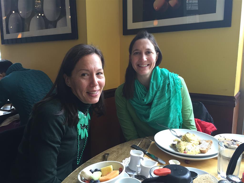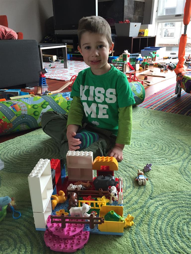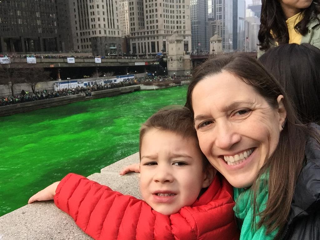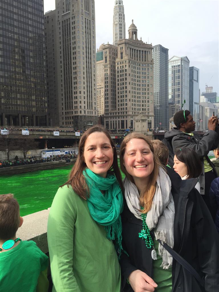 Eleanor and Henry celebrated St. Patrick’s Day this week by going downtown for the annual river dyeing. Henry was really excited to go again, but Eleanor wasn’t as excited. Turns out, she likes seeing the river green, but doesn’t like “all the waiting”. Fair enough. We had very nice weather for the morning, and were able to work our way up to the front row in time to see the actual dyeing. Eleanor also got to play the base drum for the Irish band that was playing nearby! This year was a little earlier than normal, so we decided to do breakfast after instead of before, which worked out nicely.