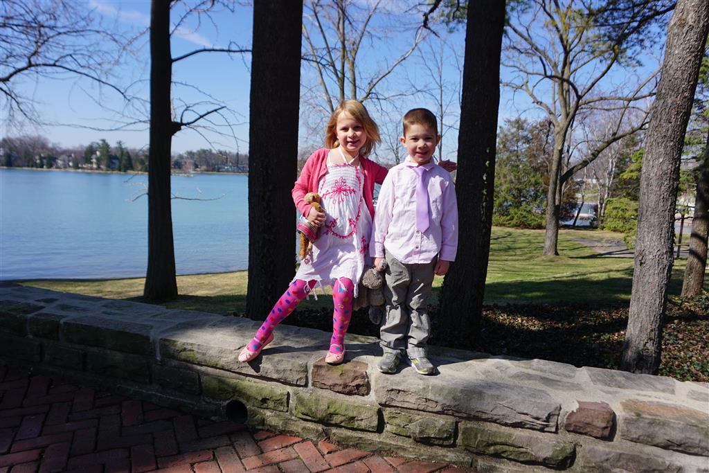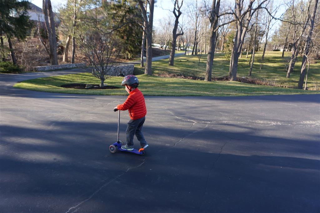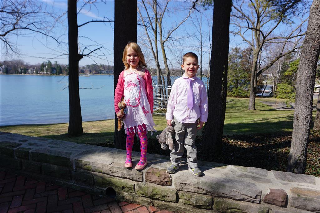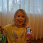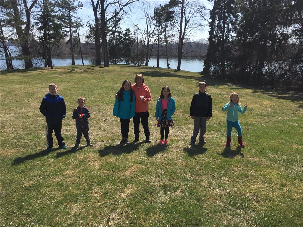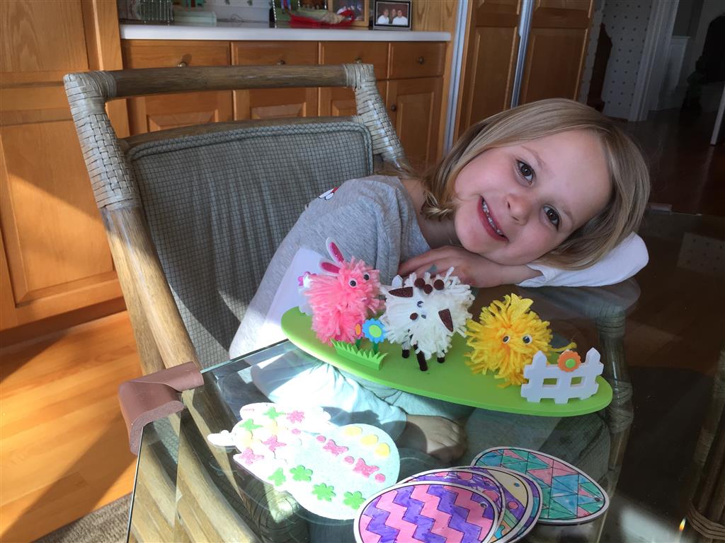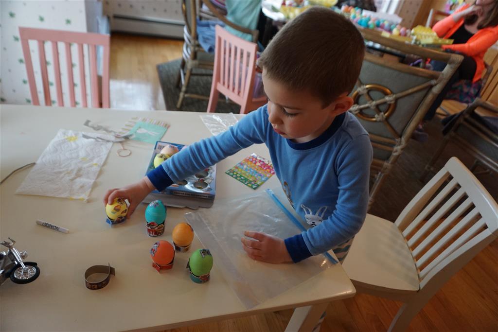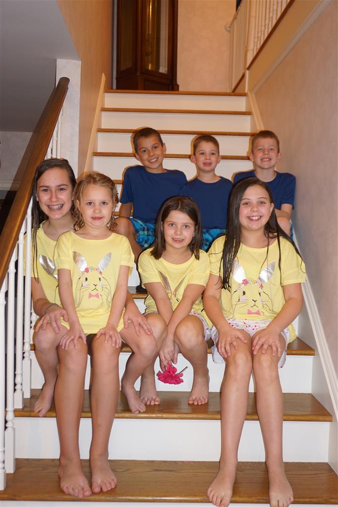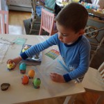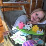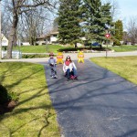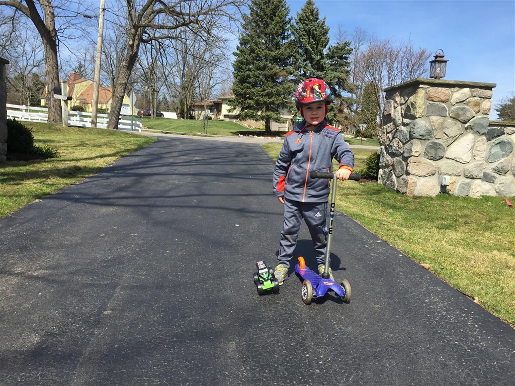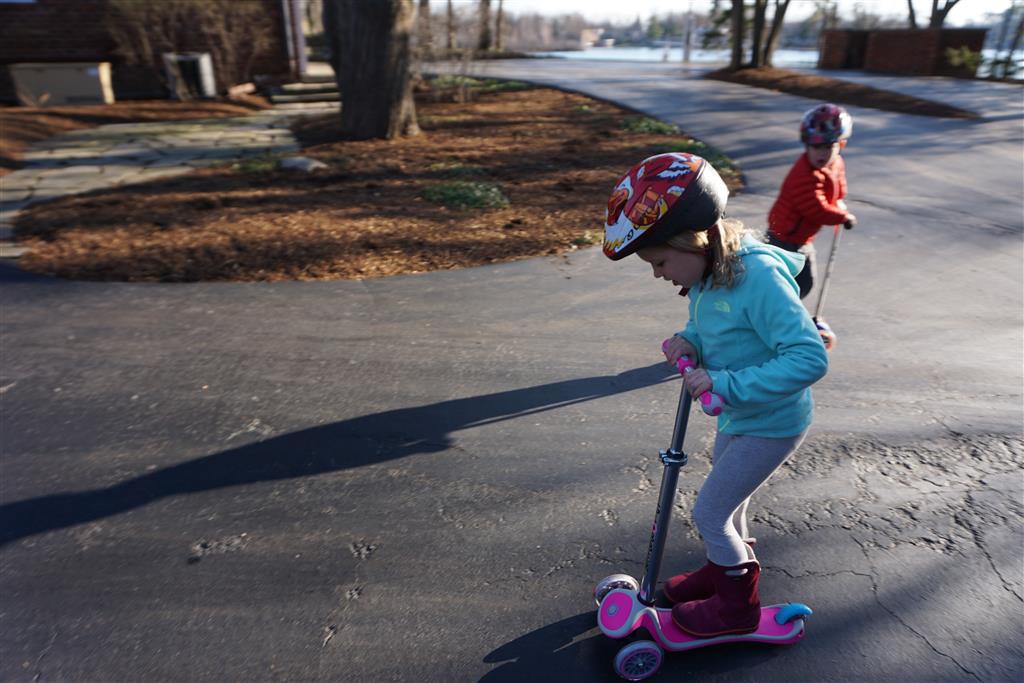 Eleanor and Henry had a blast visiting Grandma and Grandpa’s house for Easter. Cousins Mackenzie, Jack, Ben, Mahlia and Brooke all came as well to make it a fun full house. We had lots of fun doing crafts and dying Easter eggs, as well as launching some rockets and riding various wheeled machines up and down the driveway. We had just gotten a second scooter so that Eleanor and Henry could both ride at the same time, and it turned out to be perfect timing. Henry took off just as Dad finished putting his helmet on and went, in Dad’s opinion, way too fast down the first section of driveway. Stopping to Dad’s “Slow Down Henry!” calls, he looked back like “what’s wrong?” and from that point on Henry was a fearless speed demon on the scooter. He routinely was the fastest one down the hill and would even peddle with one foot down the hill to go faster. Both kids really improved their scooter skills in just a few days of riding. It was really fun to see all the cousin bonding that went on – on the last night, Easter Eve if you will, Eleanor did a sleepover with Mackenzie, Mahlia and Brooke, and Henry did a sleepover with Jack and Ben. There wasn’t a lot of actual sleeping, but boy did they have fun!