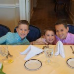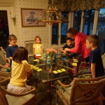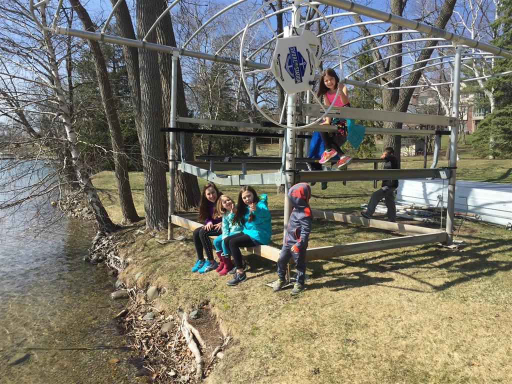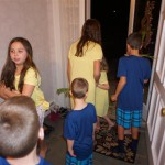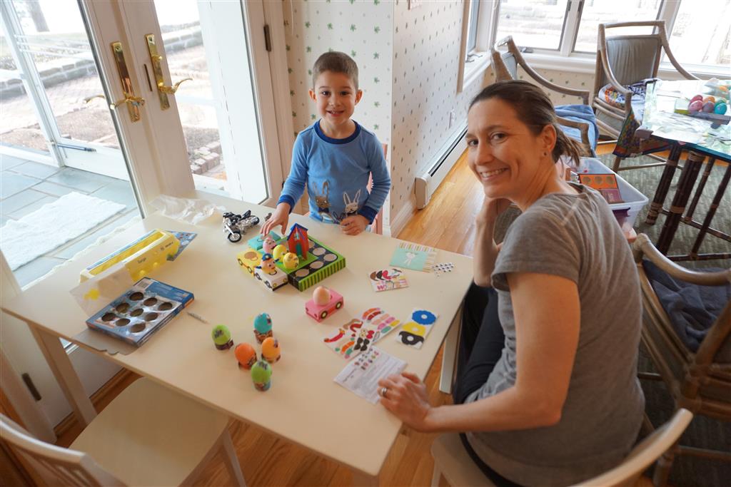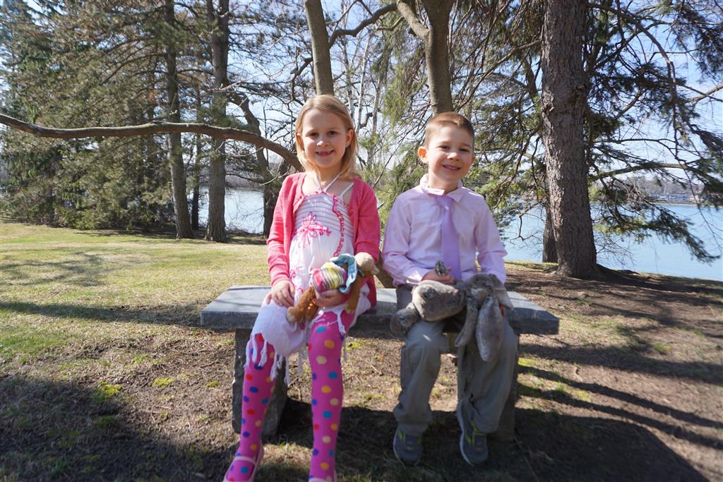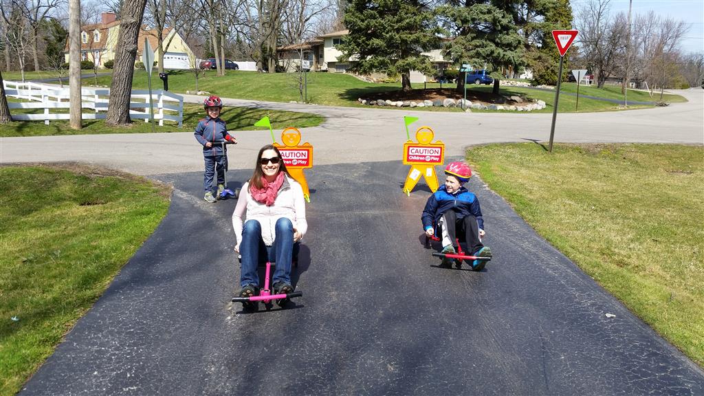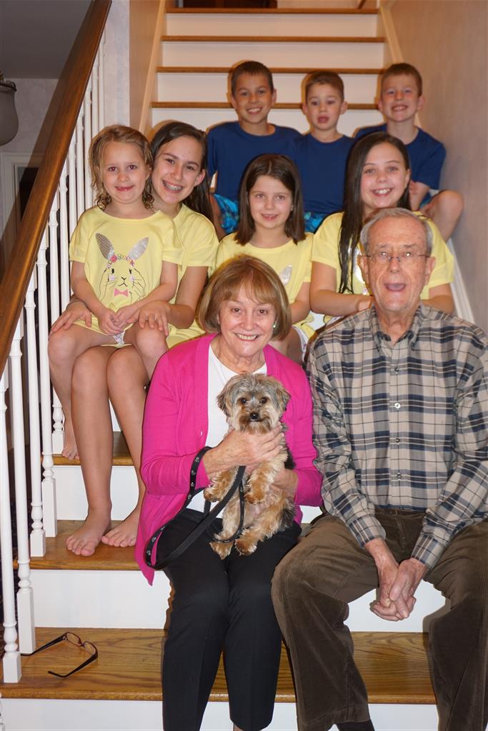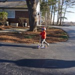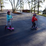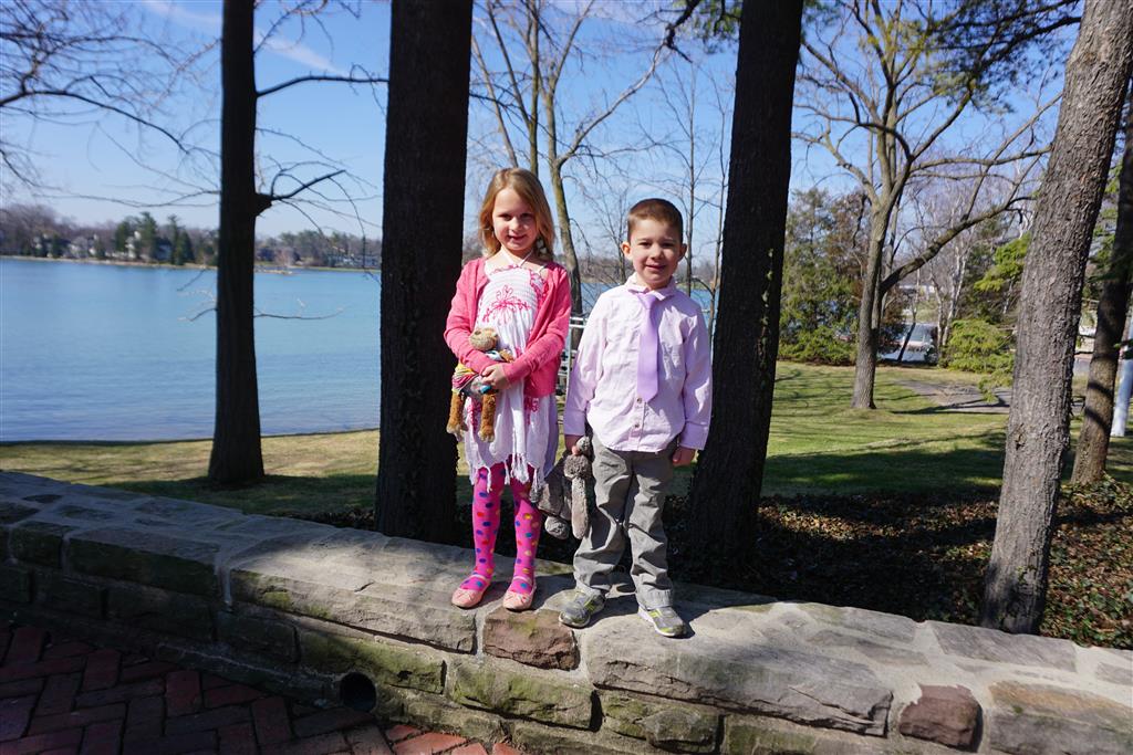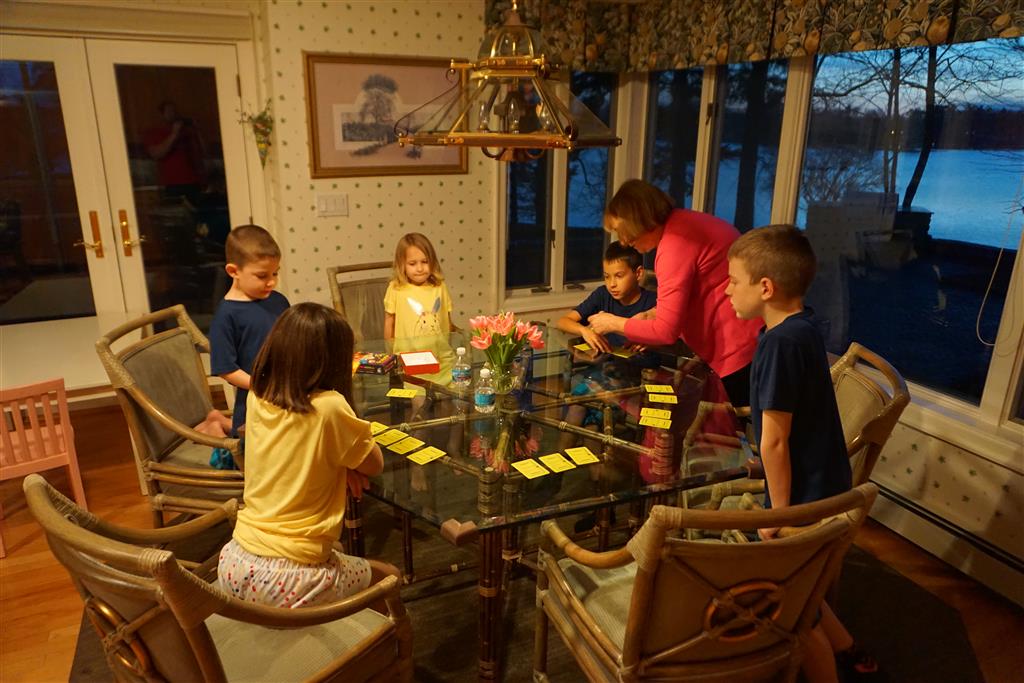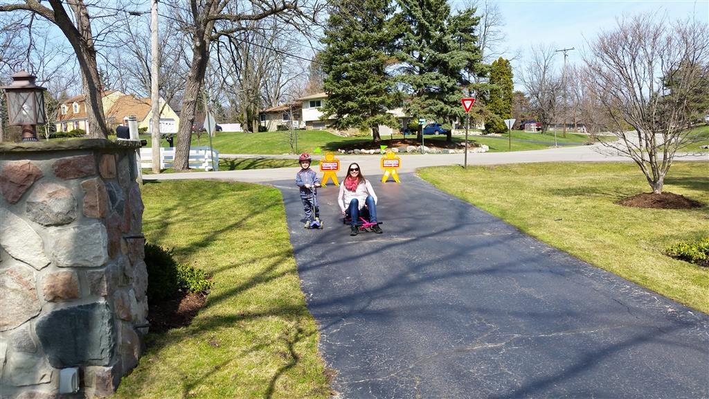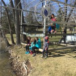 Eleanor and Henry had a blast visiting Grandma and Grandpa’s house for Easter. Cousins Mackenzie, Jack, Ben, Mahlia and Brooke all came as well to make it a fun full house. We had lots of fun doing crafts and dying Easter eggs, as well as launching some rockets and riding various wheeled machines up and down the driveway. We had just gotten a second scooter so that Eleanor and Henry could both ride at the same time, and it turned out to be perfect timing. Henry took off just as Dad finished putting his helmet on and went, in Dad’s opinion, way too fast down the first section of driveway. Stopping to Dad’s “Slow Down Henry!” calls, he looked back like “what’s wrong?” and from that point on Henry was a fearless speed demon on the scooter. He routinely was the fastest one down the hill and would even peddle with one foot down the hill to go faster. Both kids really improved their scooter skills in just a few days of riding. It was really fun to see all the cousin bonding that went on – on the last night, Easter Eve if you will, Eleanor did a sleepover with Mackenzie, Mahlia and Brooke, and Henry did a sleepover with Jack and Ben. There wasn’t a lot of actual sleeping, but boy did they have fun!