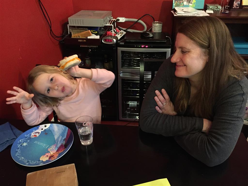 During the week, Eleanor continued her interest in Star Wars, and decided that she wanted to put her hair into a “Princess Leia” style. Mom did her best to recreate the crazy ear buns, and Dad thought the results were quite impressive. However, Eleanor was less impressed and she told Mom, “I took them out, it didn’t look the same.” We also had Eleanor’s teacher conferences, and received a positive assessment with Eleanor showing lots of progress across the board. Her reading is really starting to come along now – and she is getting more and more excited about it.