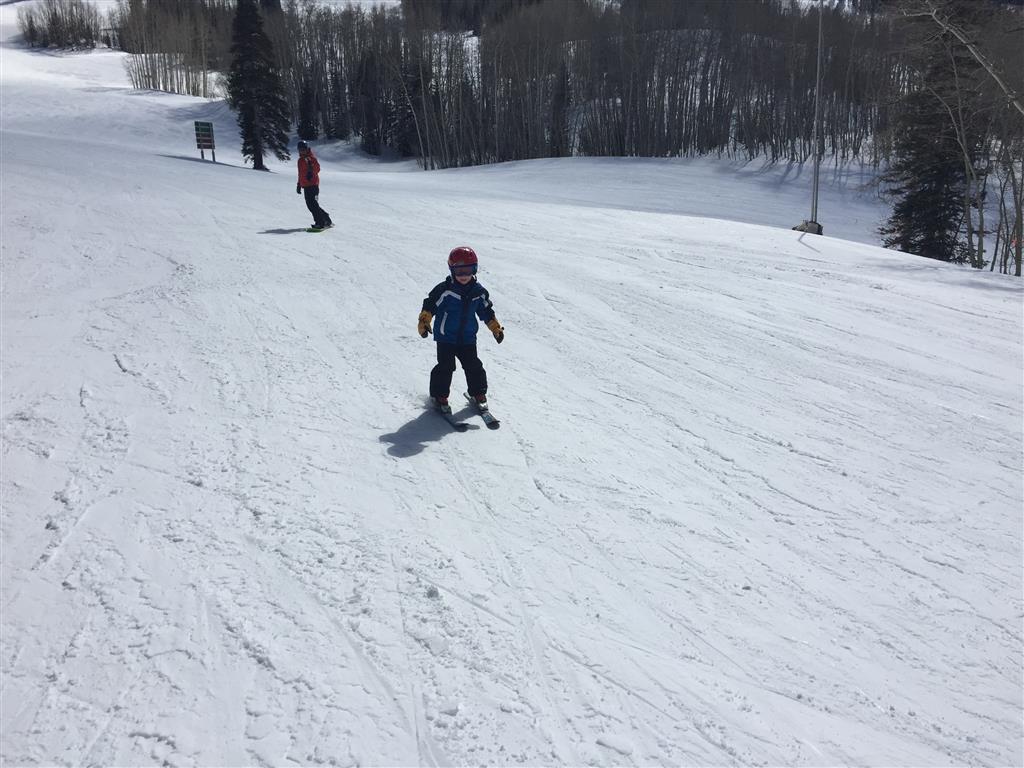Henry and Eleanor took a spring break trip out to Aspen for some skiing. They are really at different levels now, so we decided to put them in separate classes at ski school. Eleanor was pretty bummed at first that she wouldn’t be with Henry, but after the first day she was really excited about the new skills she was learning and the new runs she was exploring. By the third day, she wanted to take Mom and Dad up the chairlift after class and lead us back down the mountain. Henry was progressing really well also, so the whole family headed up the chairlift. Eleanor took us down the mountain like a champ, but it was still a bit much for Henry, and it took both Mom and Dad working together to help get him down the trail. By the end of the next day, Henry had been up the lift with his class, so we decided to try it again. The difference in Henry’s confidence just from that additional day was incredible, he was now working his way down the slope unassisted. Eleanor was leading us a “new way” down, which was working great until Henry missed a turn, went over a crest and started careening down a blue run. By the time Dad caught up and started down, Henry was half way to the bottom in a “super pizza” wedge formation. He scared Mom and Dad half to death, but managed to make it down the run without falling and came to a stop at the bottom. When Dad caught up to him, he seemed unconcerned with what had happened, and was ready to continue down the run. Dad wasn’t quite as sure, and kept a close rein on him the rest of the way down. All in all, it was a very successful trip, and both kids really improved their skiing ability. One funny story – this year we rented a place on the mountain, so that we could ski right from our unit down to the bottom of the ski lift. We decided to give this a try the third day since we were skiing with the kids at the end anyway, and it worked out great. However, in the morning, Eleanor said she was “Really embarrassed” to ski down to the lift – I think she thought that we were breaking the rules! We didn’t hit the town as much as we have in past years, mostly because the kids were pretty wiped out after a full day of skiing, so we didn’t make it to many of our favorite eateries – Little Annie, Jimmy’s or Woody Creek Tavern, but we did manage to stop in at Asie for some yummy Chinese. Oh yeah, and Eleanor lost another tooth! Luck for Mom and Dad, she was content to wait until we got home to put it out for the Tooth Fairy.