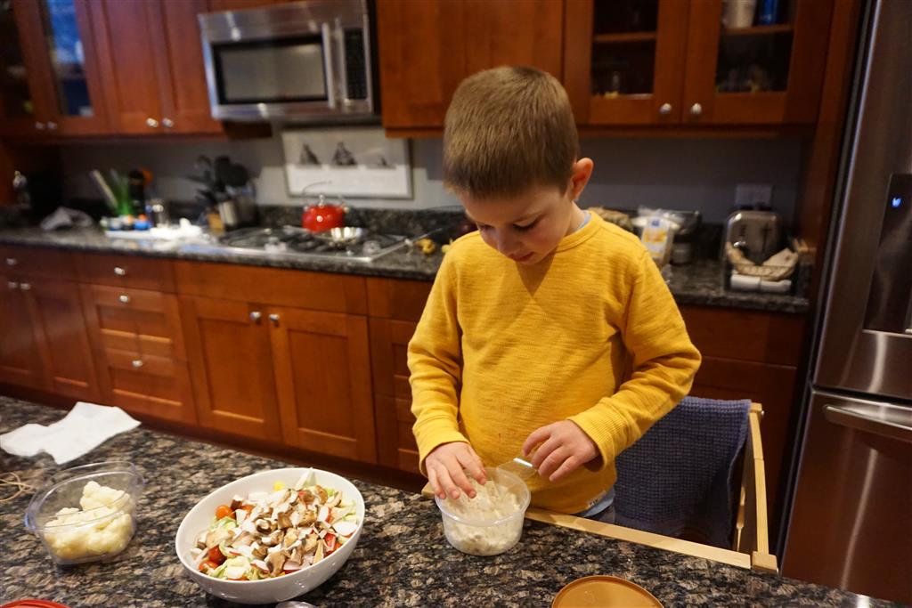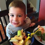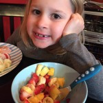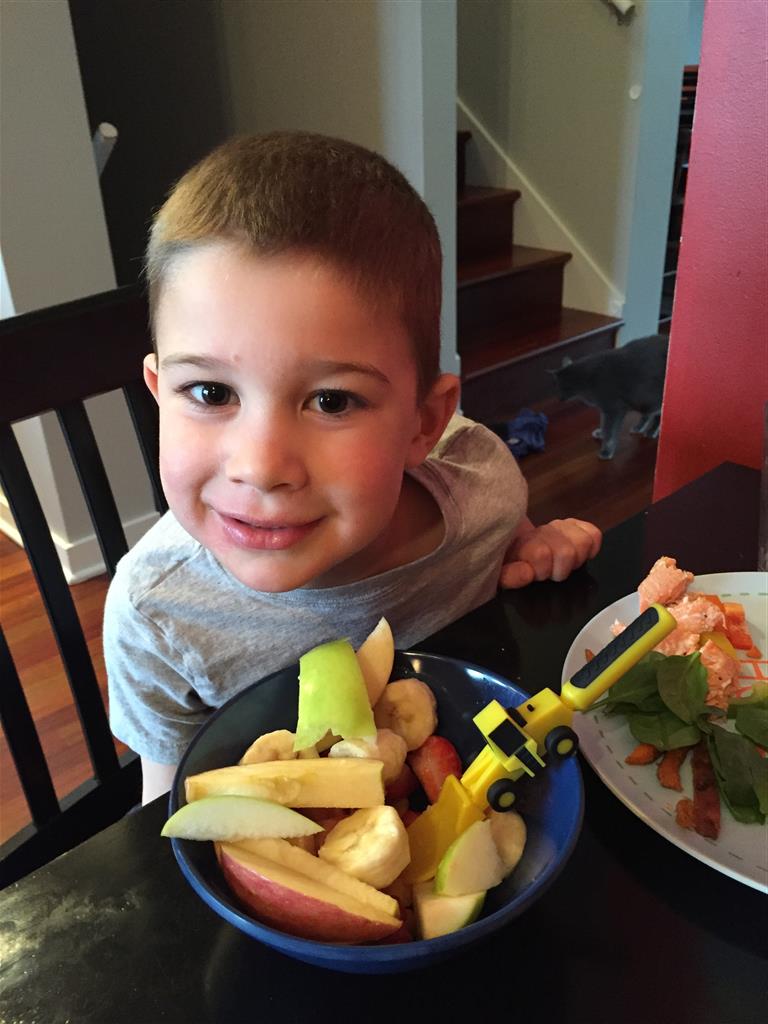 During the week, Eleanor graduated to the next level in swimming class, which was pretty exciting. The next level does a double wide lane and the kids swim full laps back and forth. Henry impressed Mom and Dad by putting a lego set (small size, not Duplo) together all by himself! Also during the week, Eleanor randomly announced that she wanted to make a fruit salad, and both kiddos ended up making their own creations – picking out each item they wanted, washing it, and cutting it up into their bowls. Which explains the otherwise strange picture of each next to a random bowl of fruit :)
