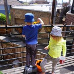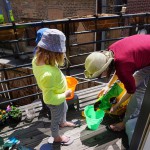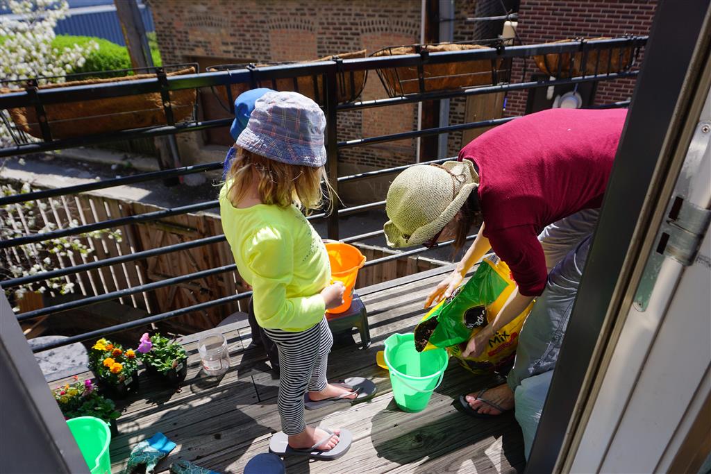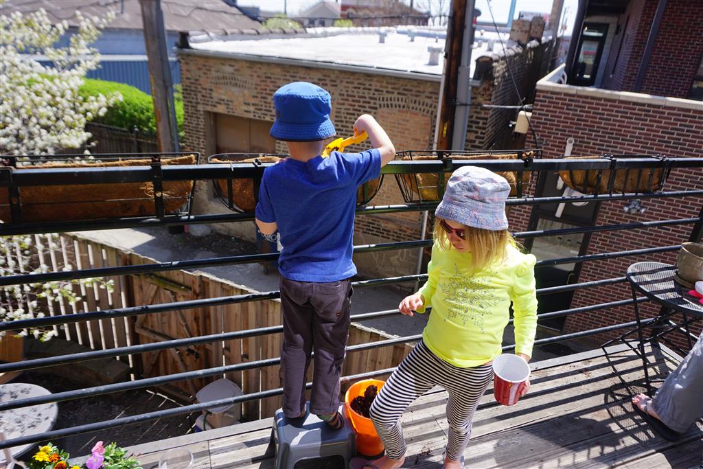 This week was our households first week in almost 6 years with no diapers! Henry started sleeping without a diaper on Monday and hasn’t had an accident yet. Go Henry! Mom and Dad are super excited to be done with diapers – and celebrated taking off the changing pad attachment to Henry’s dresser. Beyond that, we had a busy week with two playdates during the week and birthday parties to attend on Saturday and Sunday. The weather was particularly nice this weekend, so we took advantage and planted some flowers on our porch. Eleanor and Mom also got dressed up and went for a run together. Eleanor was very excited about this little outing, and it didn’t last long but she enjoyed it.