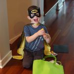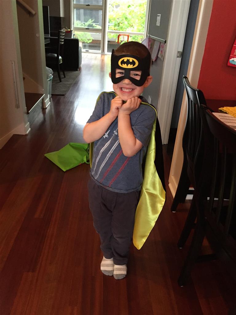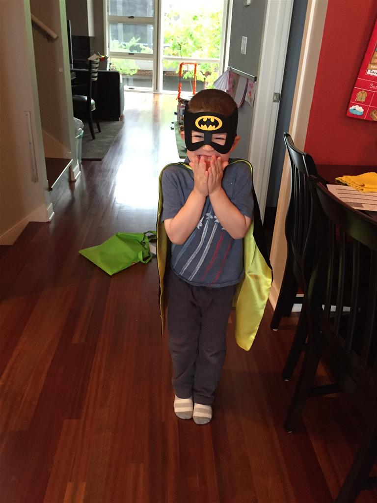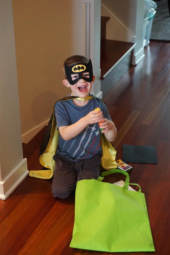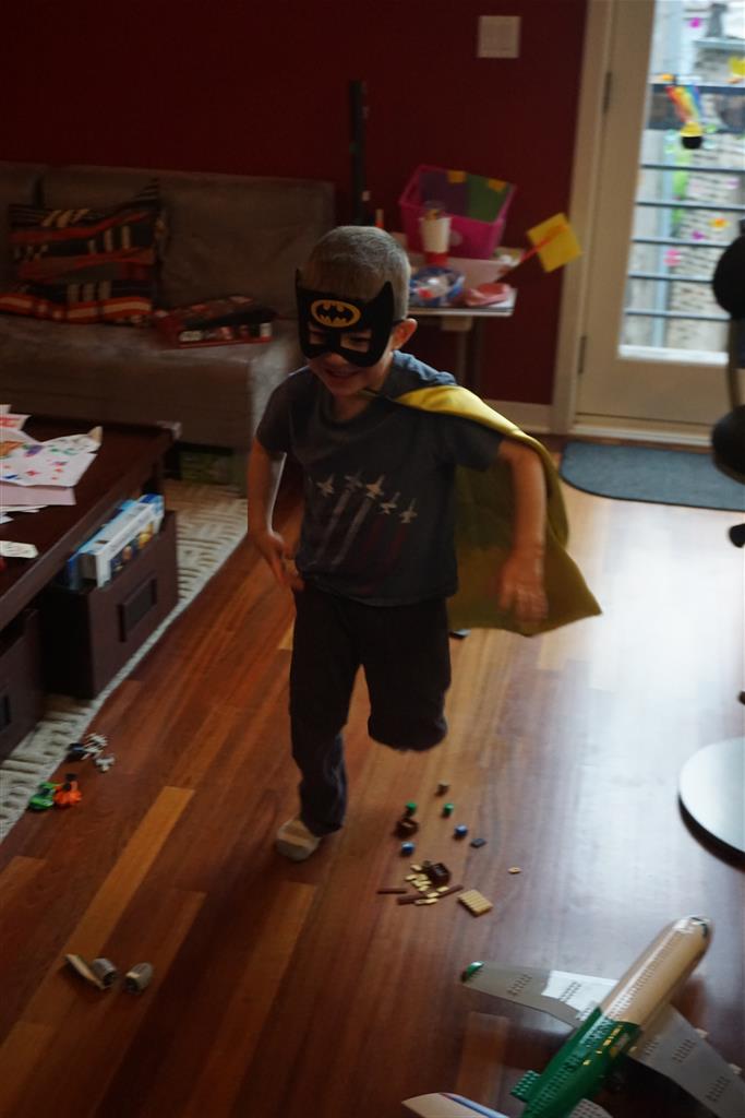 We also had a few fun birthday parties this weekend, three in all, so that kept us busy. Henry was super excited to receive a Batman cape and mask in his goodie bag from one of the parties, and has been wearing it pretty much every moment since then. It was perfect timing, he had been talking about Batman all week, and on Friday had drawn his own Batman mask on his face, and Eleanor made him a cape out of paper and tape. On Sunday, we had a bit of a cold snap, so we watched Empire Strikes Back. At first, Henry didn’t want to watch and wanted to play trains instead, but he kept getting drawn back to the movie from the sounds, and eventually settled in. We fast forwarded through a few “scary” scenes, but other than that they both enjoyed it.