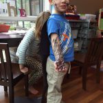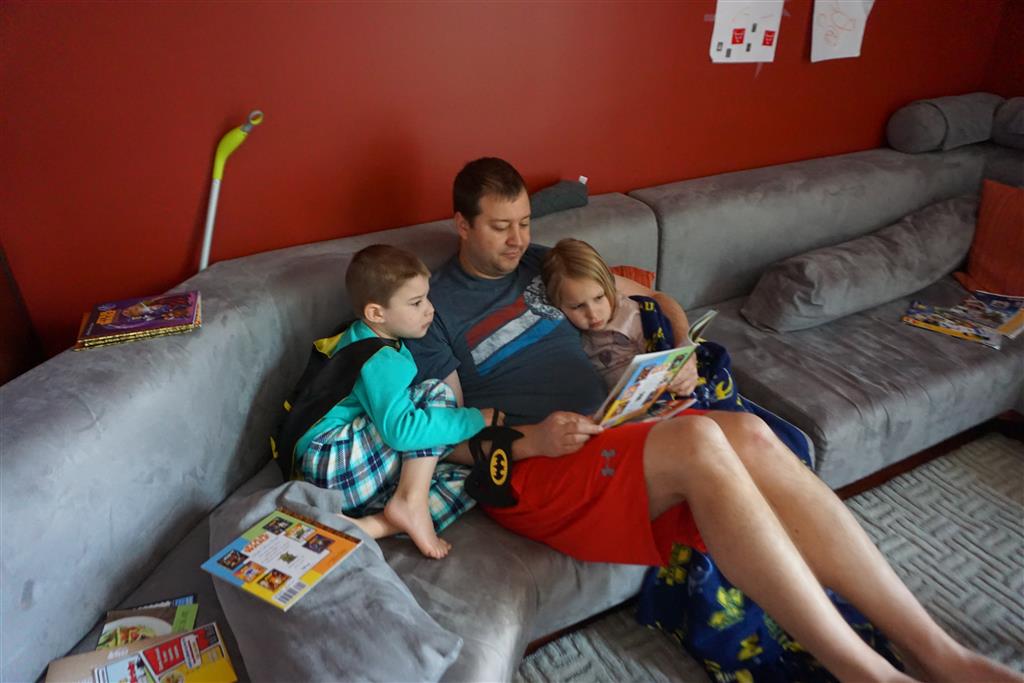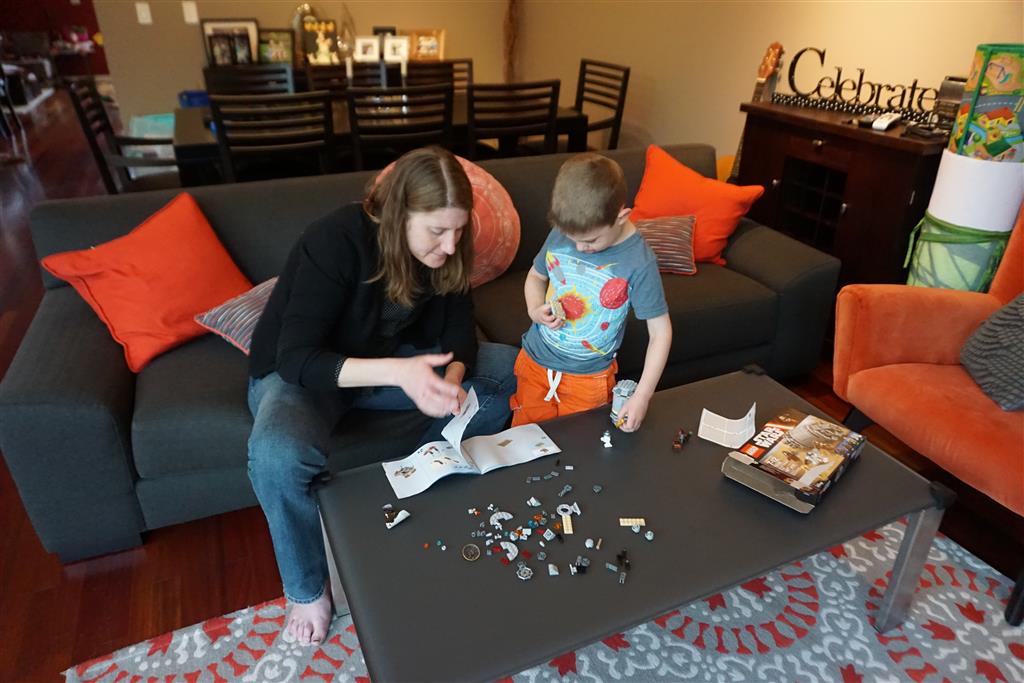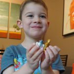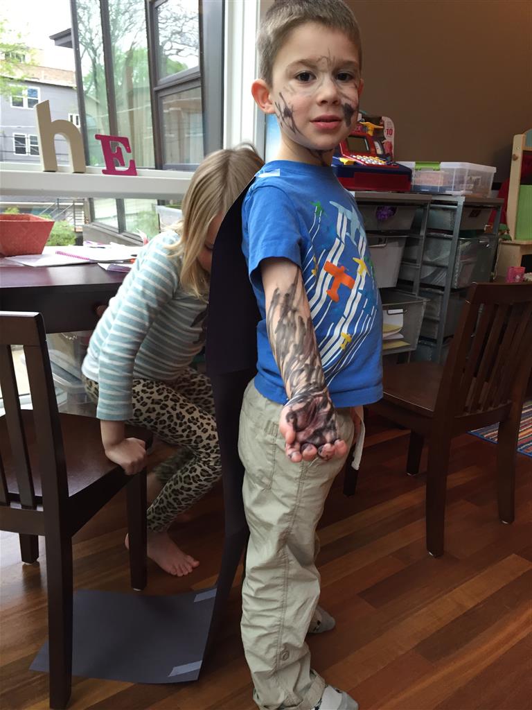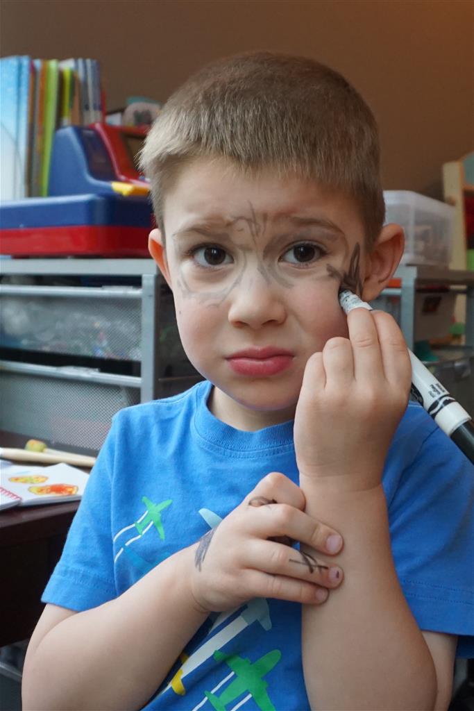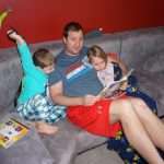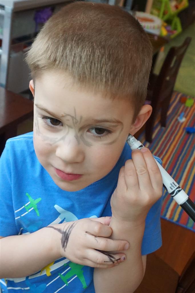 We also had a few fun birthday parties this weekend, three in all, so that kept us busy. Henry was super excited to receive a Batman cape and mask in his goodie bag from one of the parties, and has been wearing it pretty much every moment since then. It was perfect timing, he had been talking about Batman all week, and on Friday had drawn his own Batman mask on his face, and Eleanor made him a cape out of paper and tape. On Sunday, we had a bit of a cold snap, so we watched Empire Strikes Back. At first, Henry didn’t want to watch and wanted to play trains instead, but he kept getting drawn back to the movie from the sounds, and eventually settled in. We fast forwarded through a few “scary” scenes, but other than that they both enjoyed it.