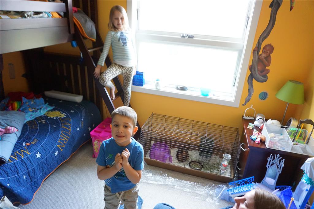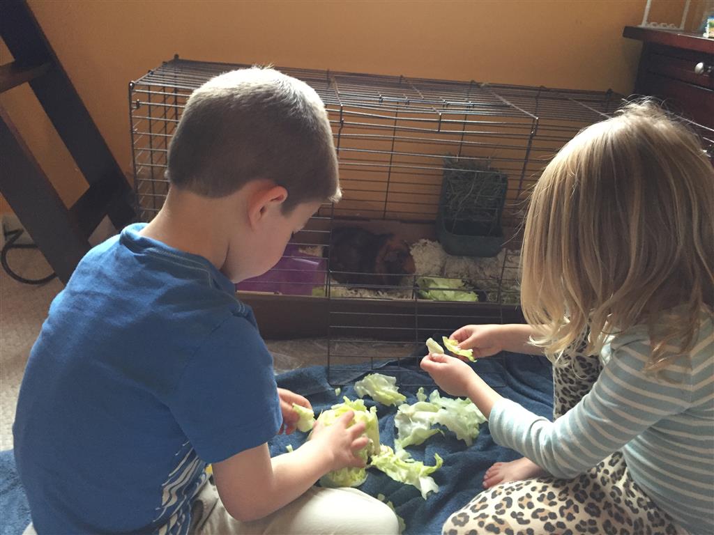 Eleanor and Henry were excited to host Eleanor’s class guinea pigs Brownie and Snowy this weekend. We were a bit nervous about how Zapa would feel, so we decided to do a trial weekend before committing to a full week over the summer break. So far so good. Both kids slept in sleeping bags on the floor next to the guinea pig cage, and fell asleep telling stories and singing songs to them.