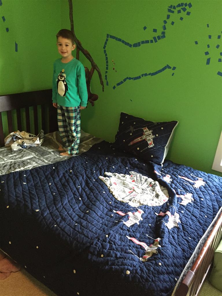 Also this week, Henry got some new bedding – Star Wars sheets and comforter! They are very cool, and remind dad of some sheets that Uncle B had when they were growing up. Eleanor wasn’t left out – she has some Princess Leia sheets on order, and got an R2-D2 pillow.