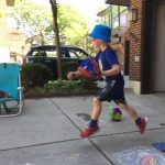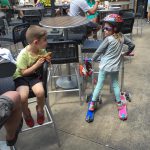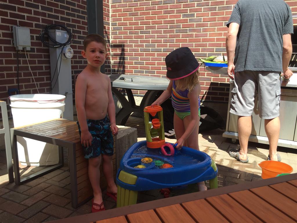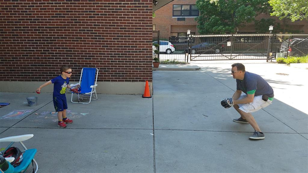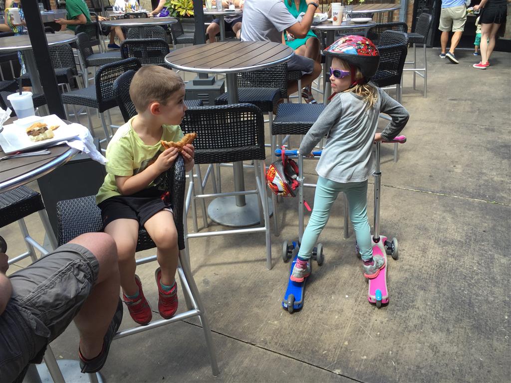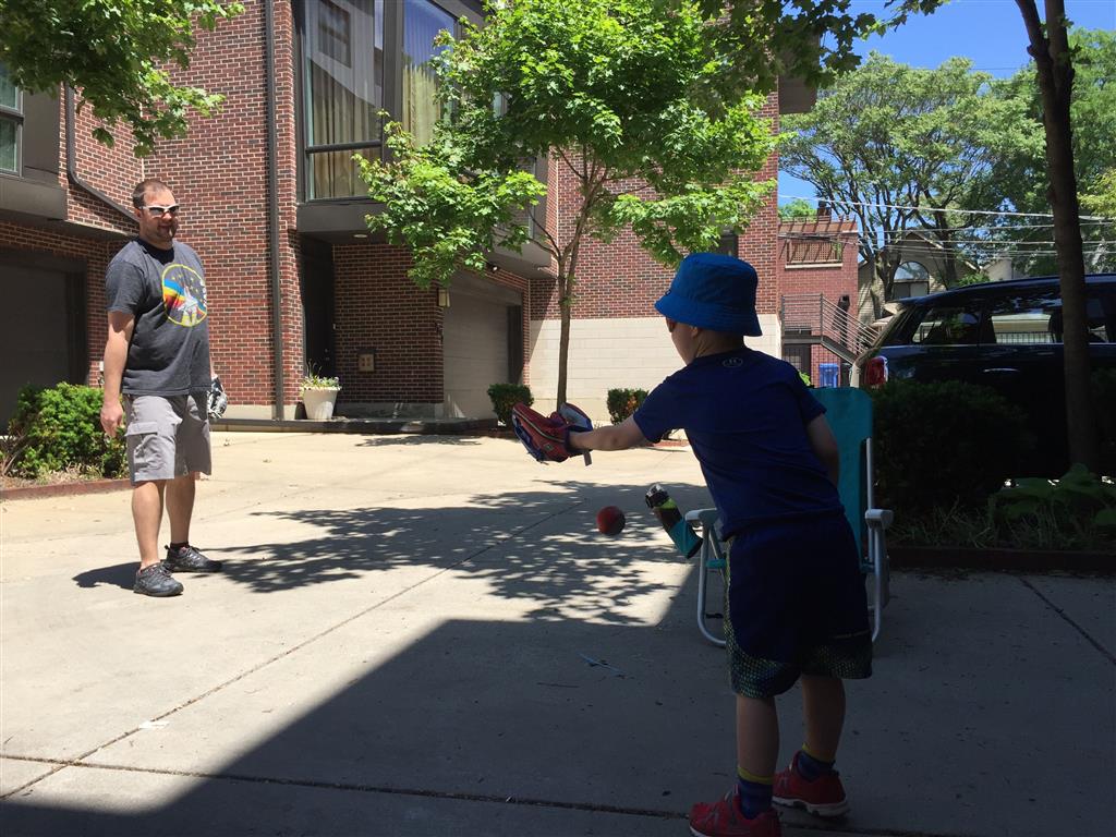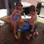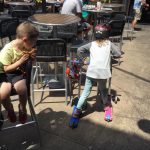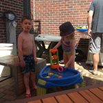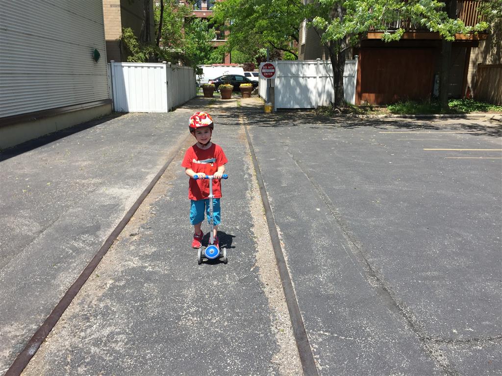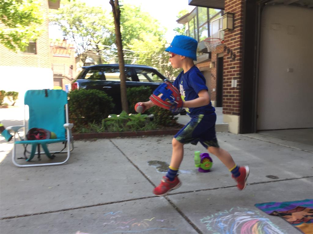 Eleanor and Henry celebrated Memorial Day weekend with some fun activities. On Saturday, Eleanor had a playdate with some school friends, and Henry and Dad got some alone time to play trains and do some scootering. For dinner, we did a make your own pizza night with bonus ice cream desert. On Sunday, after a fun morning of parks and scootering, Eleanor went over to Lala’s for a sleepover. Henry stayed home with Mom and Dad, and we watched the last 20 laps of the Indianapolis 500. The race had been on a tv an the restaurant at lunch, and Henry was so fascinated by it that we came home and recorded it so that we could watch the finish. We also spent some time cleaning off the back patio and getting it ready for summer. Henry was in charge of the hose and did all of the spraying! Finally, on Monday we had Uncle B and Lala over for an afternoon cookout. Henry impressed Lala with his scootering skills, and then Uncle B with his newly discovered baseball skills. Time to order that left handed glove!