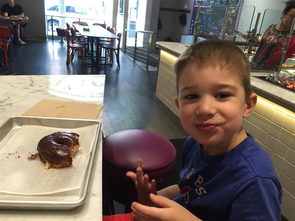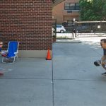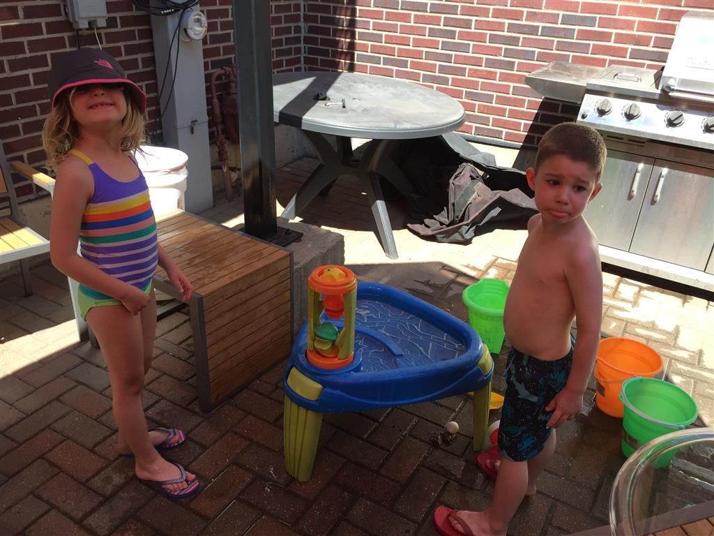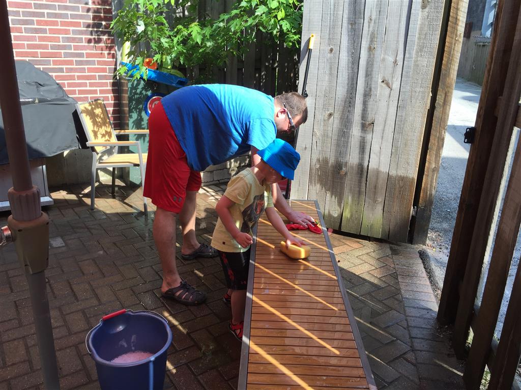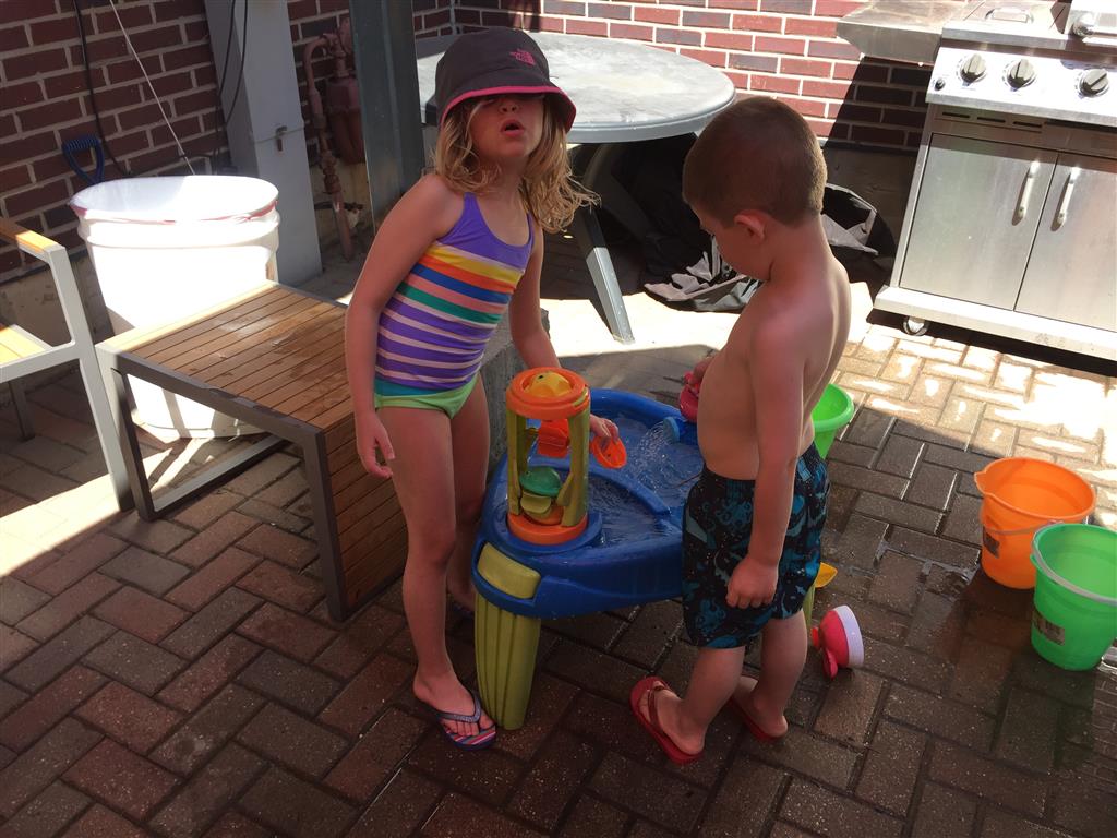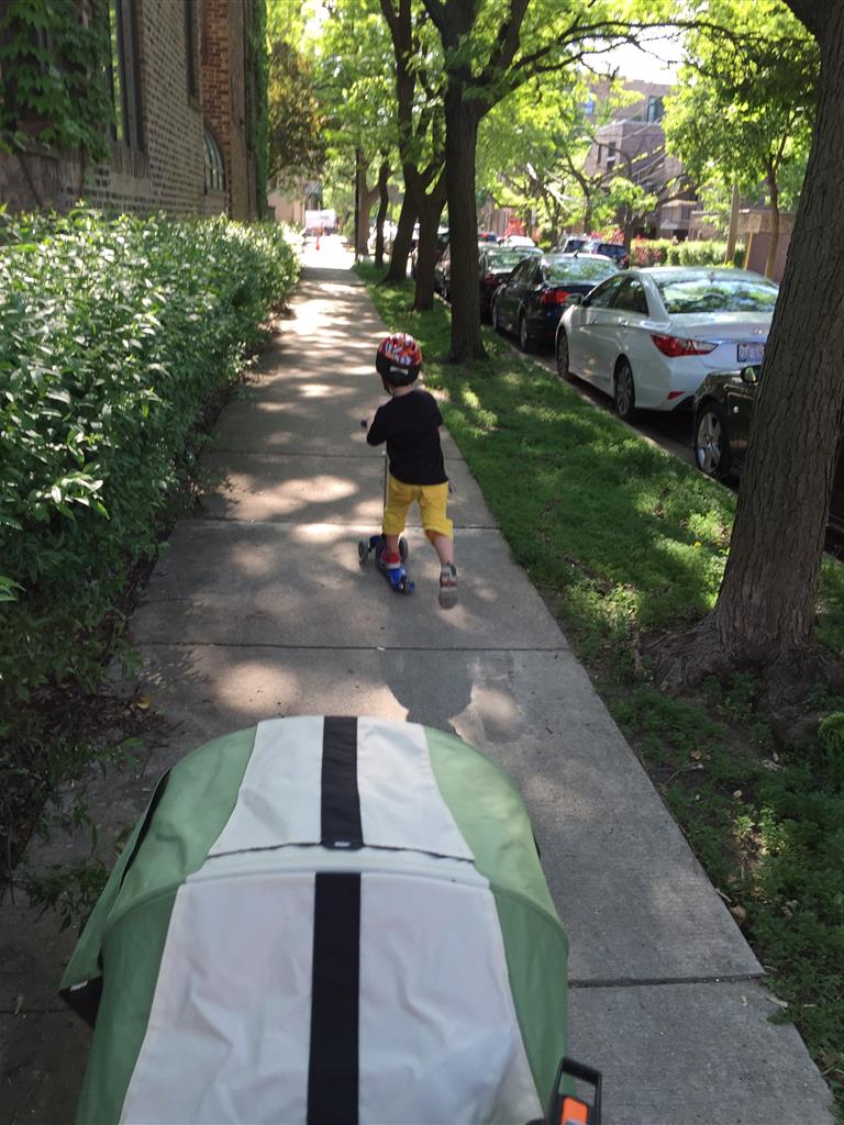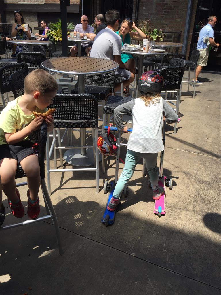 Eleanor and Henry celebrated Memorial Day weekend with some fun activities. On Saturday, Eleanor had a playdate with some school friends, and Henry and Dad got some alone time to play trains and do some scootering. For dinner, we did a make your own pizza night with bonus ice cream desert. On Sunday, after a fun morning of parks and scootering, Eleanor went over to Lala’s for a sleepover. Henry stayed home with Mom and Dad, and we watched the last 20 laps of the Indianapolis 500. The race had been on a tv an the restaurant at lunch, and Henry was so fascinated by it that we came home and recorded it so that we could watch the finish. We also spent some time cleaning off the back patio and getting it ready for summer. Henry was in charge of the hose and did all of the spraying! Finally, on Monday we had Uncle B and Lala over for an afternoon cookout. Henry impressed Lala with his scootering skills, and then Uncle B with his newly discovered baseball skills. Time to order that left handed glove!