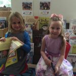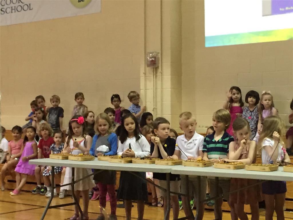 On Friday, Eleanor had her spring concert, and her class sang a couple of songs, and also played the xylophones and did an Indian Stick Dance. Eleanor didn’t exactly sing, but she did participate a bit, so that was good progress. She was paired with her friend Hannah for the stick dance, and Hannah really lead Eleanor through the whole thing, including holding hands from their seats to the stage and back. It was very sweet :)