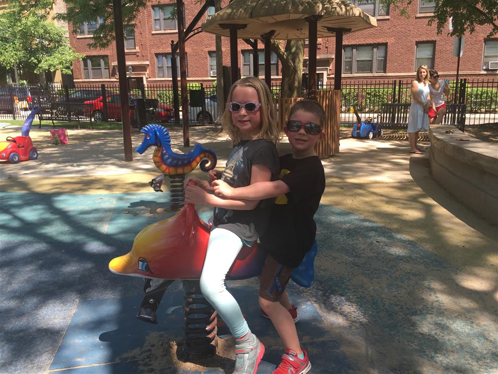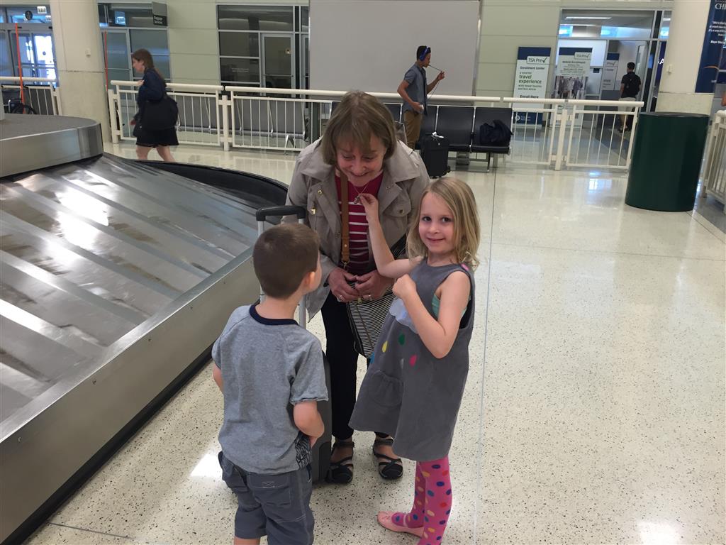 Eleanor and Henry had a relaxing first week of summer vacation capped off by a fun weekend visit from Grandma! The kids took the train to the airport to pick her up, and then rode the train back home with her. It turned out to be a hot weekend, so we spread out some park time with some relaxing at home. Eleanor was excited to get some doll time with Grandma, and Henry was most excited about showing Grandma his trains. We capped off the trip with another train ride back to the airport – and I think we finally found Henry’s train limit, as he got a little bored on the last leg of the journey home. Eleanor had already hit her limit and decided to say goodbye to Grandma before she got on the train.