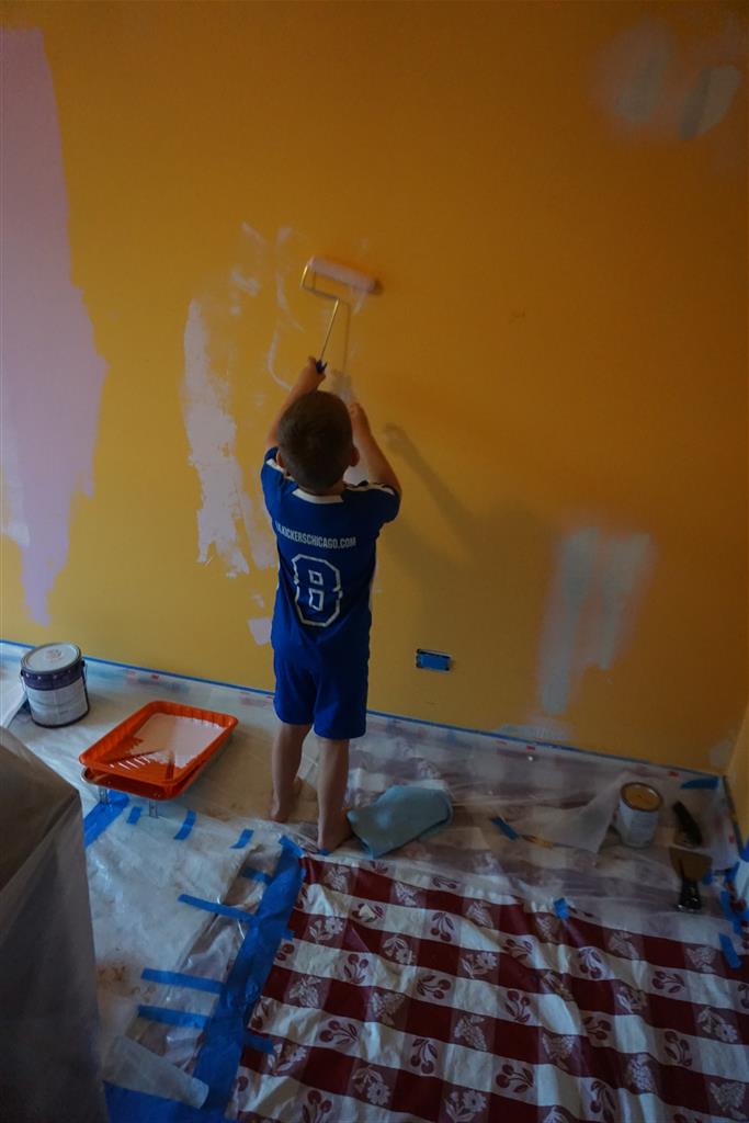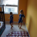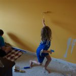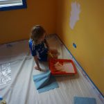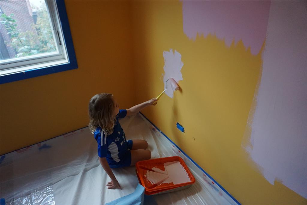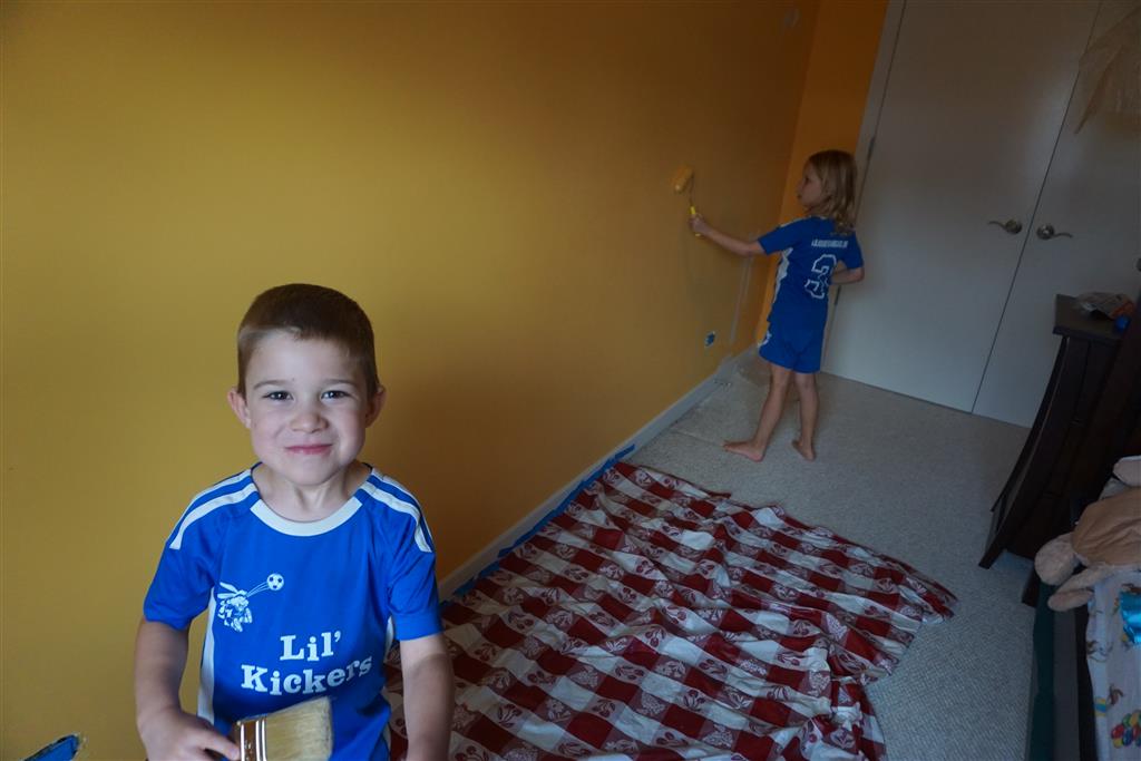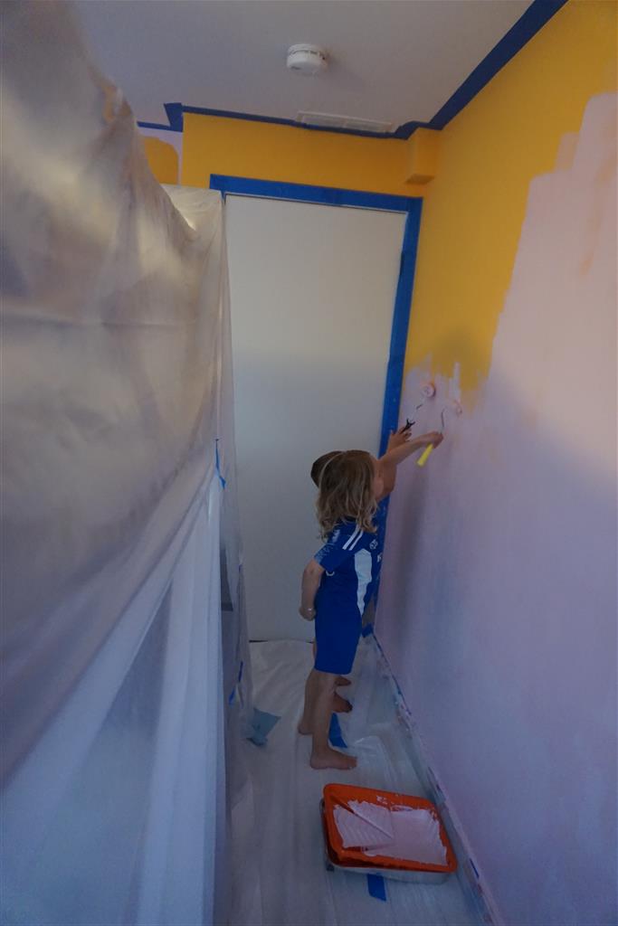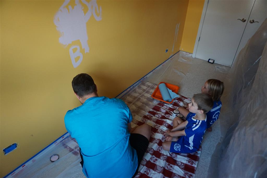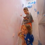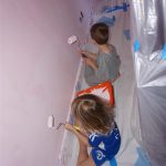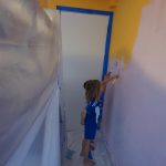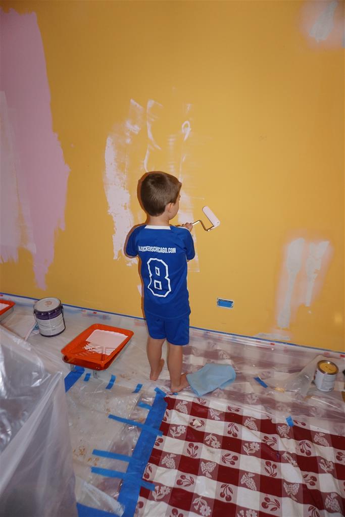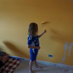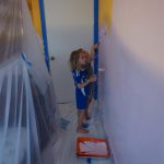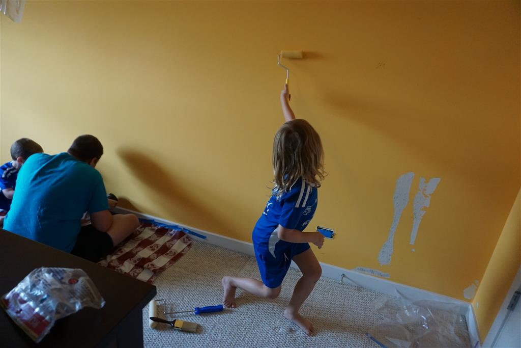 This week we finally got around to repainting Eleanor’s room. She had been asking to redecorate her room to a pink theme, and to take down the wall stickers and replace them with other things. So on Saturday we took a family trip to Home Depot and Eleanor picked out the color, and we got all the necessary supplies. We tried three different colors on the wall, and Eleanor’s original favorite was “Funny Face”, but we all agreed that “Funhouse” looked better once it was dry on the wall. It took a bit longer than expected to get everything ready, but finally after dinner Eleanor and Henry were able to start painting on the walls. They ended up loving it, and we painted together for about 90 minutes, during which they did the lower half of three walls. On Sunday we finished up the last wall and some edges – we’ll let it dry and then she should be back in her room on Monday :)